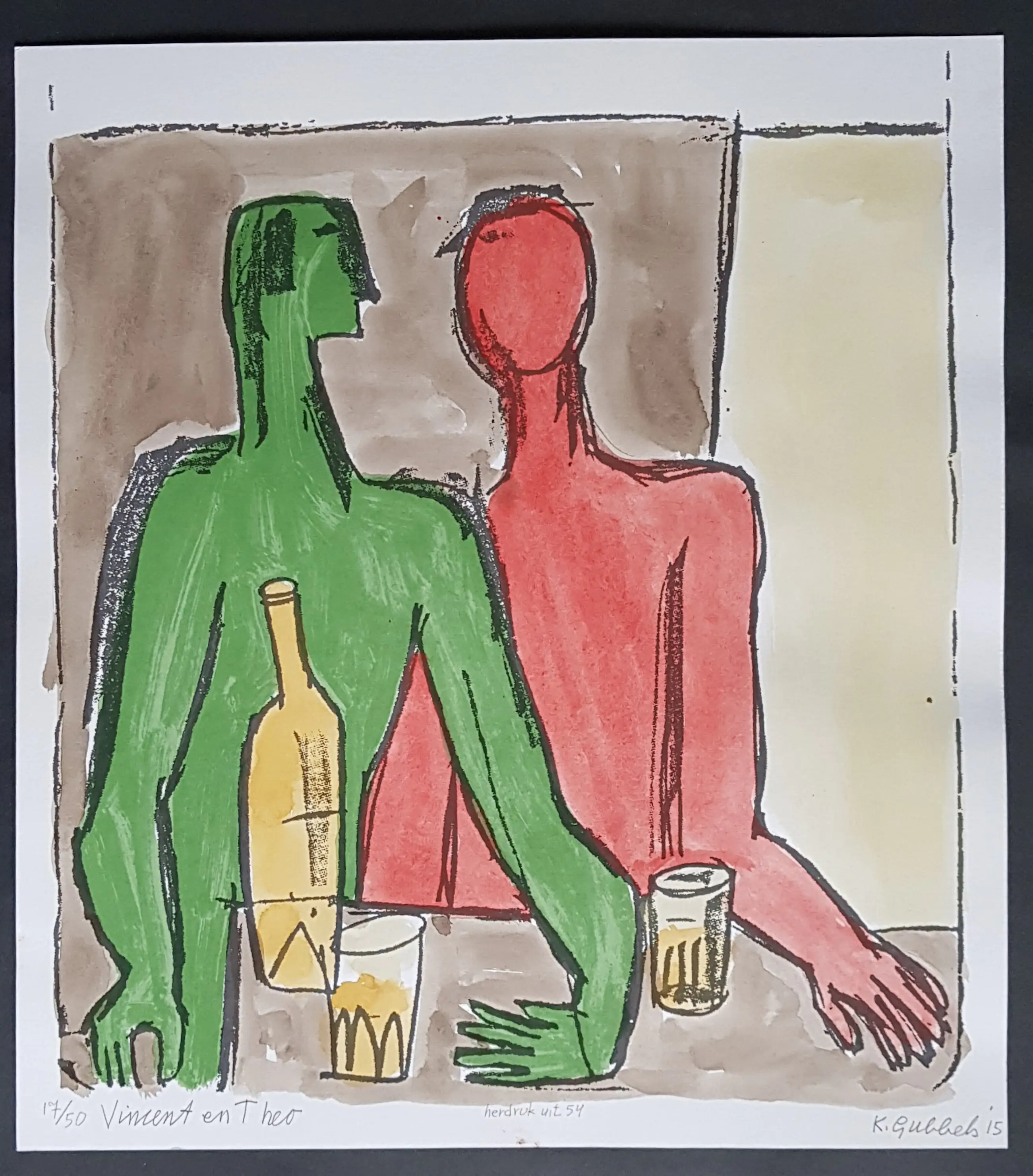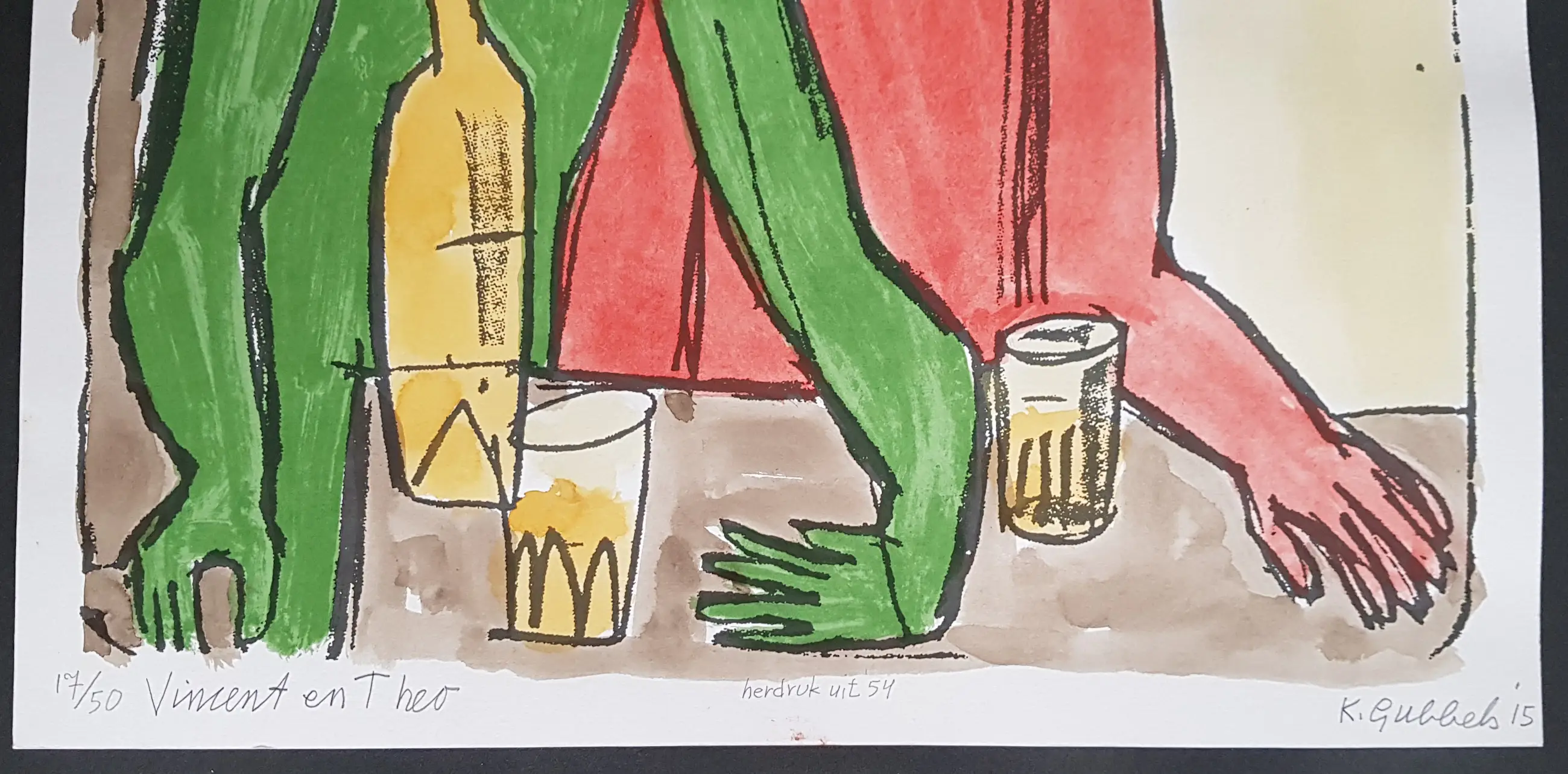 Zeefdruk herdruk van 1954 en door klaas gubbels zelf ingekleurd