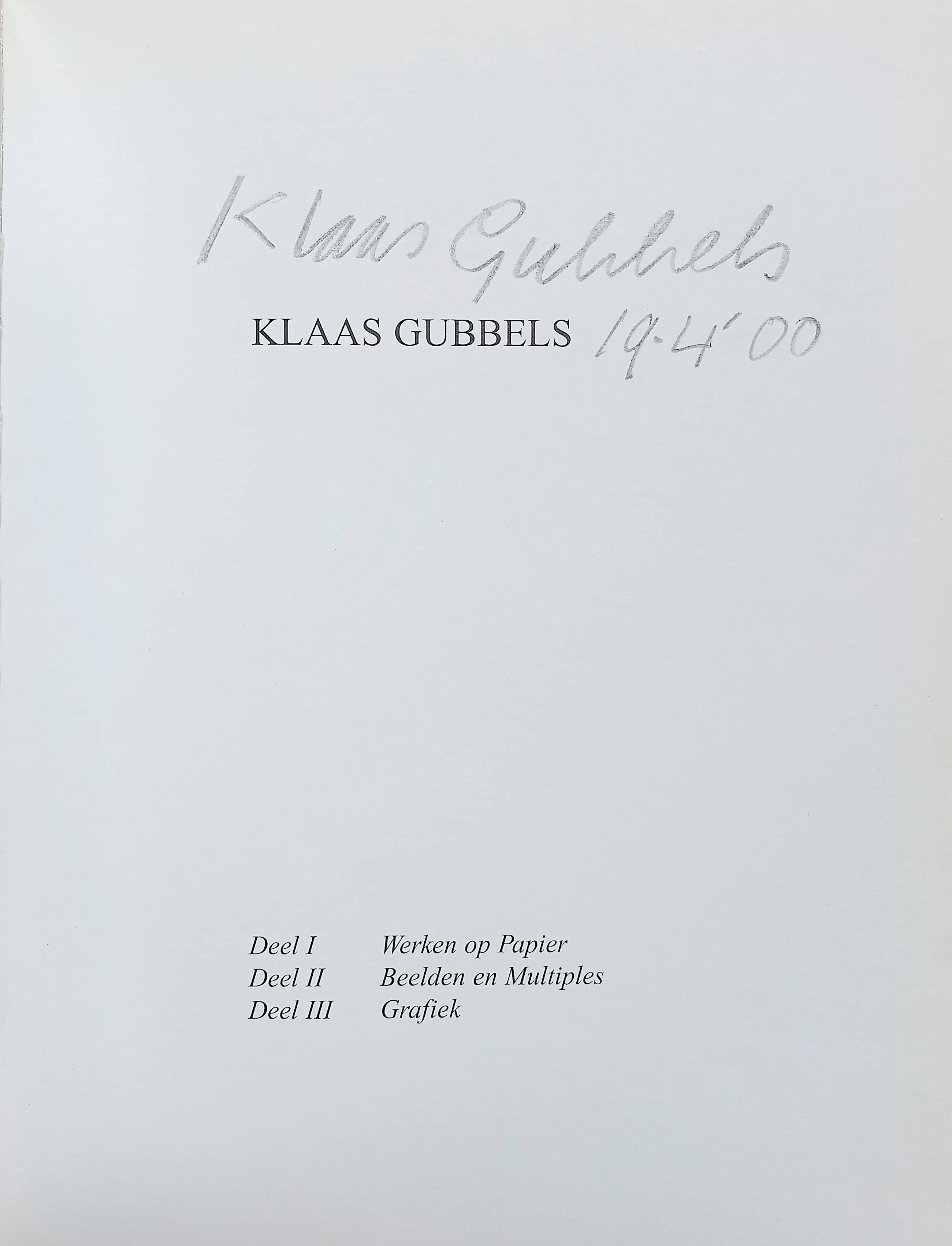 Beschrijvend overzichtswerk (niet uitputtend) van Gubbels’ werken op papier, uitgegeven door uitgeverij Van Spijk in 2000. De uitgave wordt ingeleid door een stukje (7 pagina’s) van de kunsthistoricus Paul Hefting en bevat 56 reproducties (één per pagina) van Gubbels’ werken op papier. In zeer goede conditie.