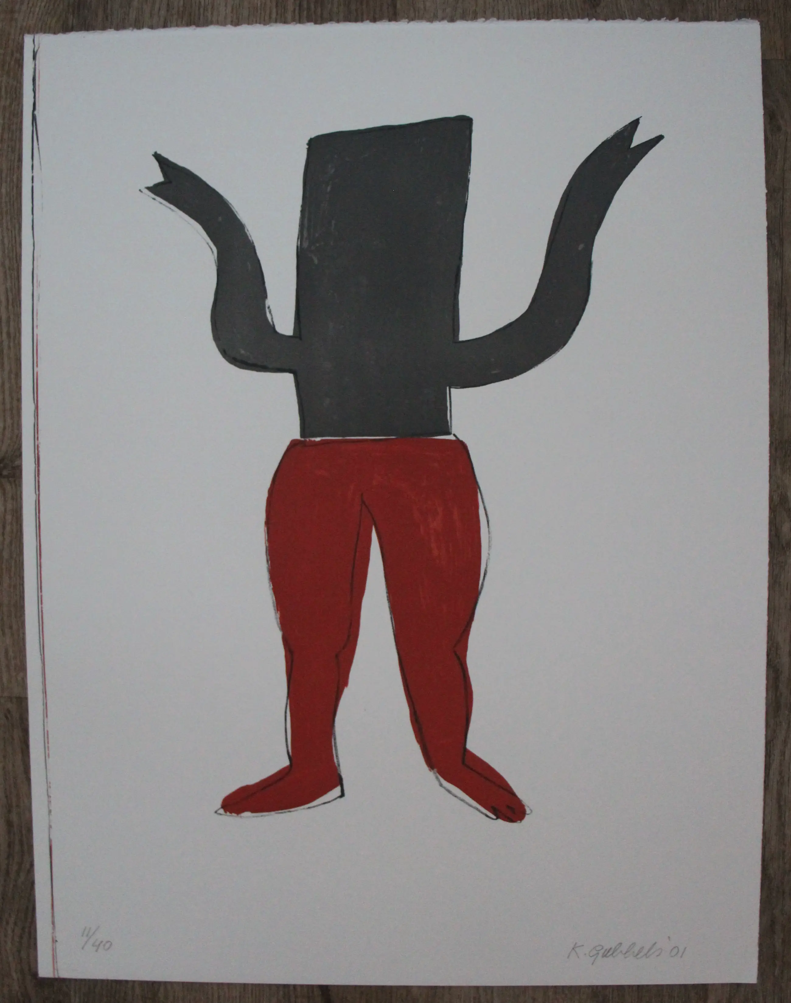 Zeefdruk van Klaas Gubbels. Oplage: 11/40. Jaar: 1994. Afmetingen blad: H65.5 x b50cm. Afmetingen voorstelling: H46 x b36cm. Het werk is rechts onderaan, met potlood, gesigneerd door de kunstenaar. De authenticiteit van het aangeboden werk wordt volledig gegarandeerd. Een certificaat van echtheid kan, op aanvraag, worden gemaild.