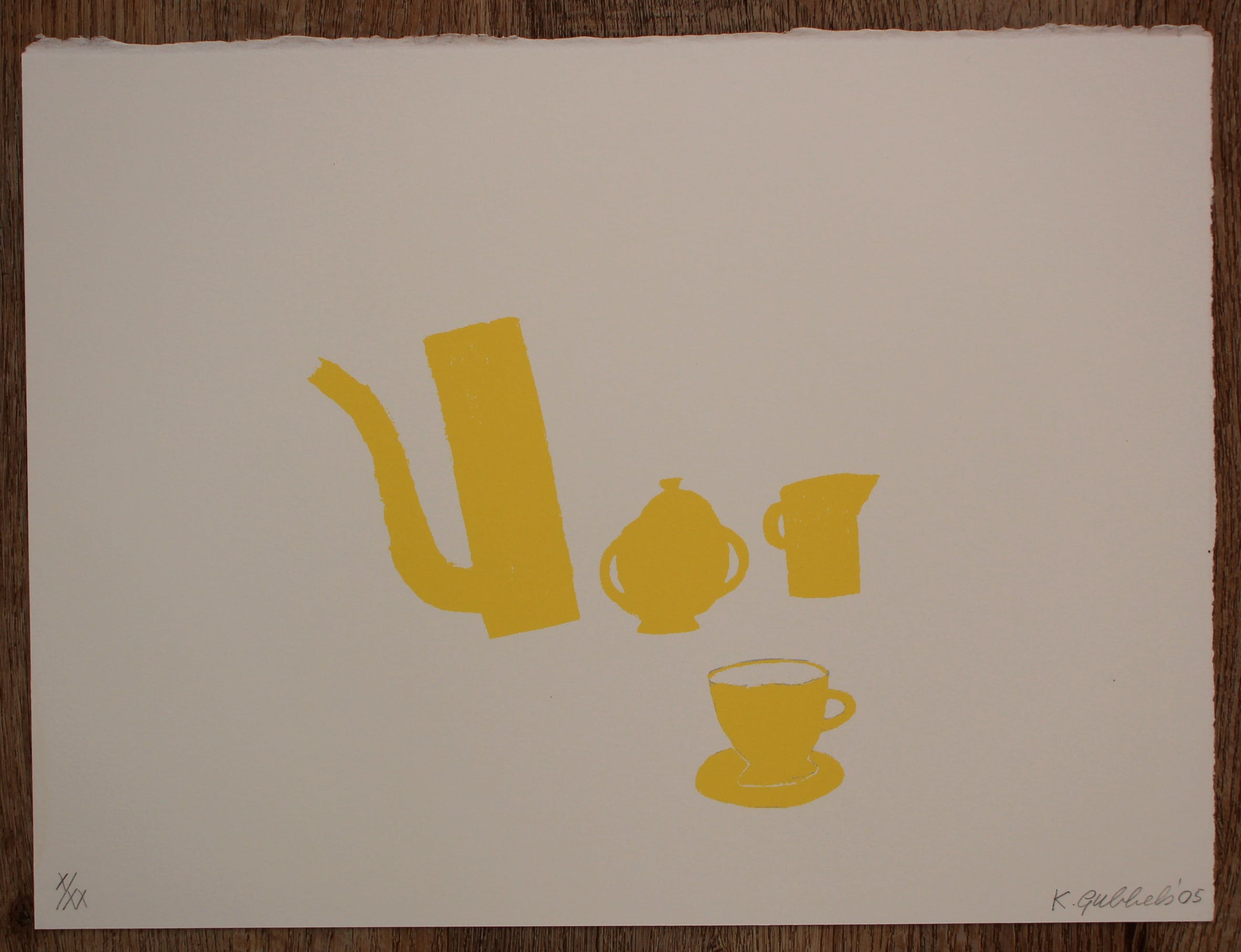 Zeefdruk van Klaas Gubbels uit 2005. Nummer: X/XX. Afmetingen blad: H28.5 x b37.5cm. Afmetingen voorstelling: H16 x b19cm. Het werk is rechtsonder gesigneerd door de kunstenaar. De authenticiteit van dit werk wordt volledig gegarandeerd. Een certificaat kan, op aanvraag, worden gemaild.