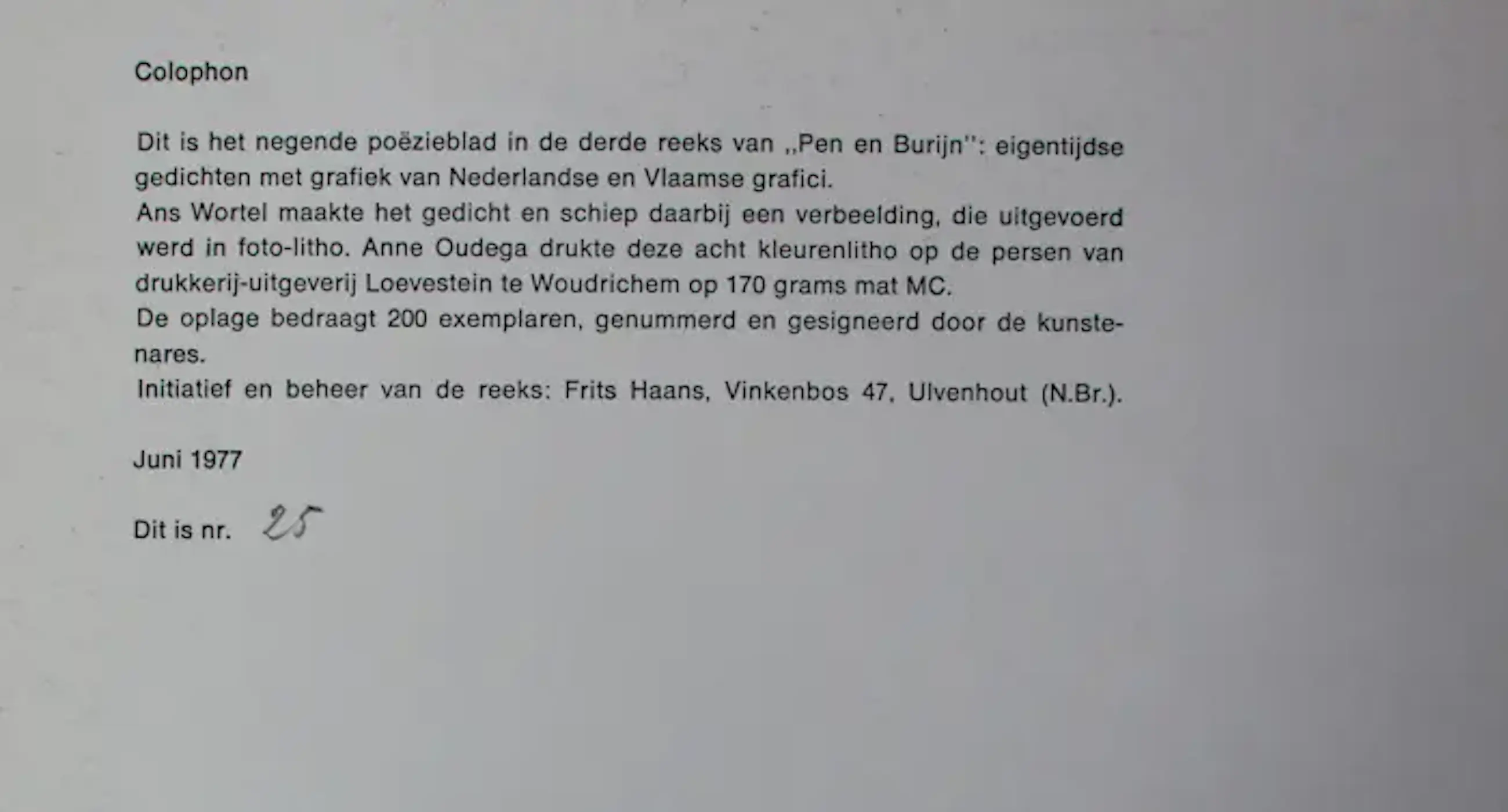 Klaas Gubbels - Zeefdruk met bijbehorend tekstblad - 1981