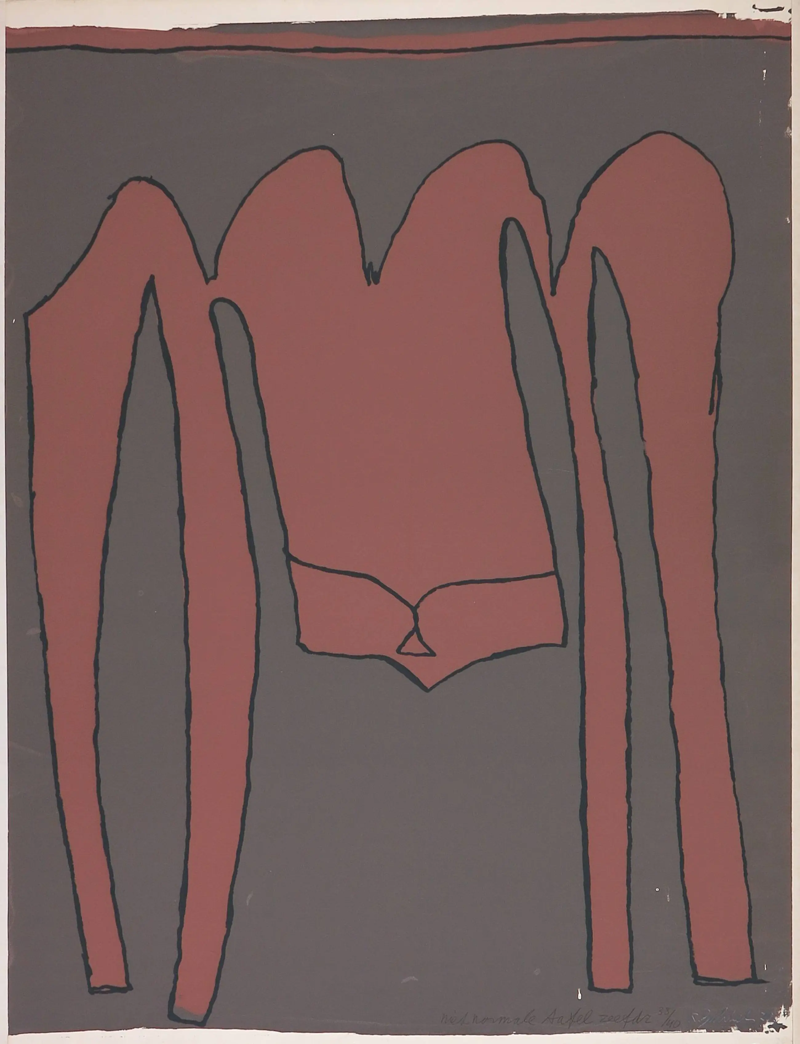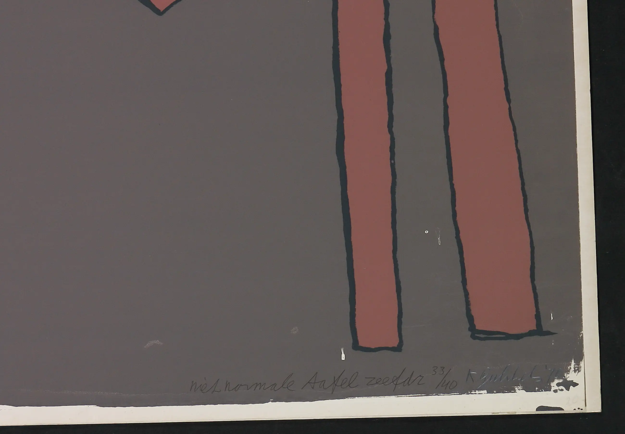 Gesigneerde zeefdruk met titel: niet normale tafel van Klaas Gubbels.