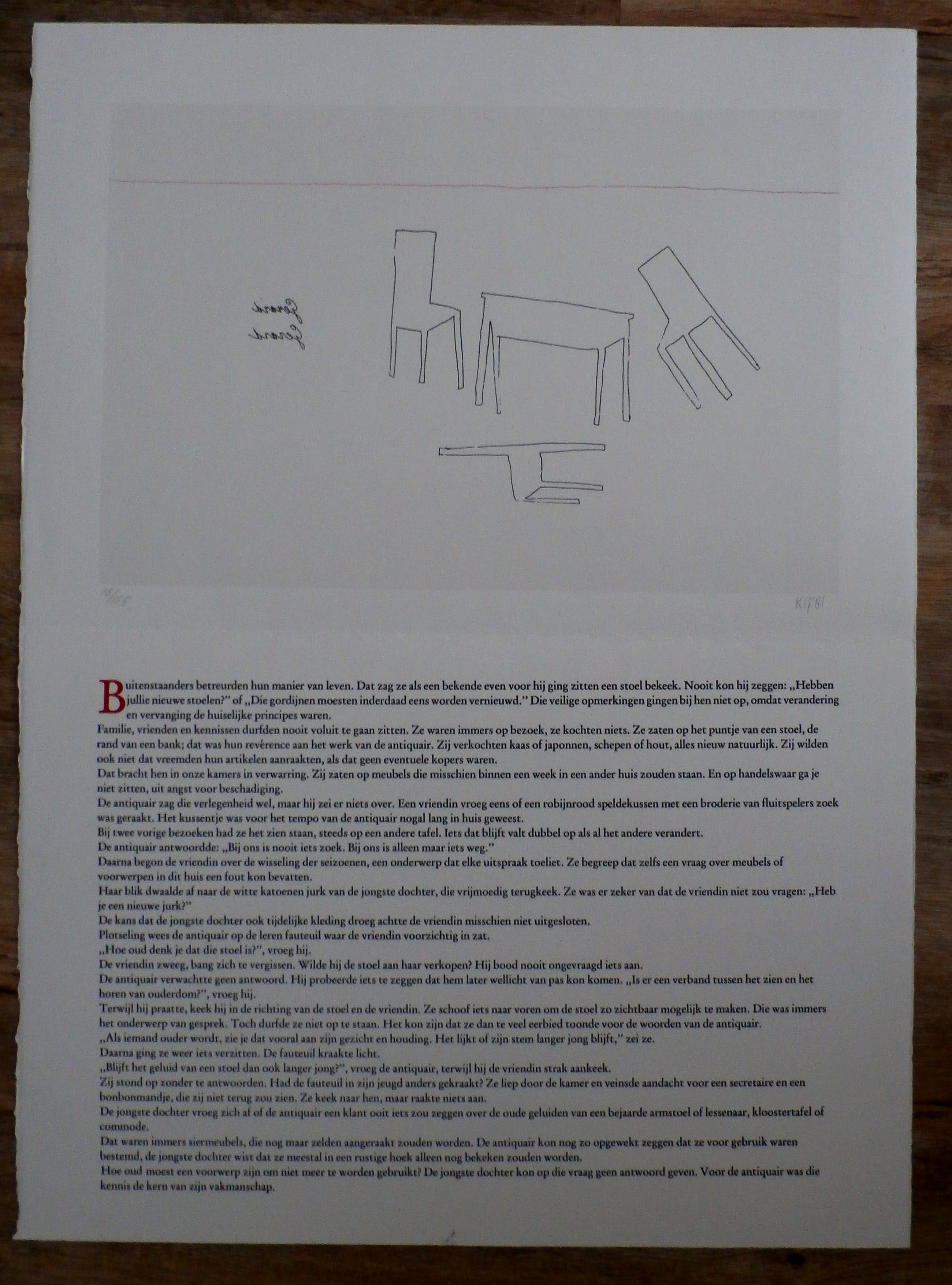 Zeefdruk van Klaas Gubbels uit de portfolio verlegen schaduwen. Tekst: Klaas Schippers. Beeld afmetingen: H38 x b56 cm. Totale blad met tekst: H76 x b56 cm.Het werk is rechtsonder gesigneerd door de kunstenaar. De authenticiteit van het aangeboden werk wordt voor 100% gegarandeerd. Een certificaat van echtheid kan, op aanvraag, worden meegestuurd.