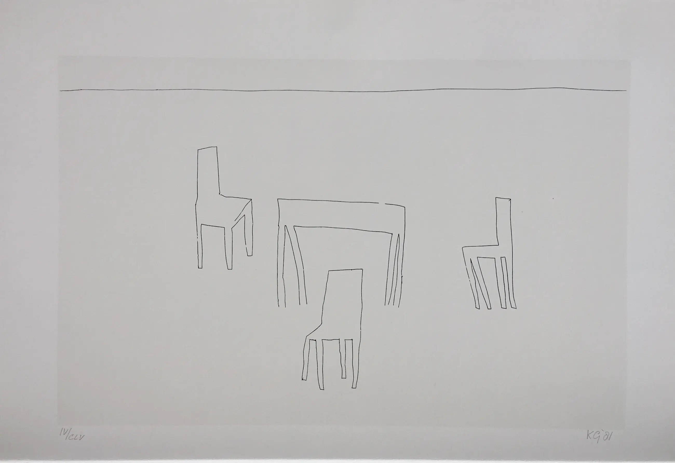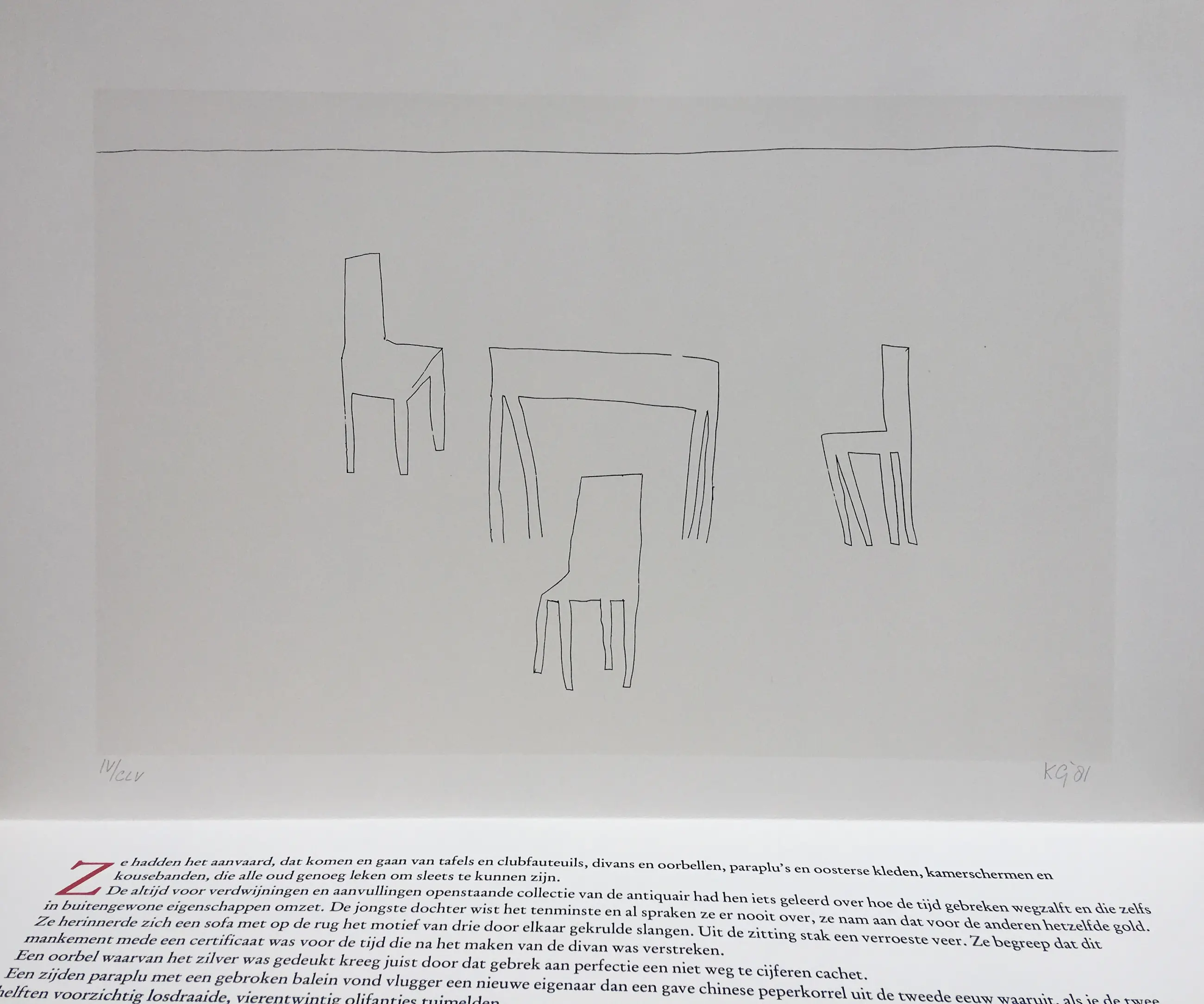 Tijdloos werk van Klaas Gubbels uit 1981. Het werk is gesigneerd en genummerd, oplage CLV. Totale afmeting inc, tekstblad; 76 x 57 cm.
