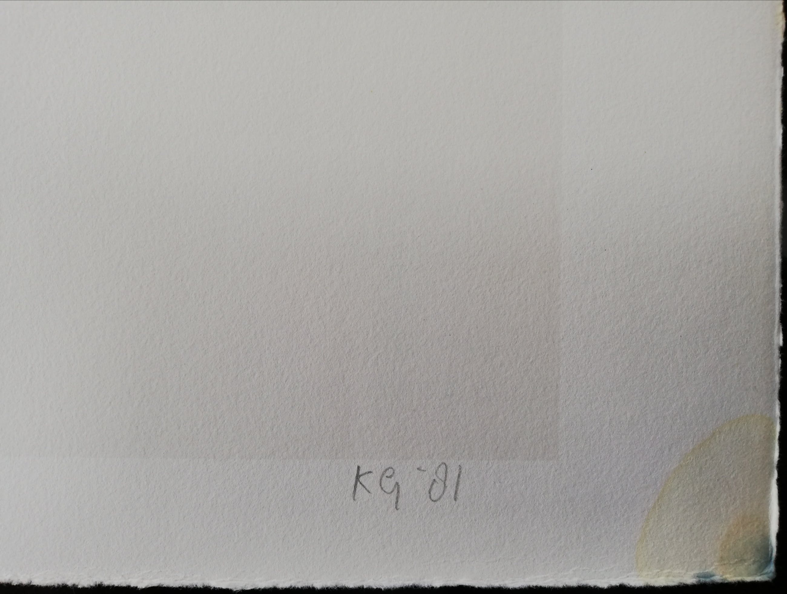 Vlek in de rechter onder- en bovenhoek. Het beeld cq de afbeelding is in goede staat. Zie de afbeeldingen.