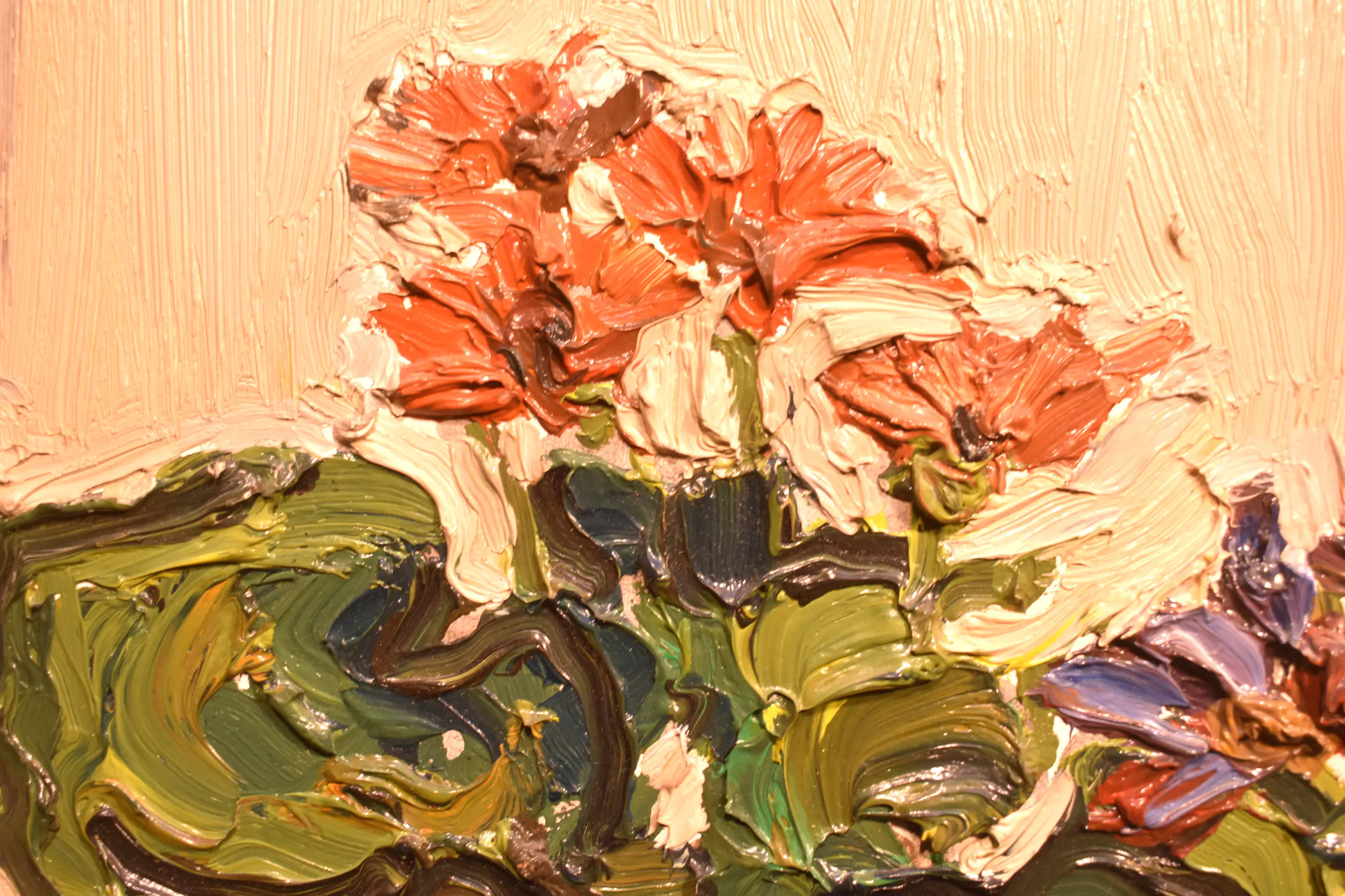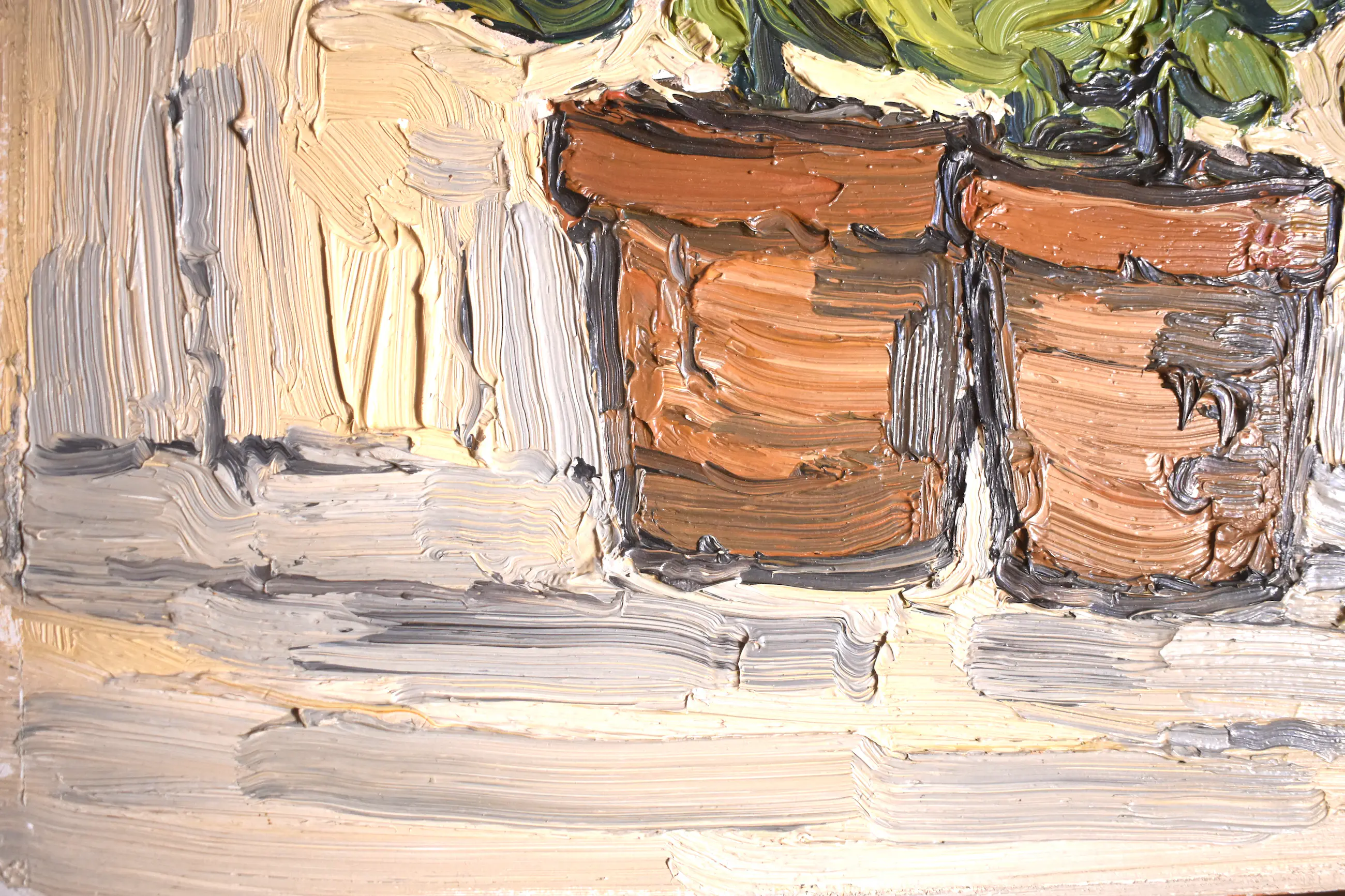 Klaas Koster werkte graag zeer pasteus á là Vincent van Gogh. Ook op dit olieverf op paneel is zeer pasteus gewerkt. Zeer kleurig en expressionisties. 1967 en getekend k.koster. Zeer zoede conditie.