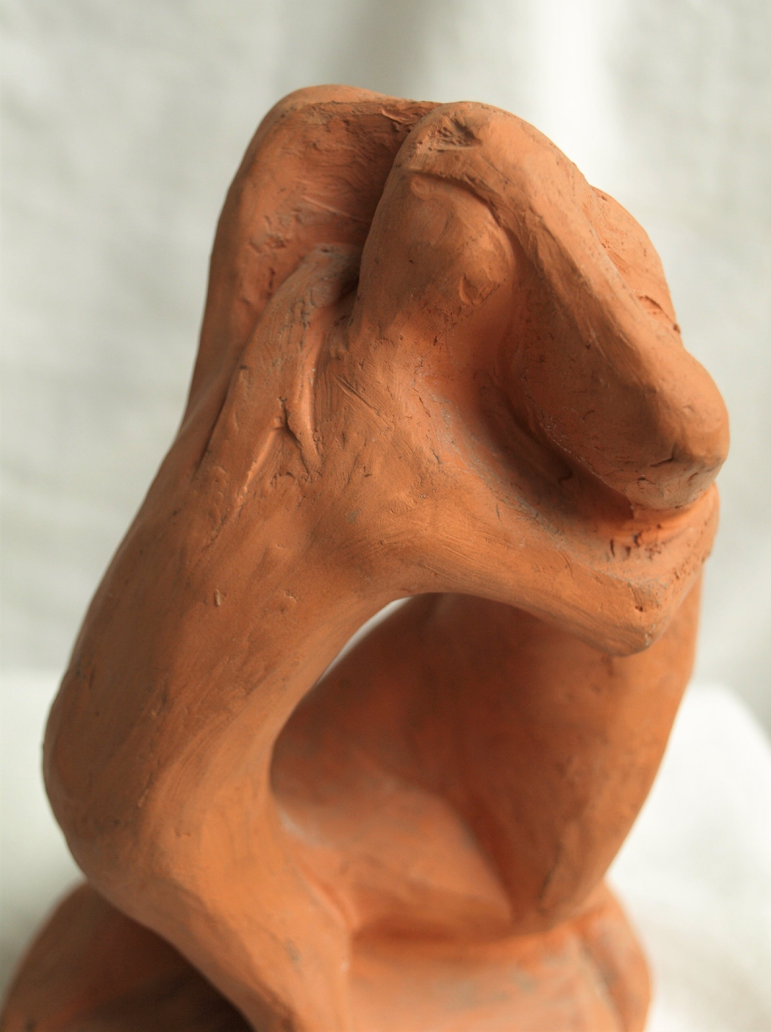 Een terracotta beeldje uit ca 1980 van de Nederlandse kunstenaar Klaas Pijlman (1917-2007).