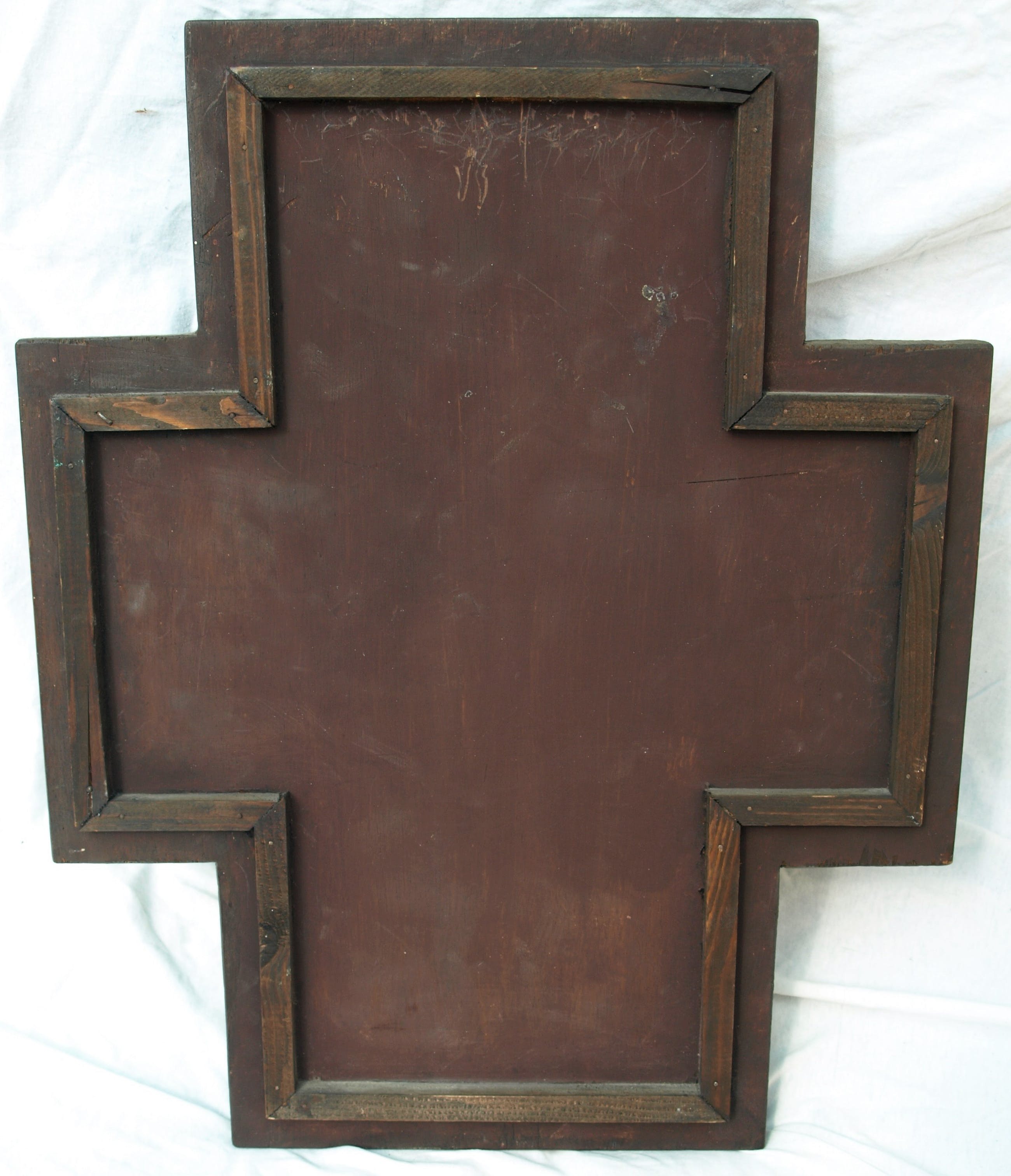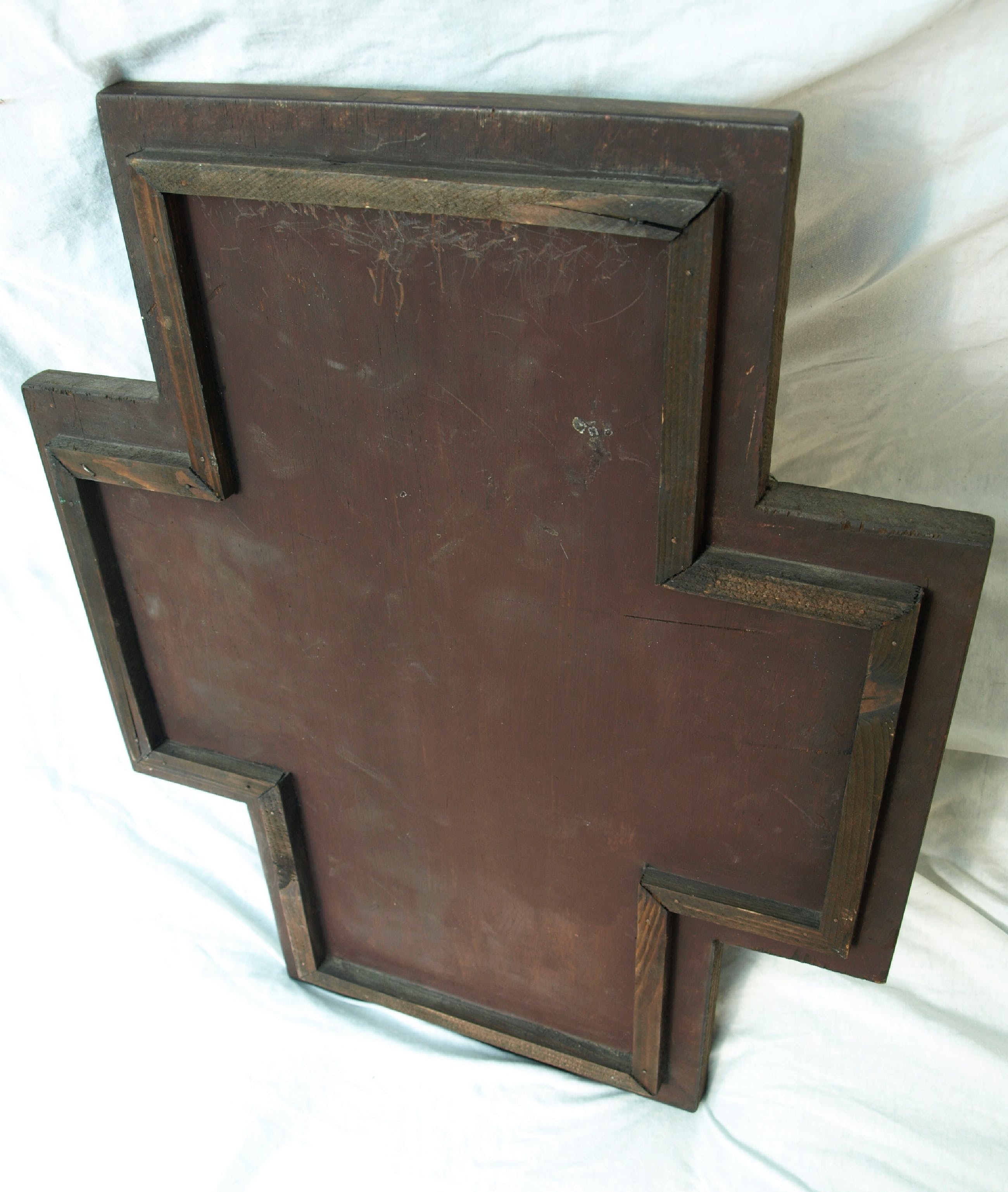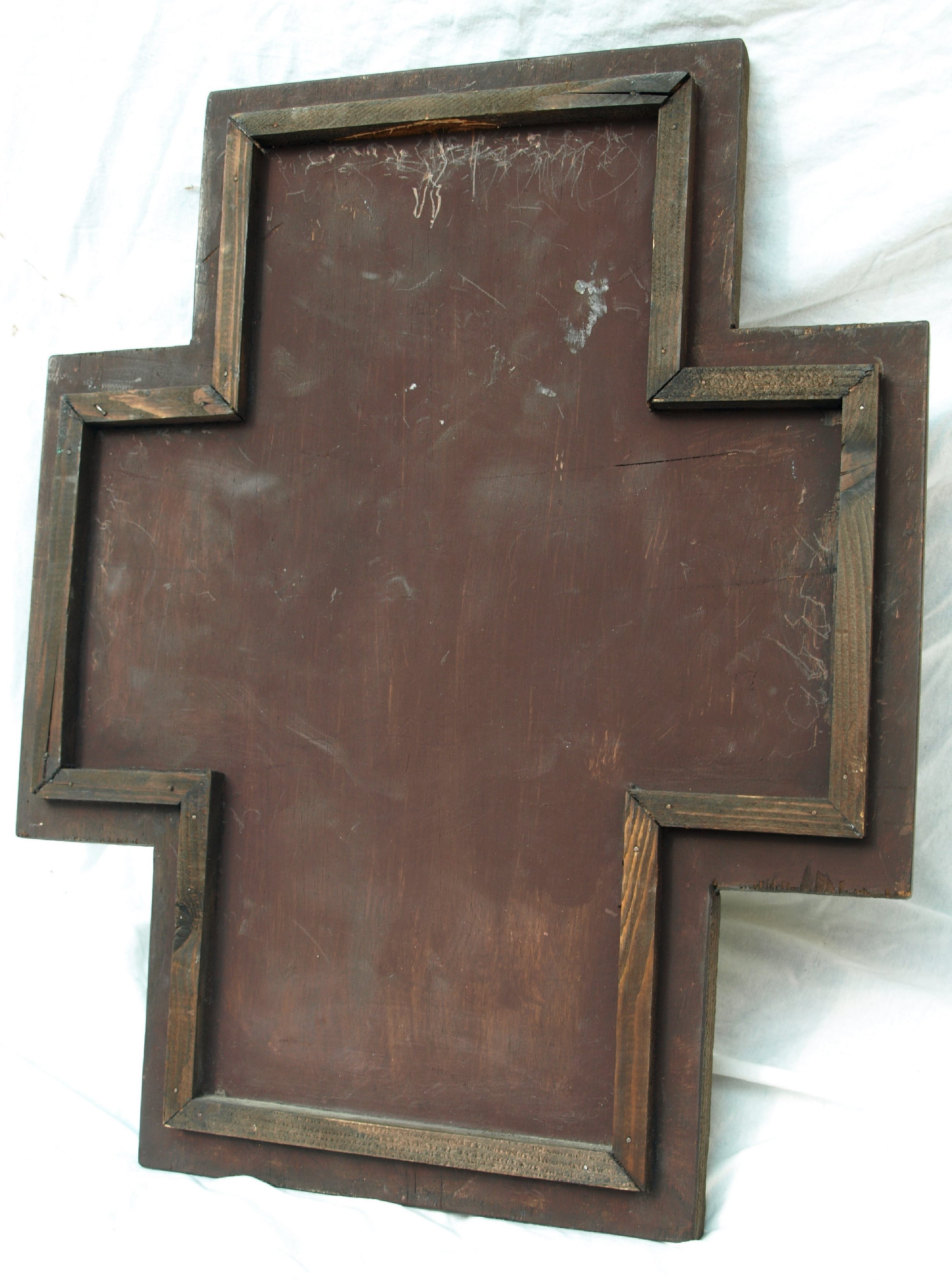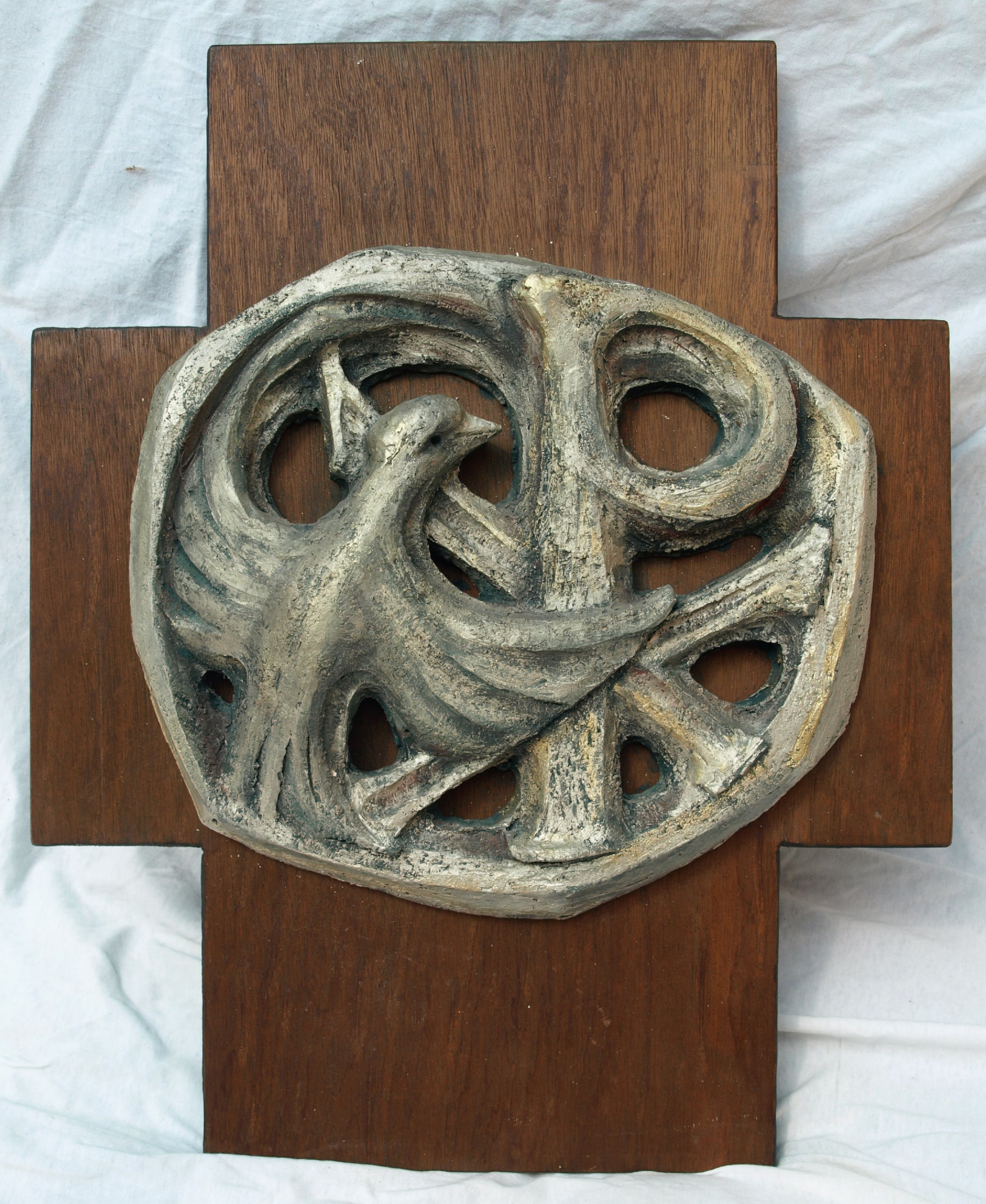 -Afmetingen: Hout, ca. 48 x 38 x 2 cm. Beeld, ca. 28 x 30 x 5 cm.