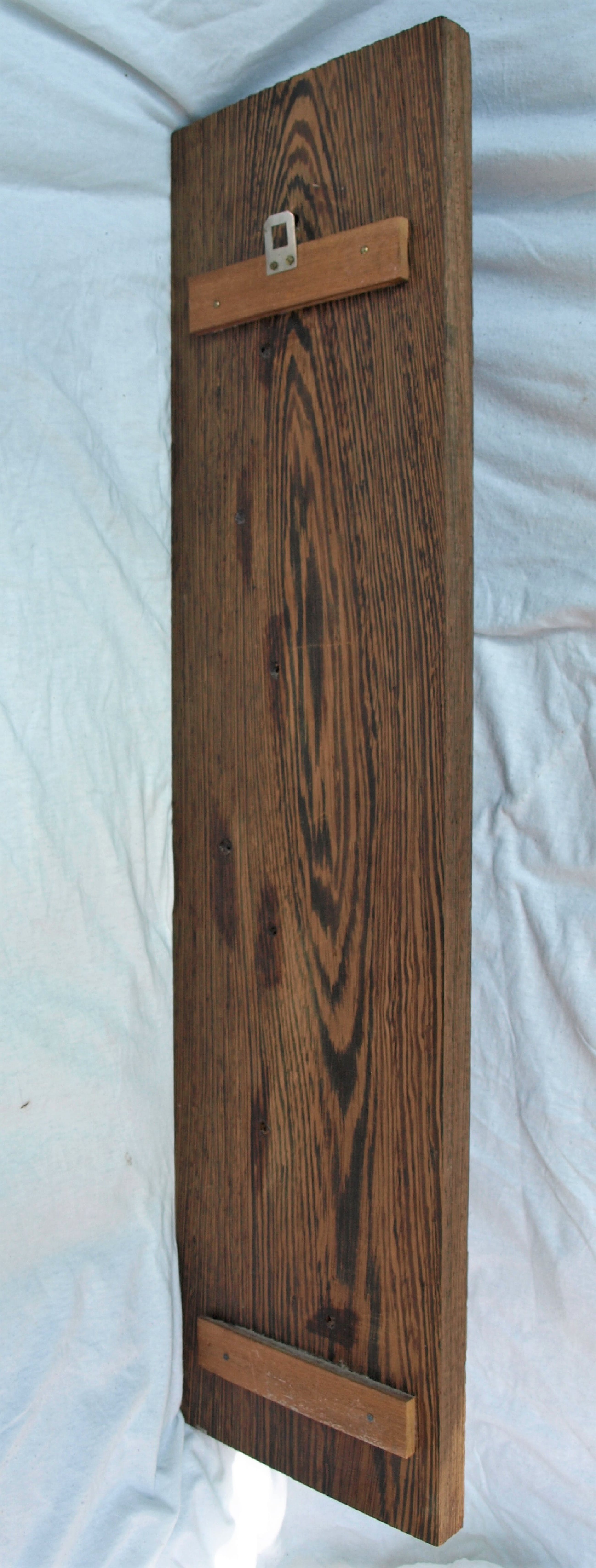 -Afmetingen: Hout, 77 x 19 x 3 cm. Beeld, ca. 67 x 15 x 5,5 cm.