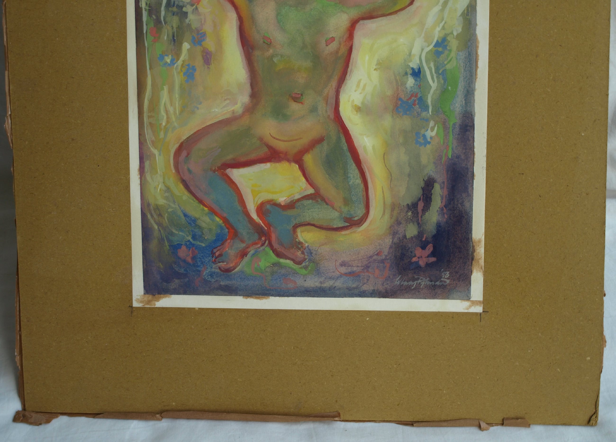 -Het werk is gemaakt op papier en geplakt op karton.