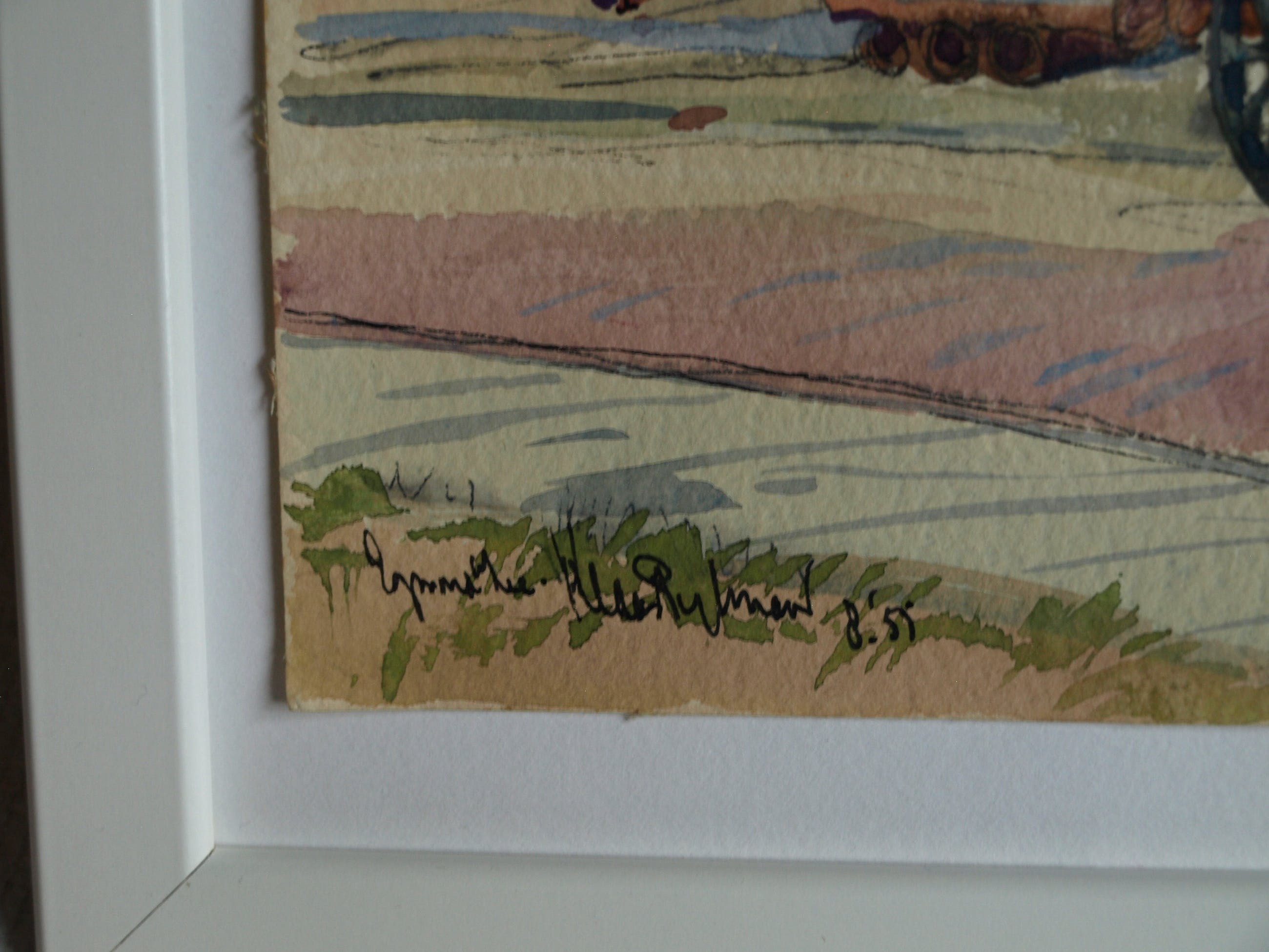In goede staat. Het papier van de aquarel heeft aan de bovenrand, rechts, 2 kleine scheurtjes (1 cm en 1,5 cm).