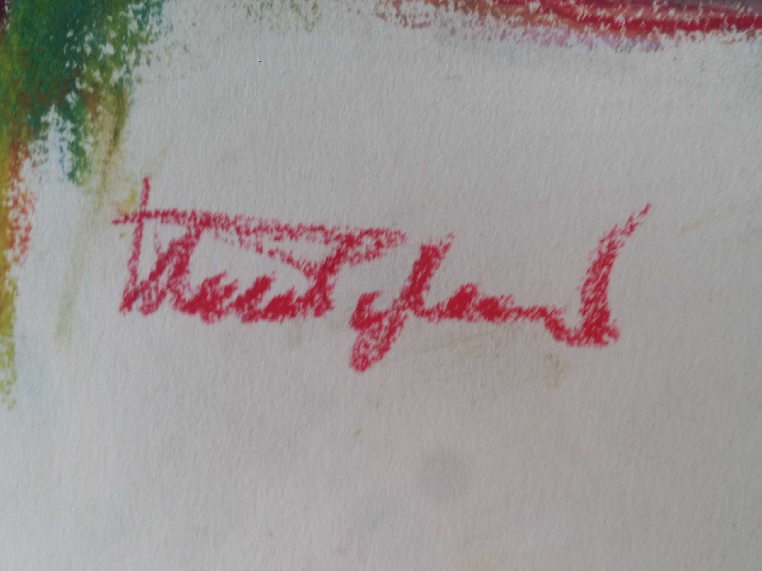 Fris werk in waskrijt.Gesigneerd.Zie foto's.