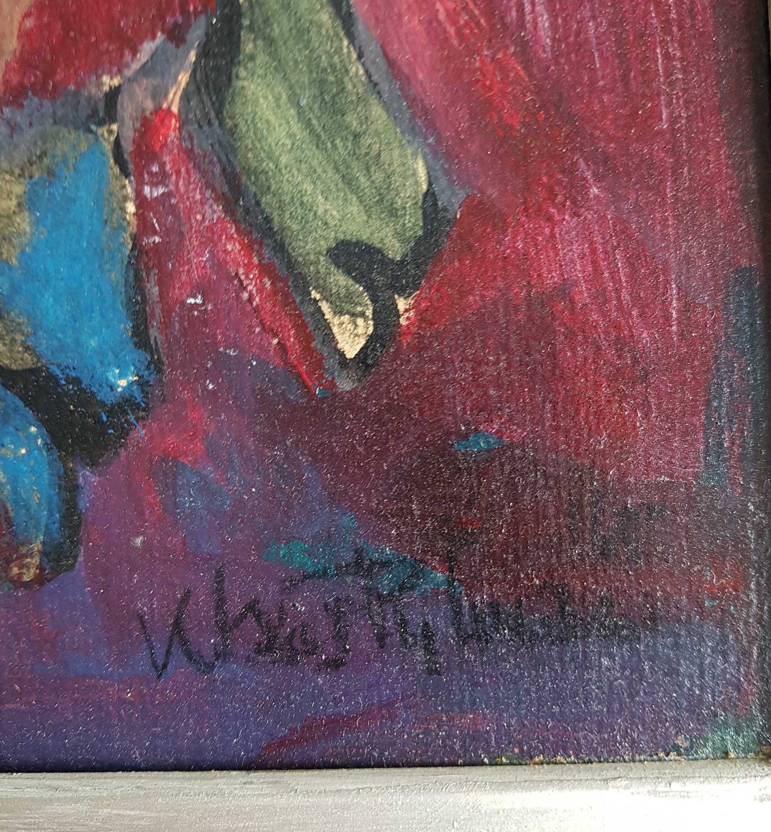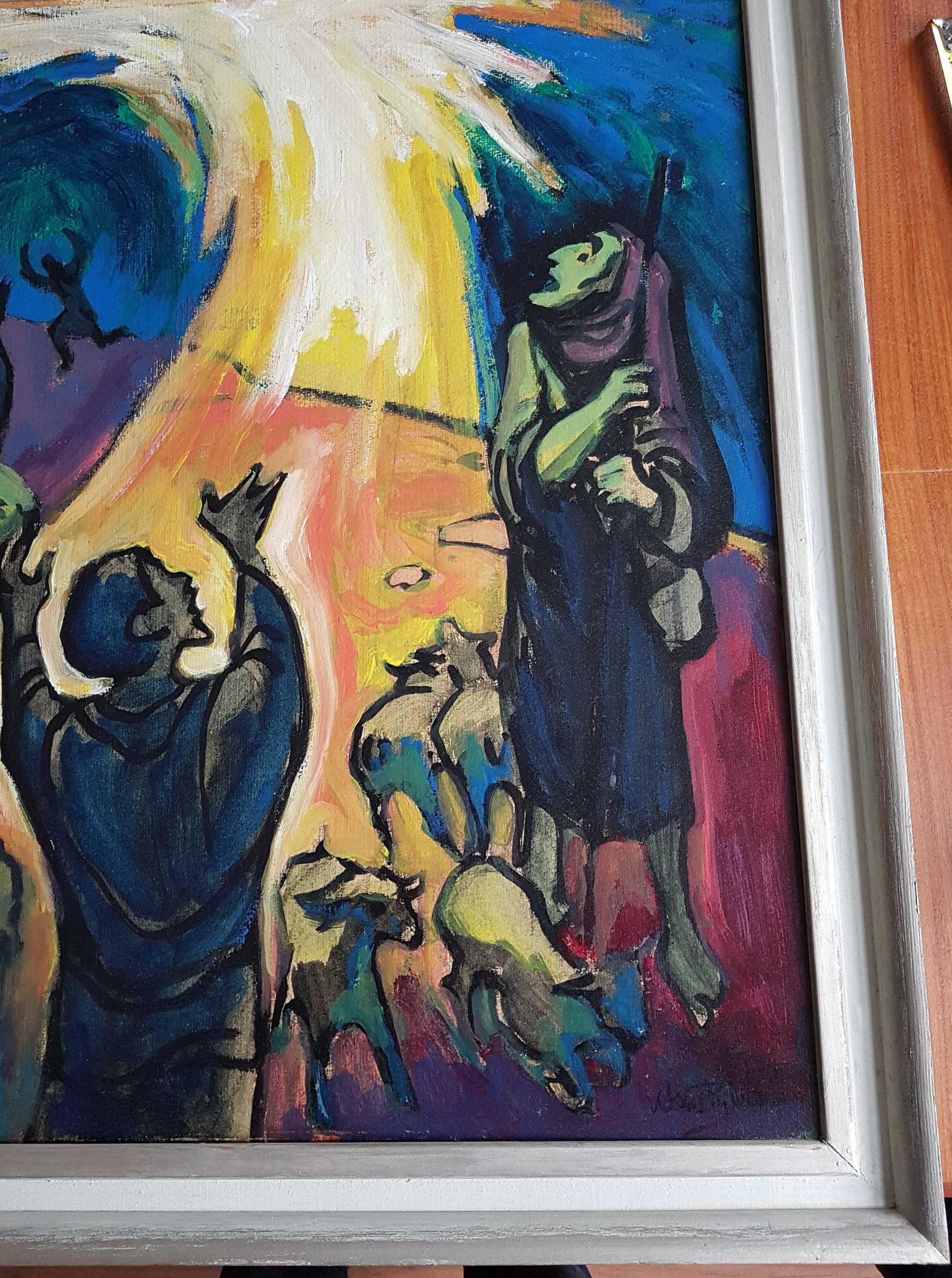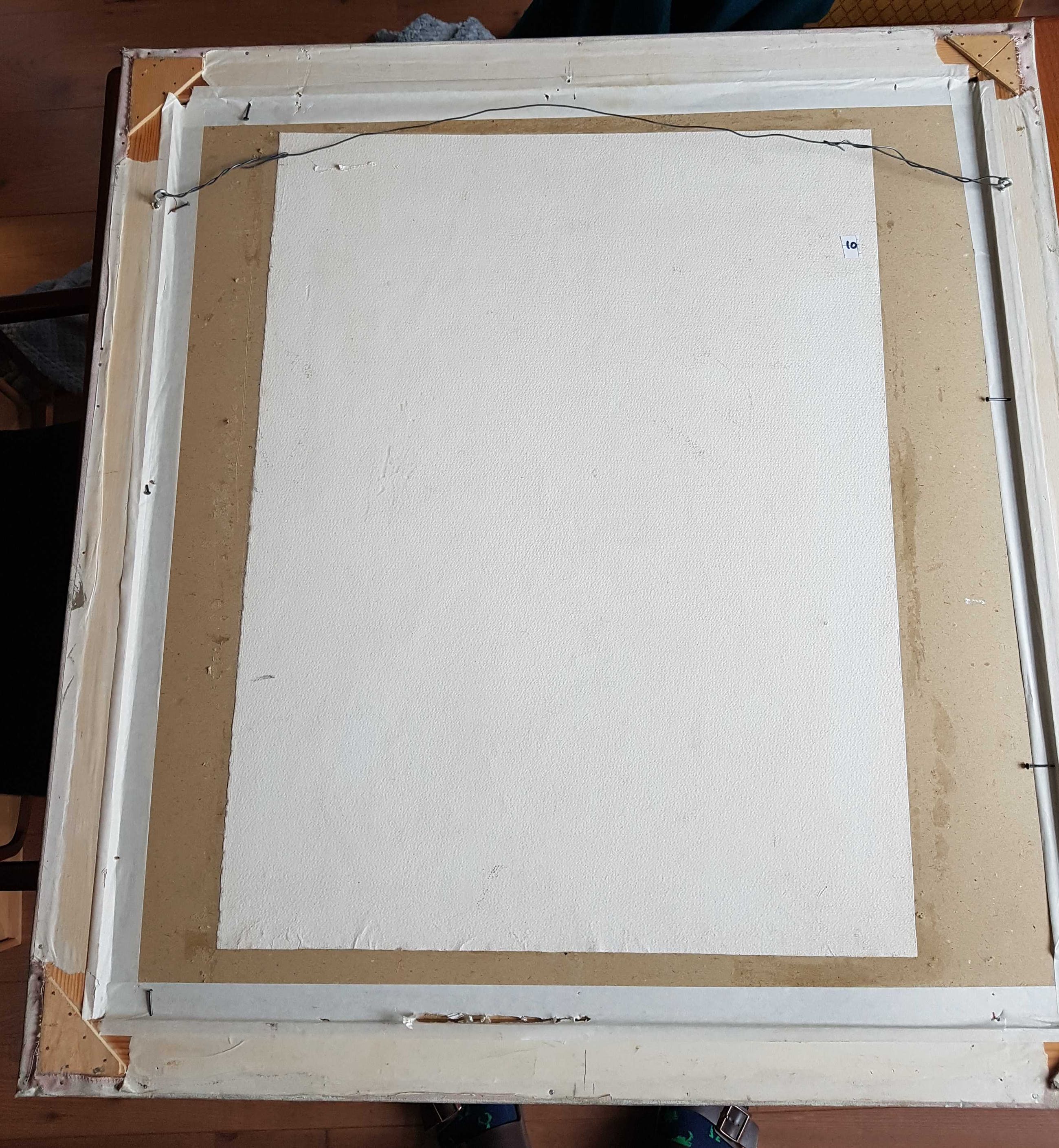 | goede tot redelijke staat. Werk zelf is prima. Lijst is wat verouderd en het werk zit wat losjes in de lijst maar dit is zo te verhelpen ( zie foto's) | |||