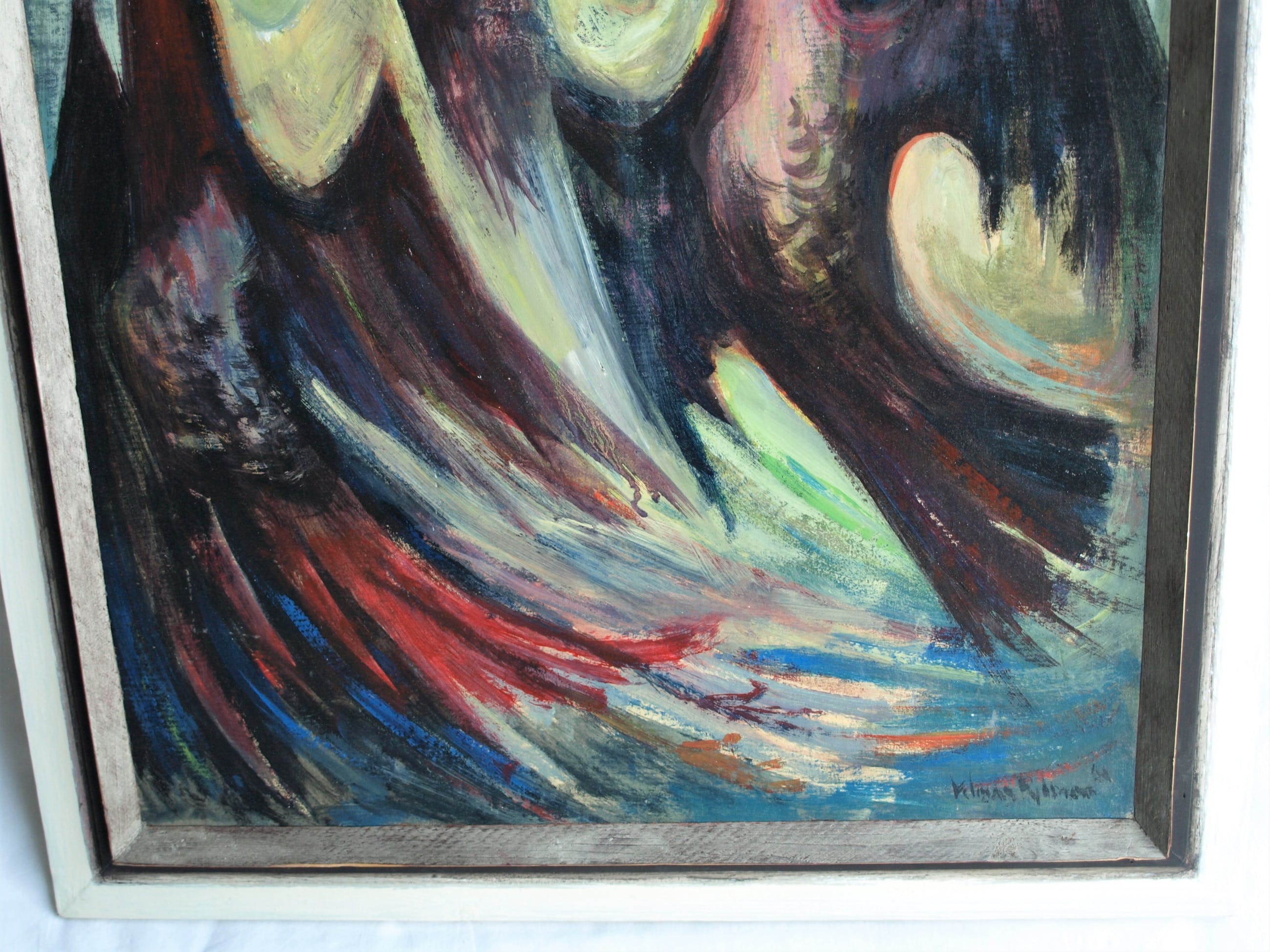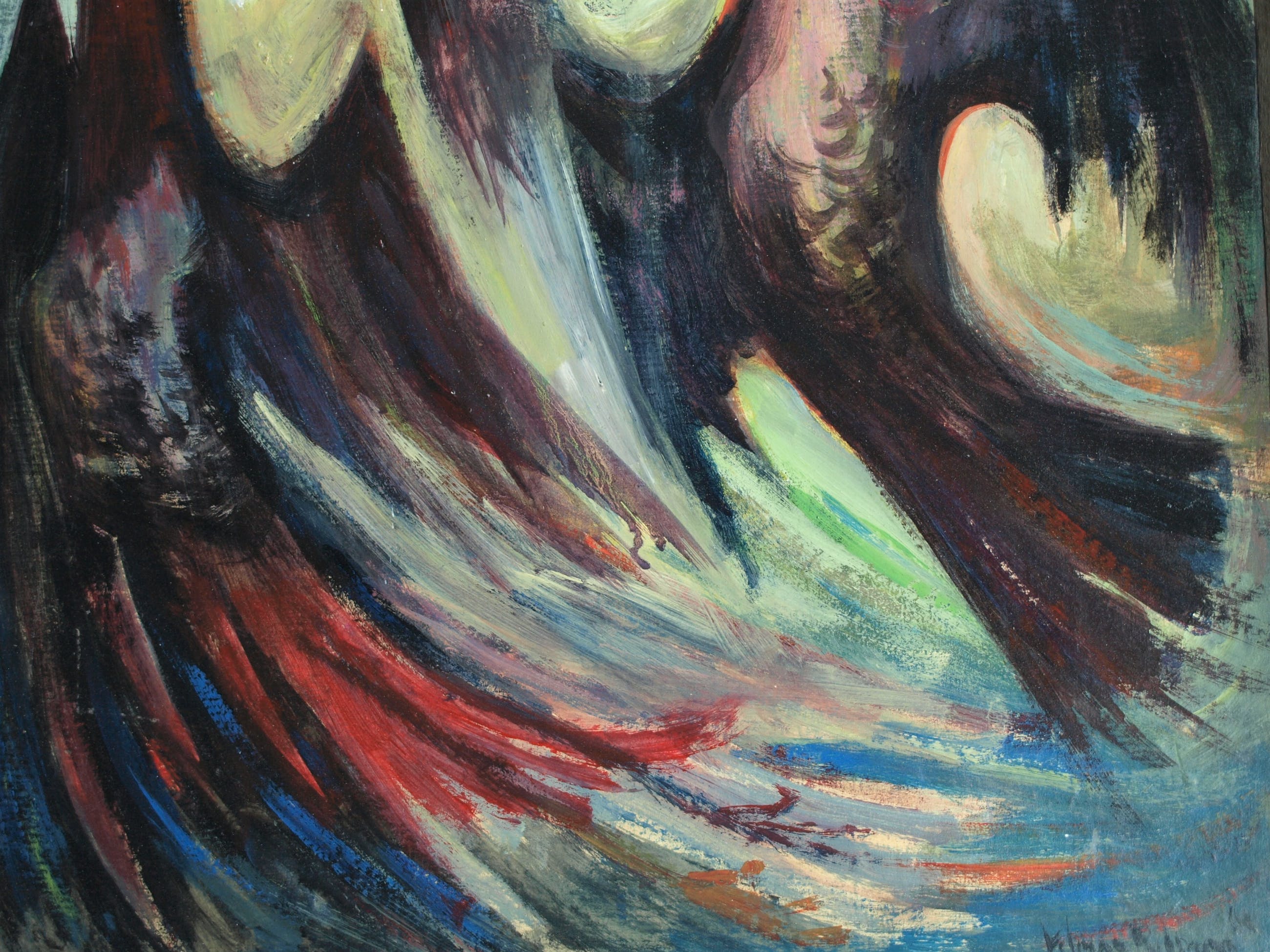 Een groot ingelijst werk uit 1961 van de Nederlandse kunstenaar Klaas Pijlman (1917-2007).