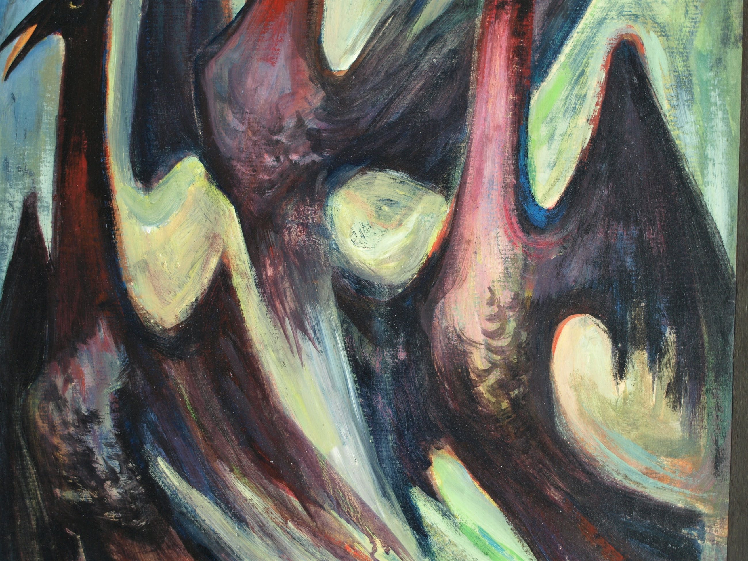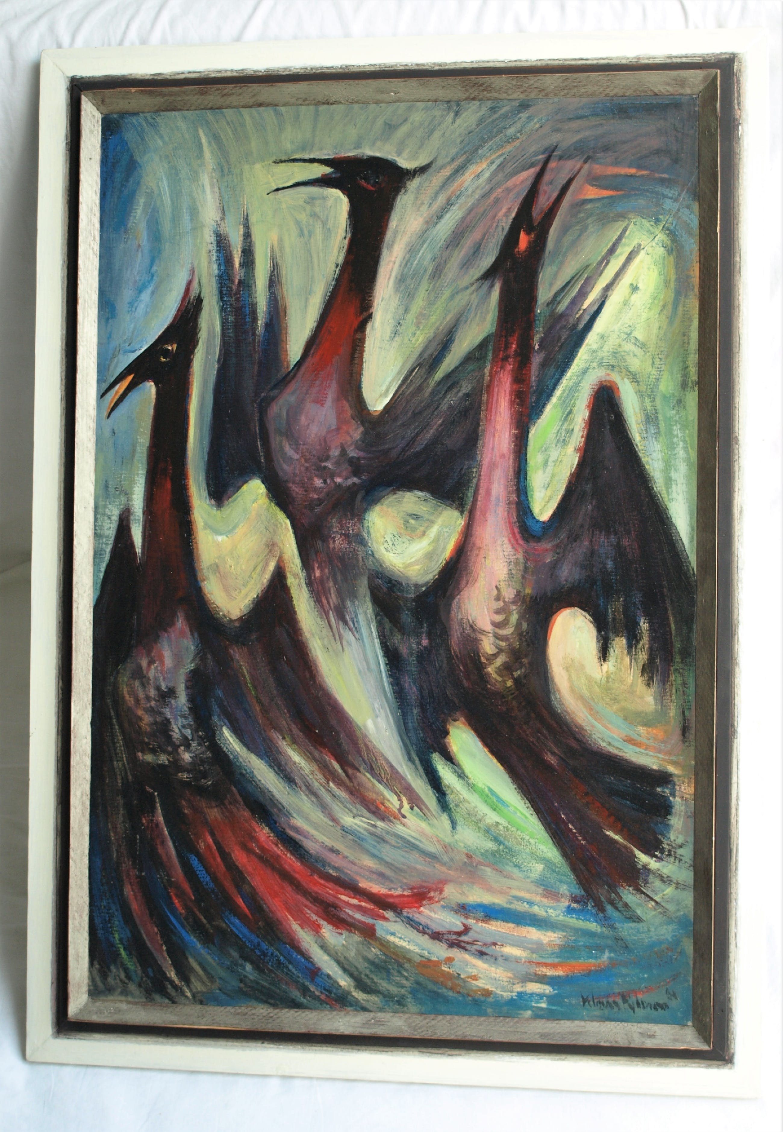 -Gesigneerd en gedateerd rechtsonder. Getiteld (“Vogels”) op de achterkant van de lijst.