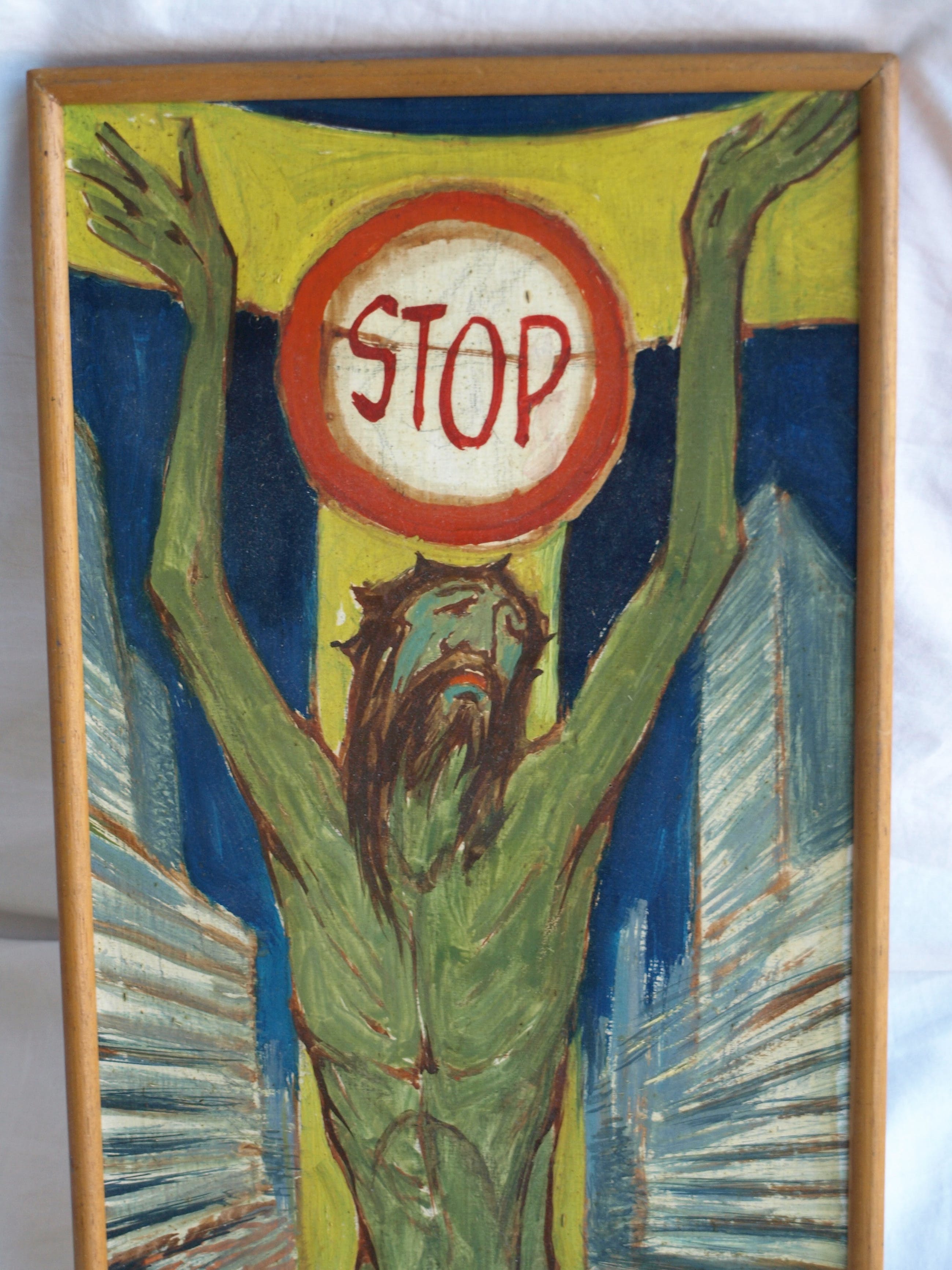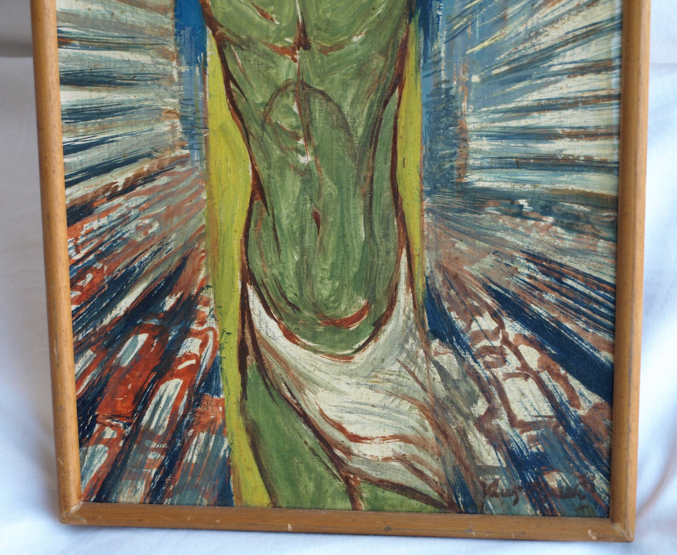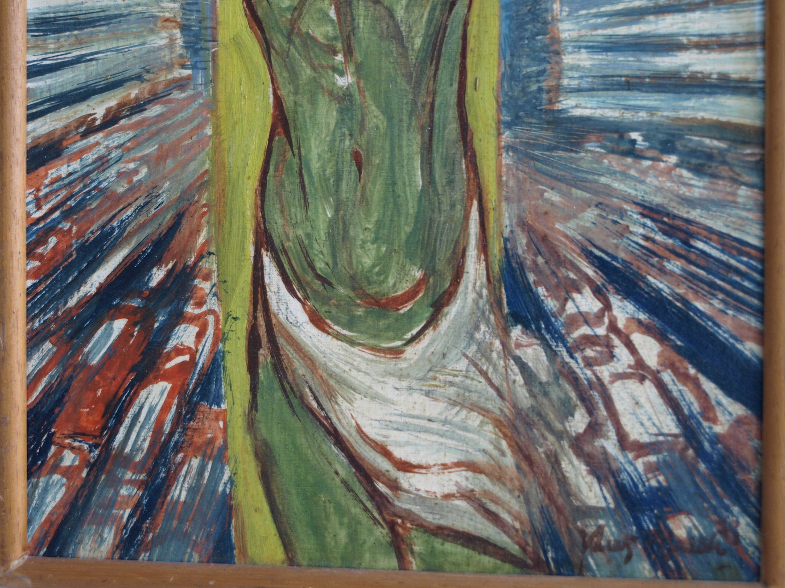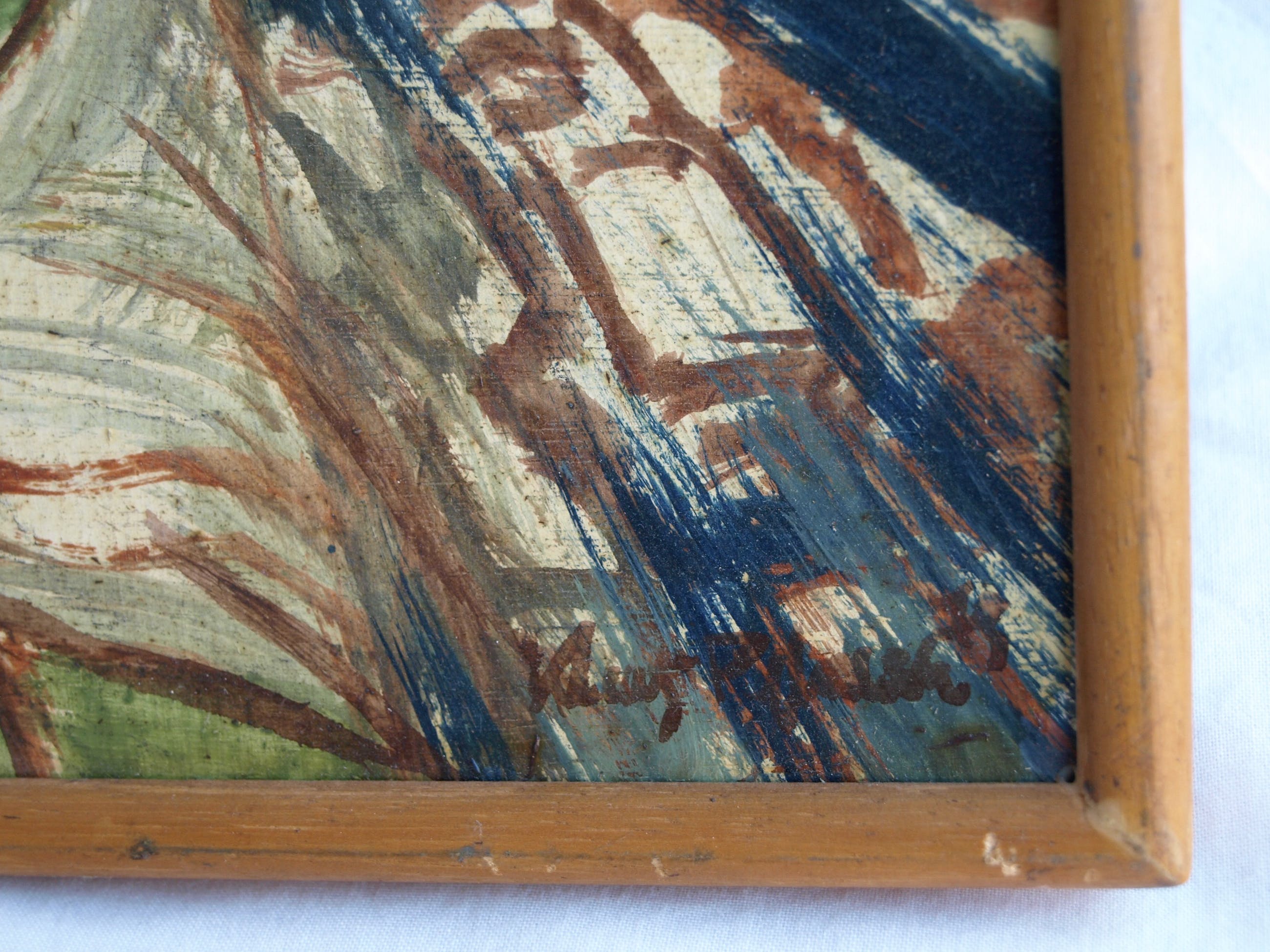 -Geschilderd op een paneel en gesigneerd rechtsonder.