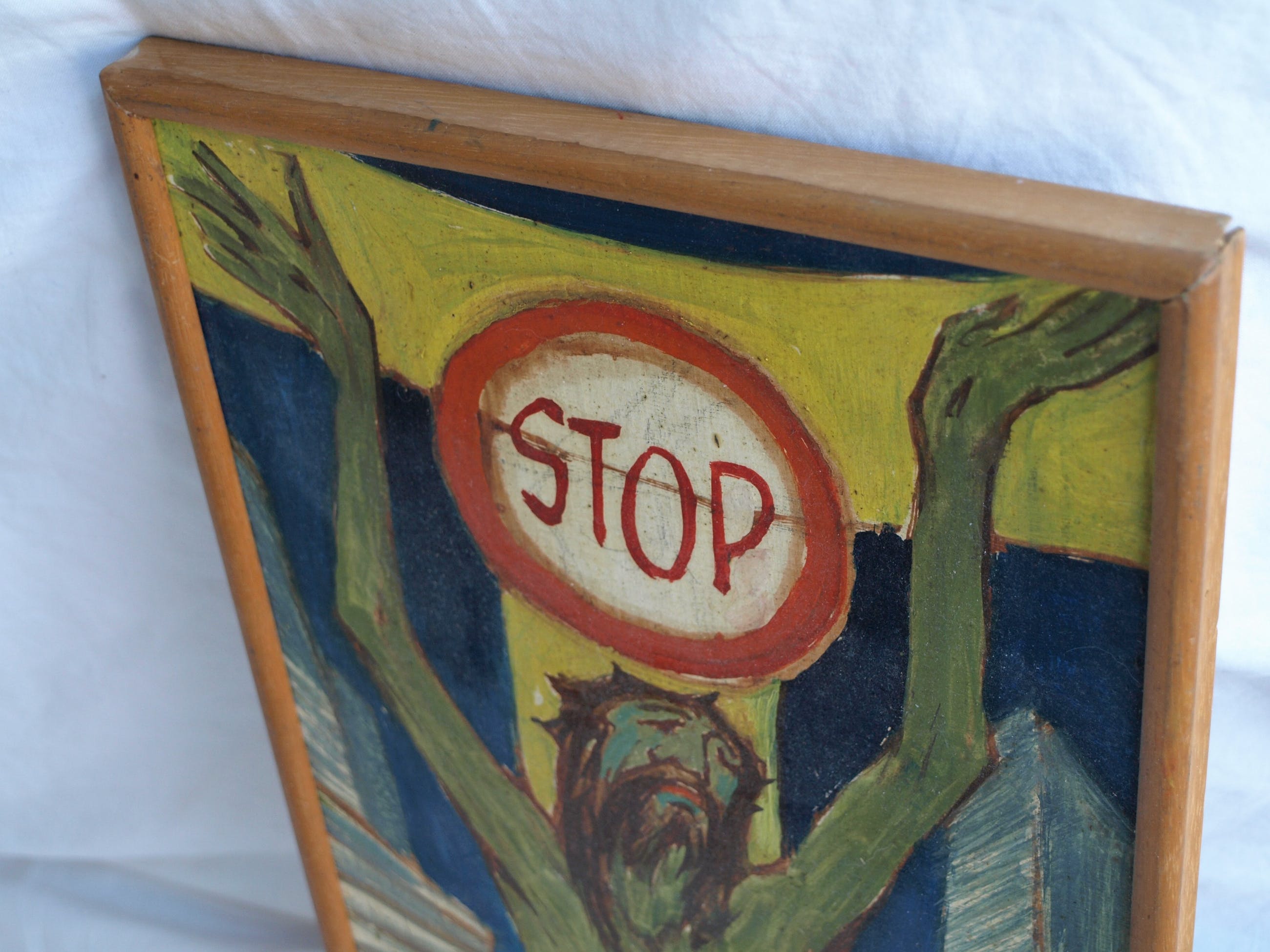 Het werk kan zo aan de muur. Het heeft een ophangoog aan de achterkant.