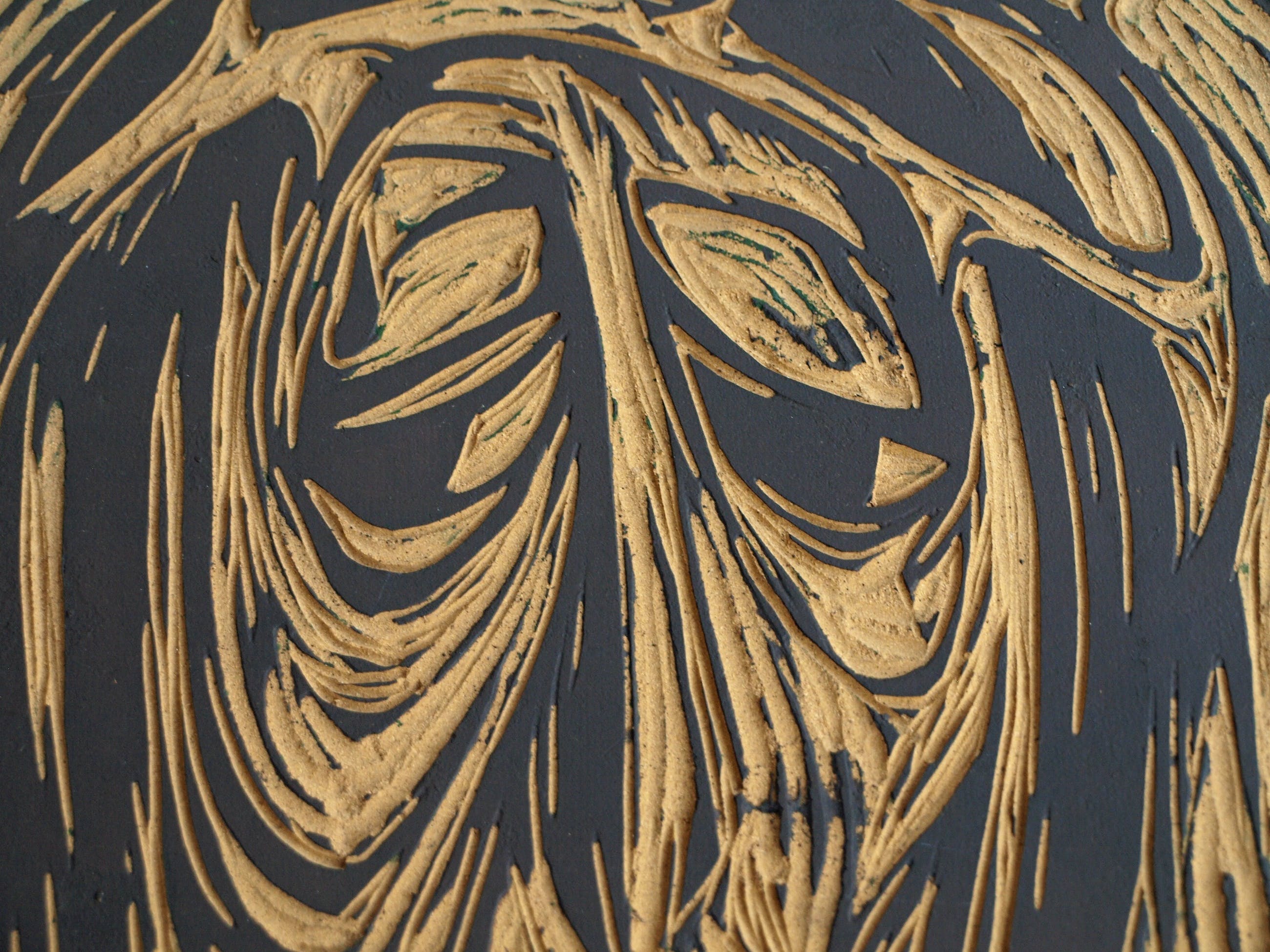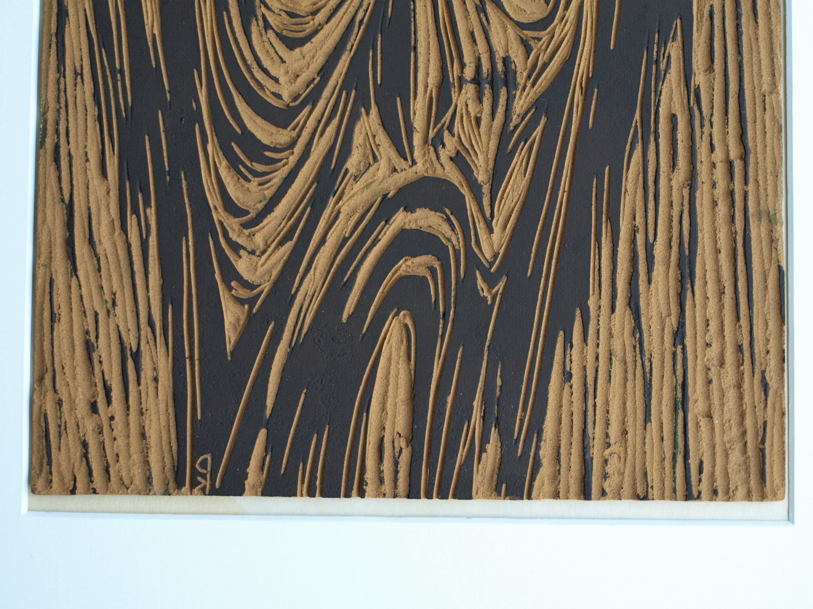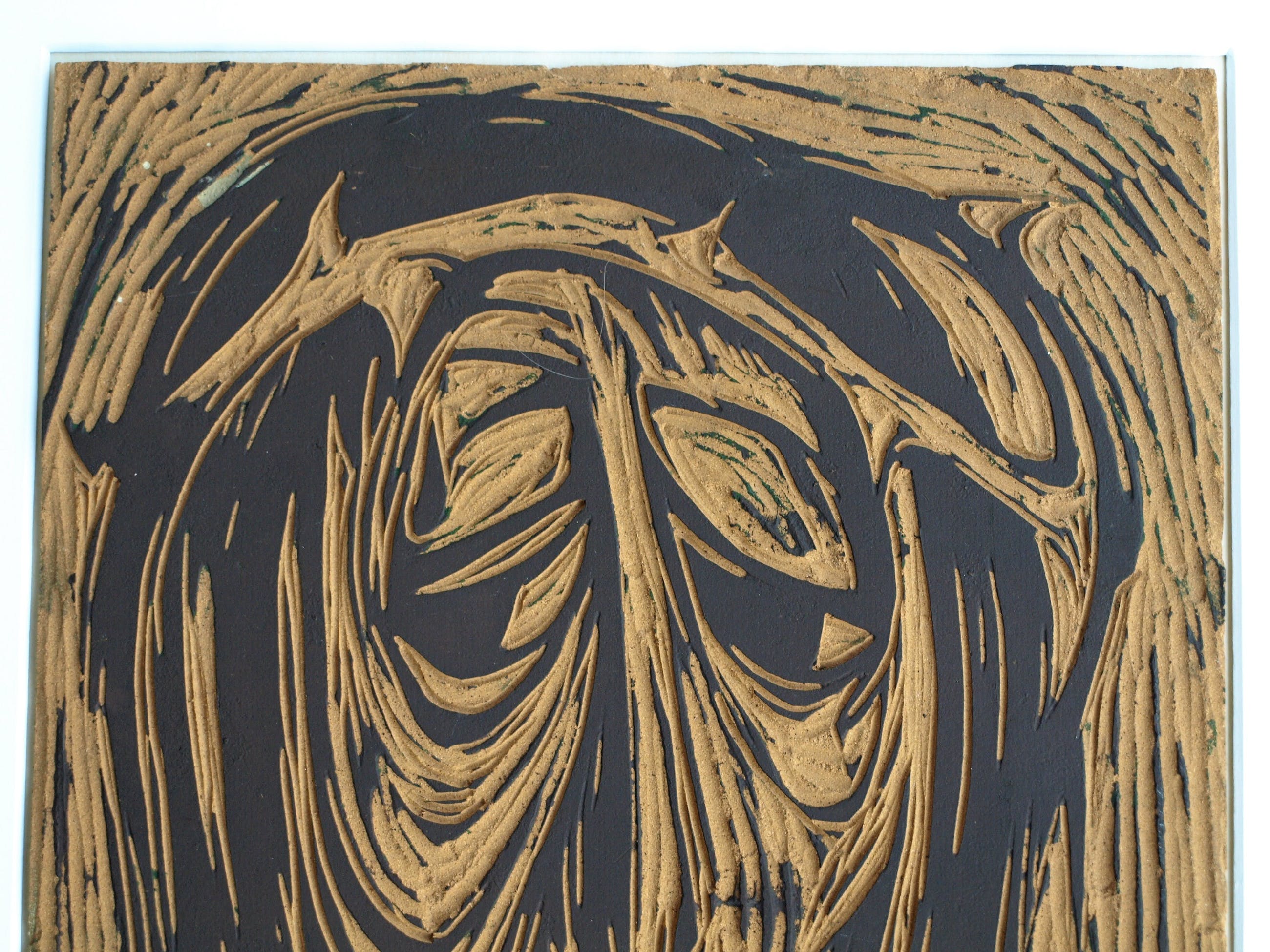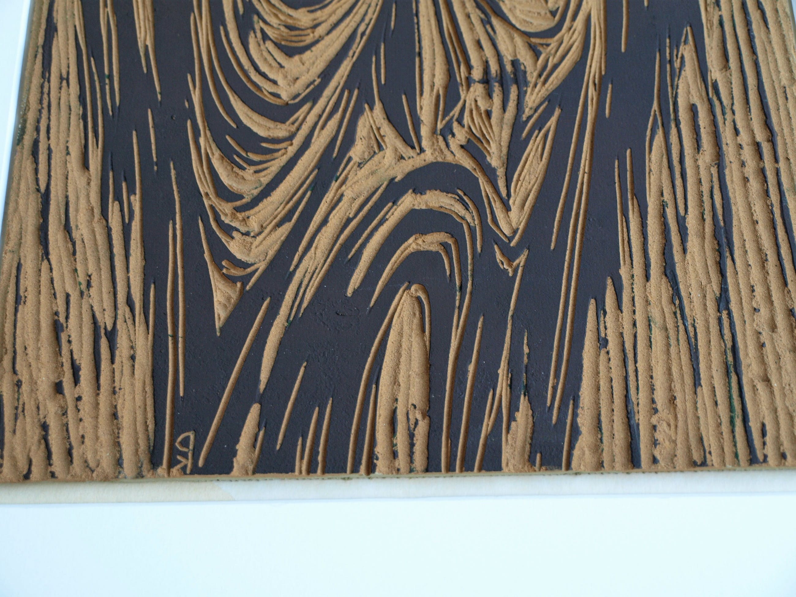 De uitgesneden linoplaat en een proefafdruk uit 1965 van de Nederlandse kunstenaar Klaas Pijlman (1917-2007).