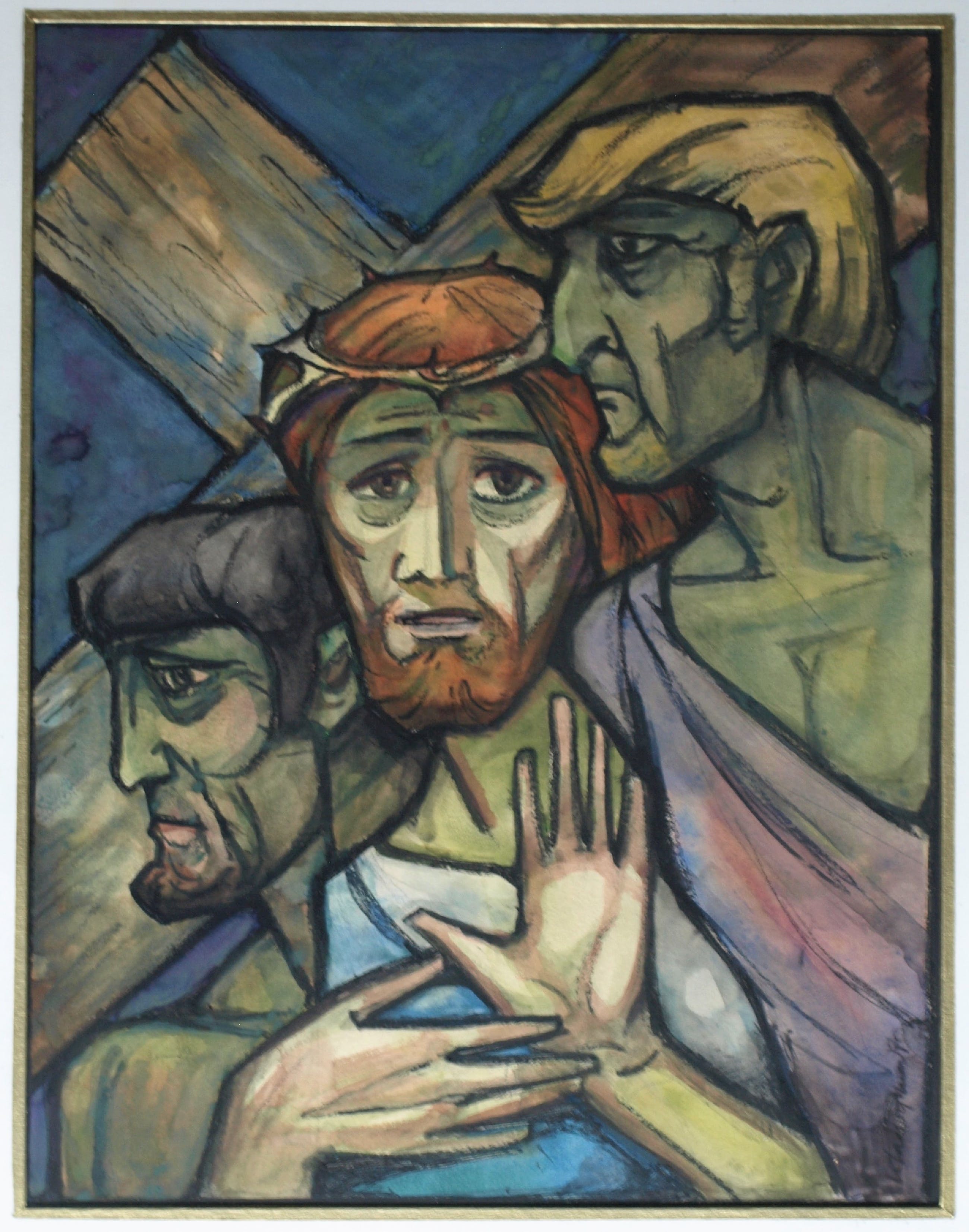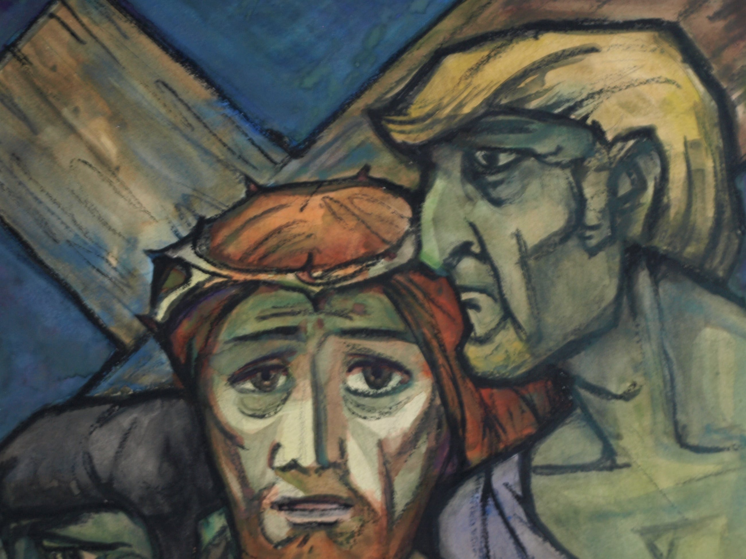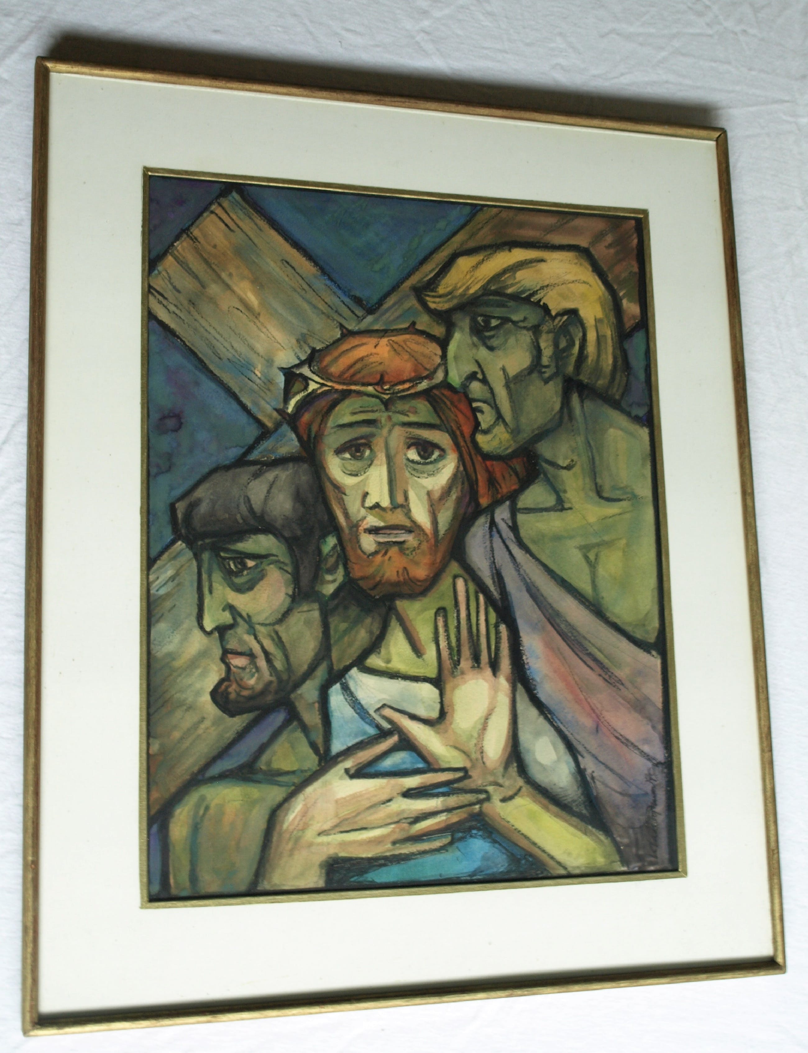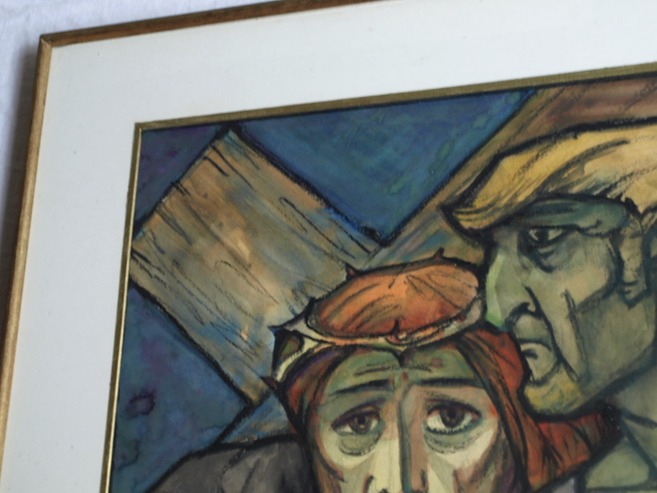 Een werk uit 1970 van de Nederlandse kunstenaar Klaas Pijlman (1917-2007), getiteld “Jezus en moordenaars”(staat op de achterkant geschreven).