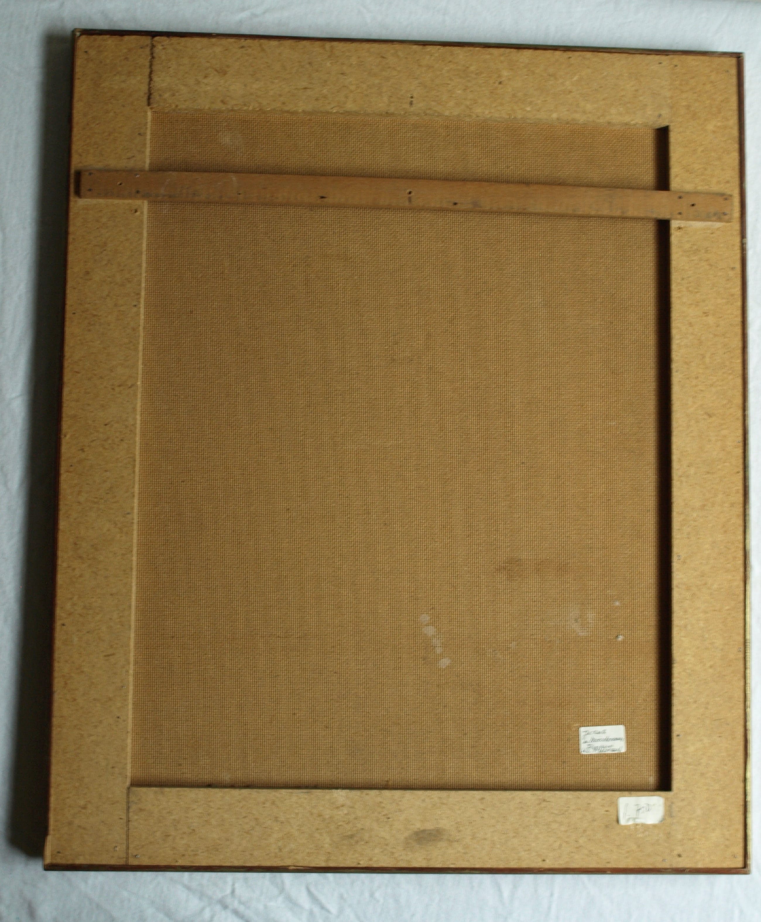 -Gesigneerd en gedateerd rechtsonder. Ook gesigneerd en getiteld op de achterkant van de lijst.