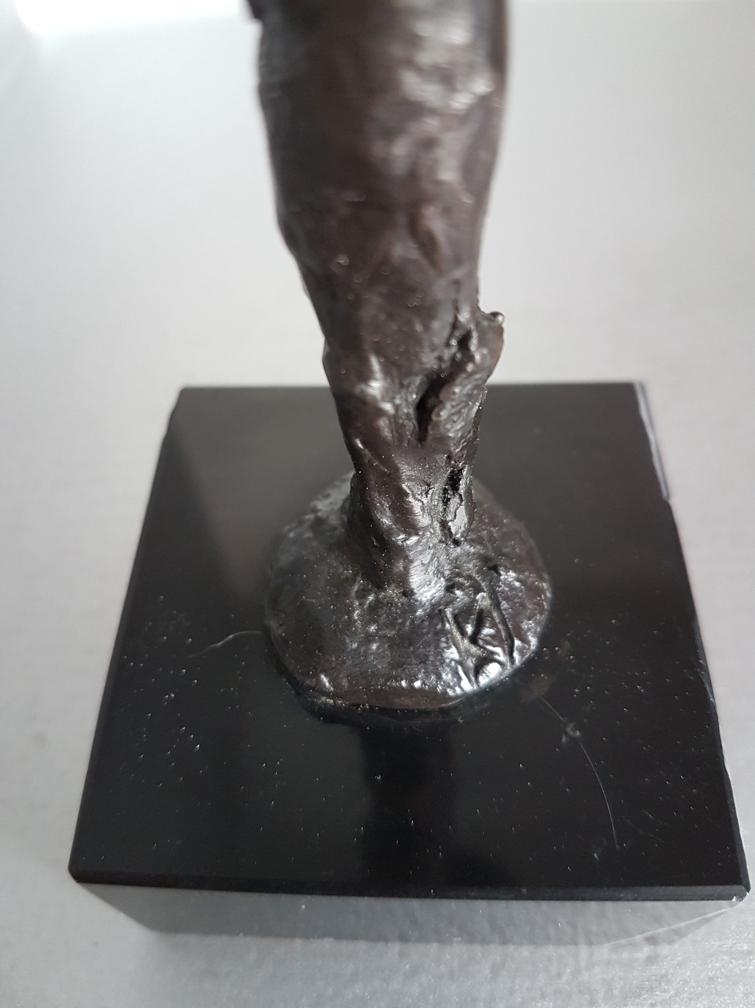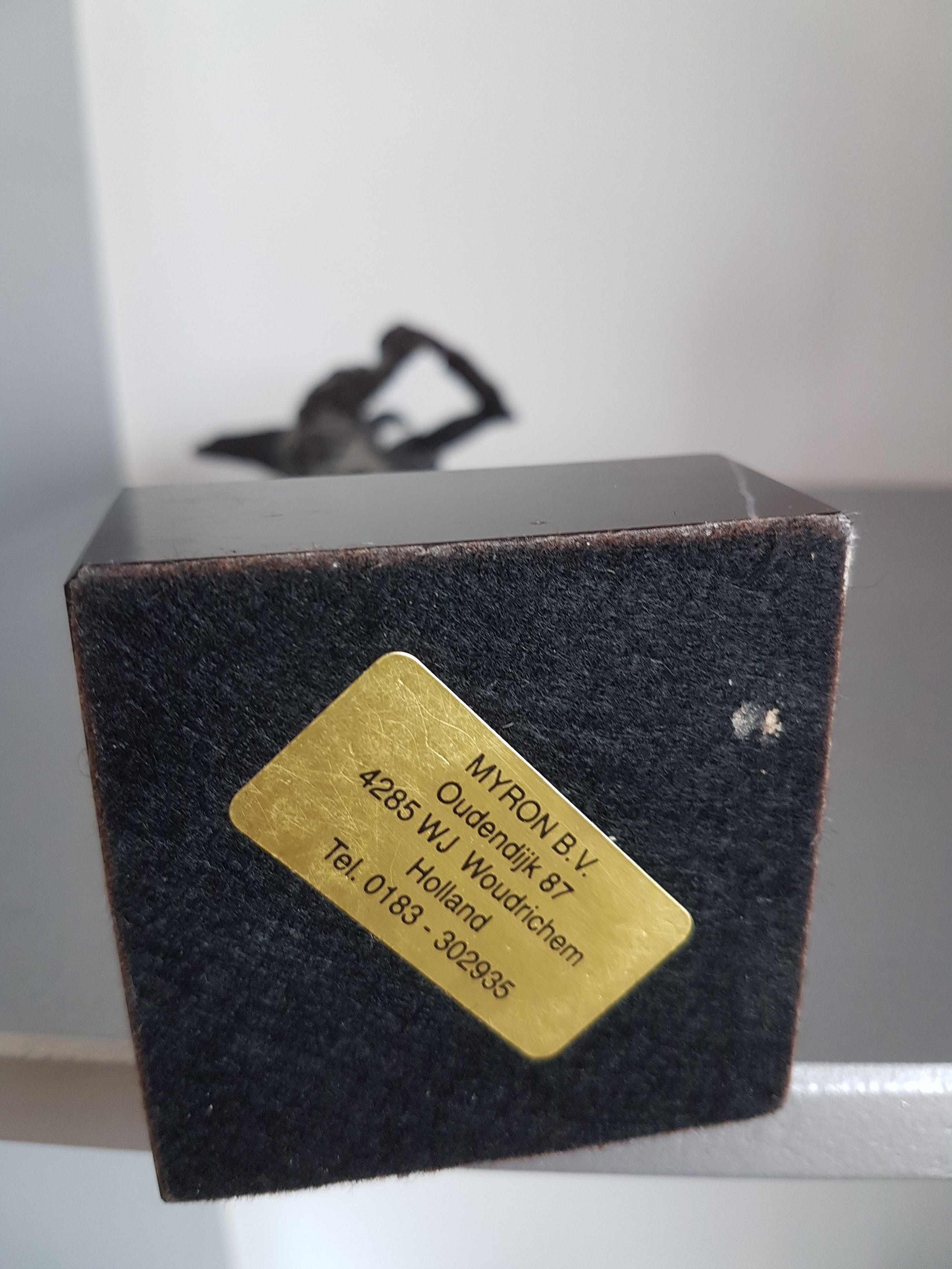 Het bronzen beeld is in zeer goede staat, echter de steen heeft een 1 beschadiging aan de linker achterzijde. Zie de vele foto's die toegevoegd zijn. Het beeld word zorgvuldig verpakt en