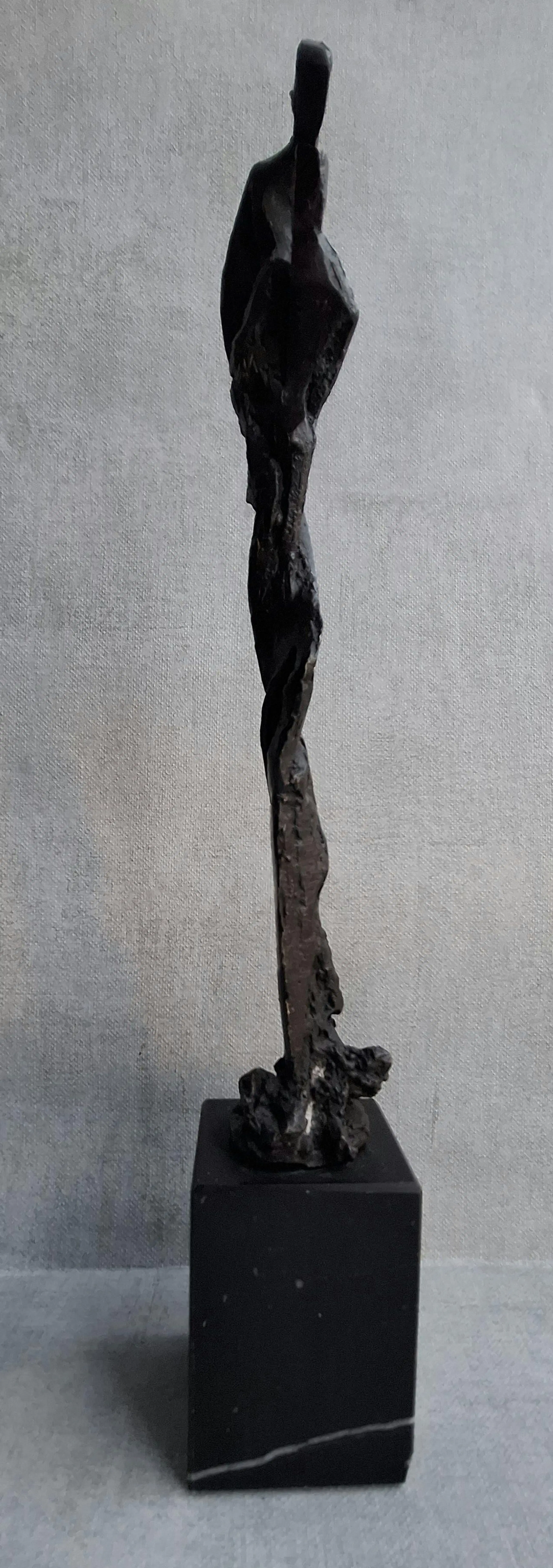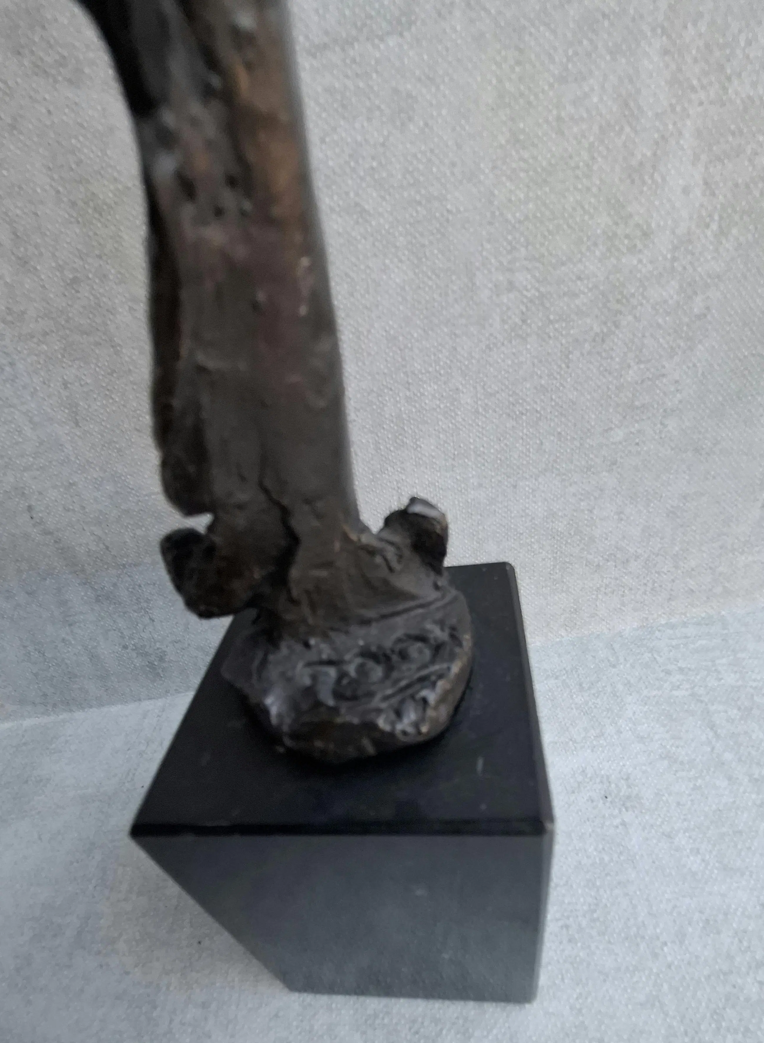 Het beeld is op de voet gesigneerd: 2001 Klein beschadigingen onder aan sokkel, maar niet storend.