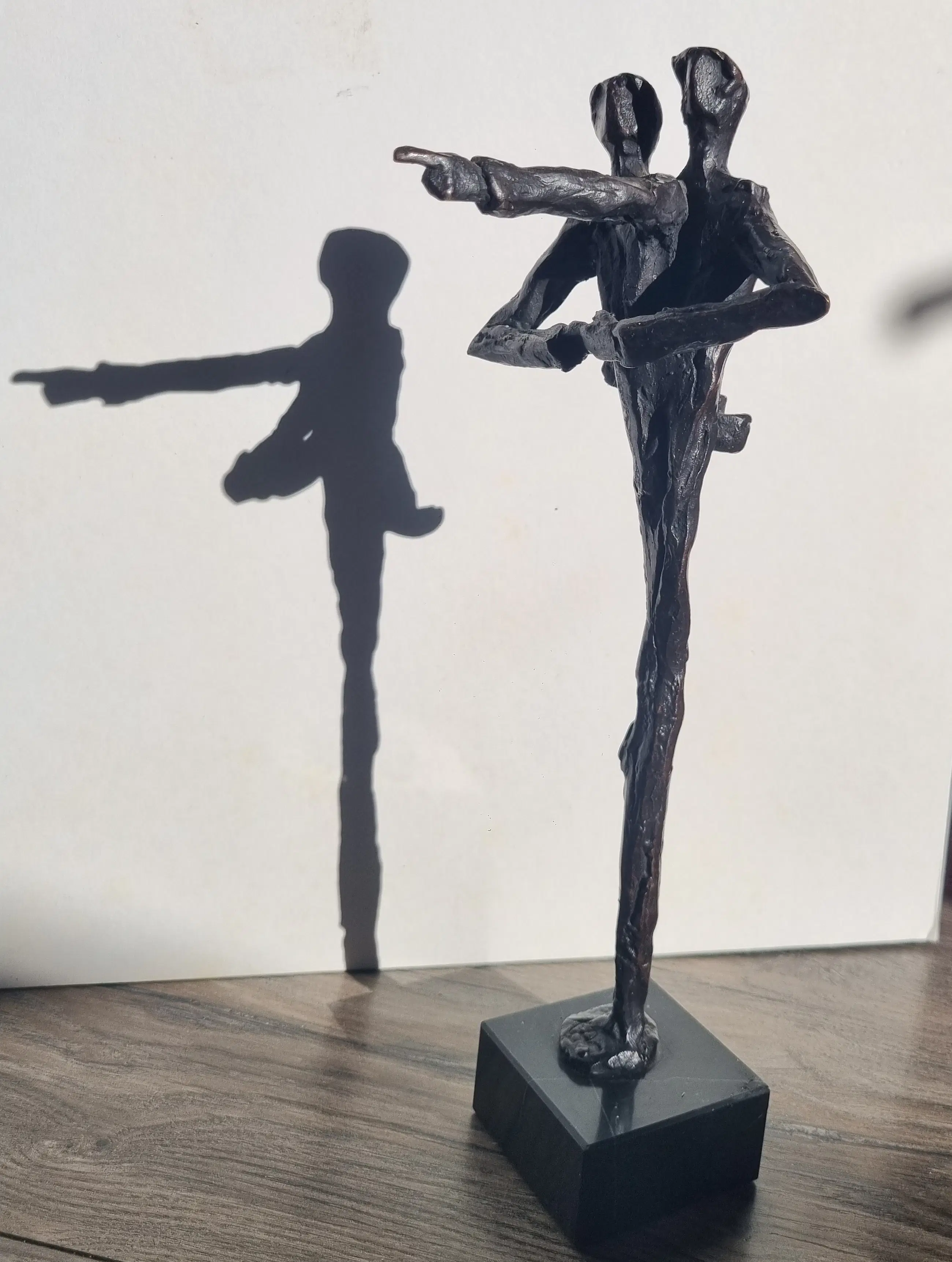 Klaas van den Berg bronzen beeld getiteld - 'Ik wijs je de weg'