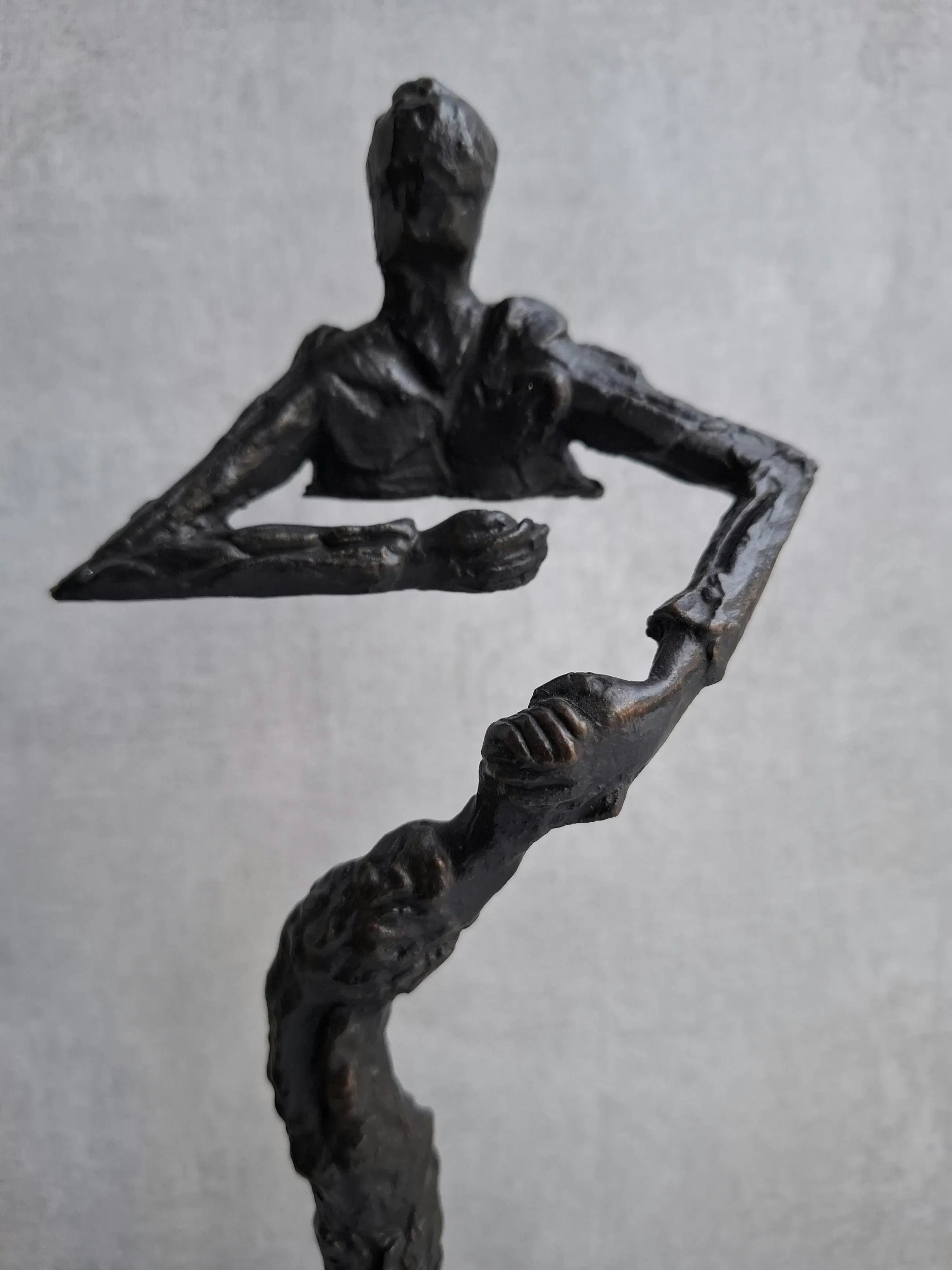 Het sculptuur beeldt uit dat de ene hand de andere hand stevig vast pakt.