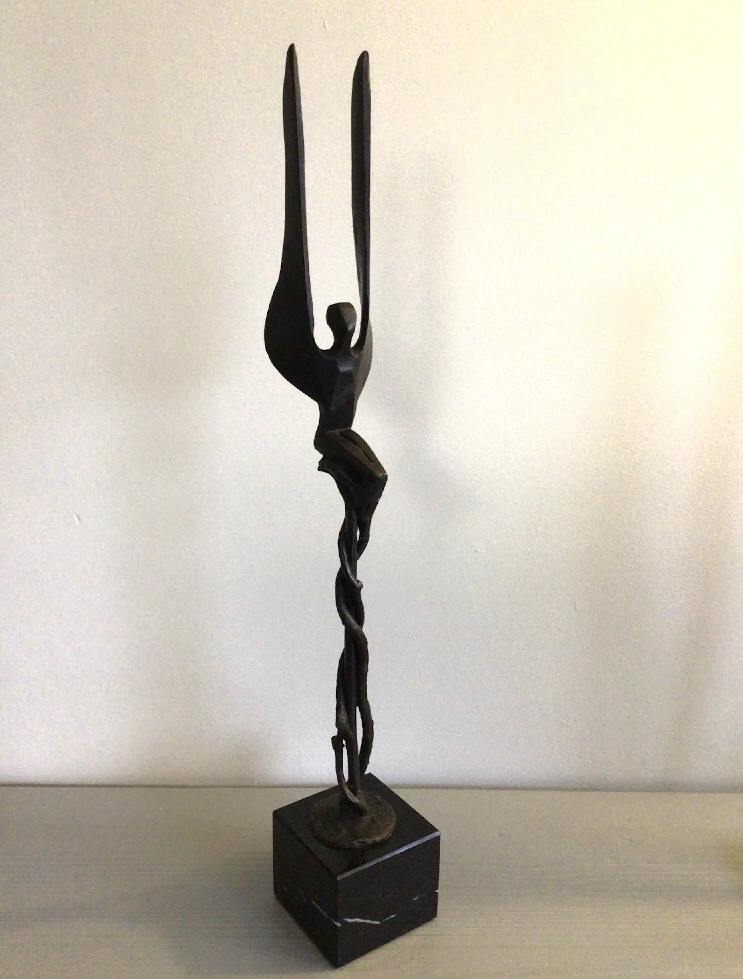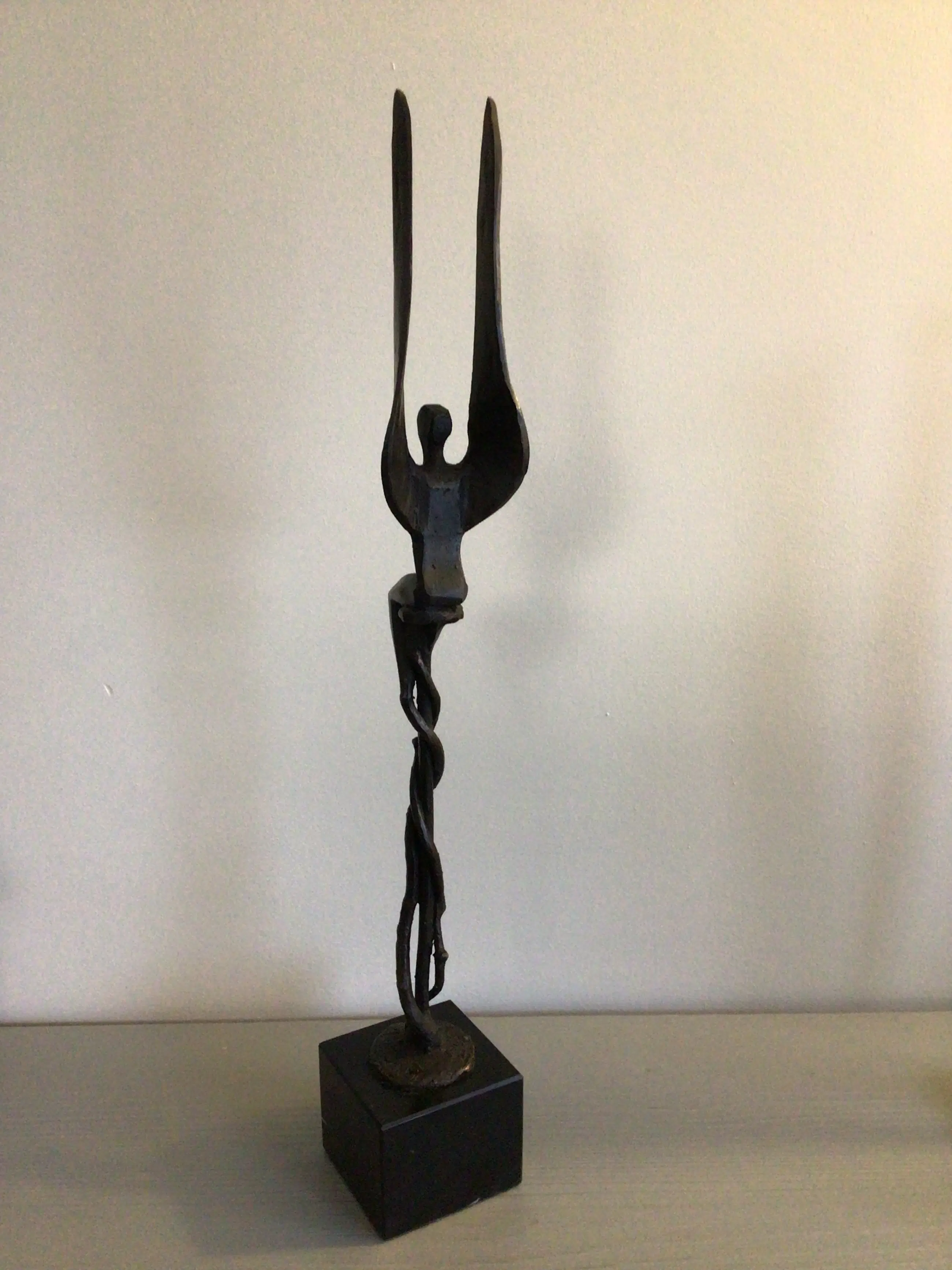 Zeer fraai vormgegeven stilistisch sculptuur van de bekende Nederlandse kunstenaar/ architect Klaas van den Berg Titel “ Athena “ Betekenis “ Godin Athena beschermster van het kunstzinnige, het schone…..” Hoogte : 41 cm Materiaal: brons op zwart marmeren sokkel. Het beeld is gesigneerd: Kvb Het beeld verkeert in zeer goede staat en wordt zorgvuldig verpakt verzonden.