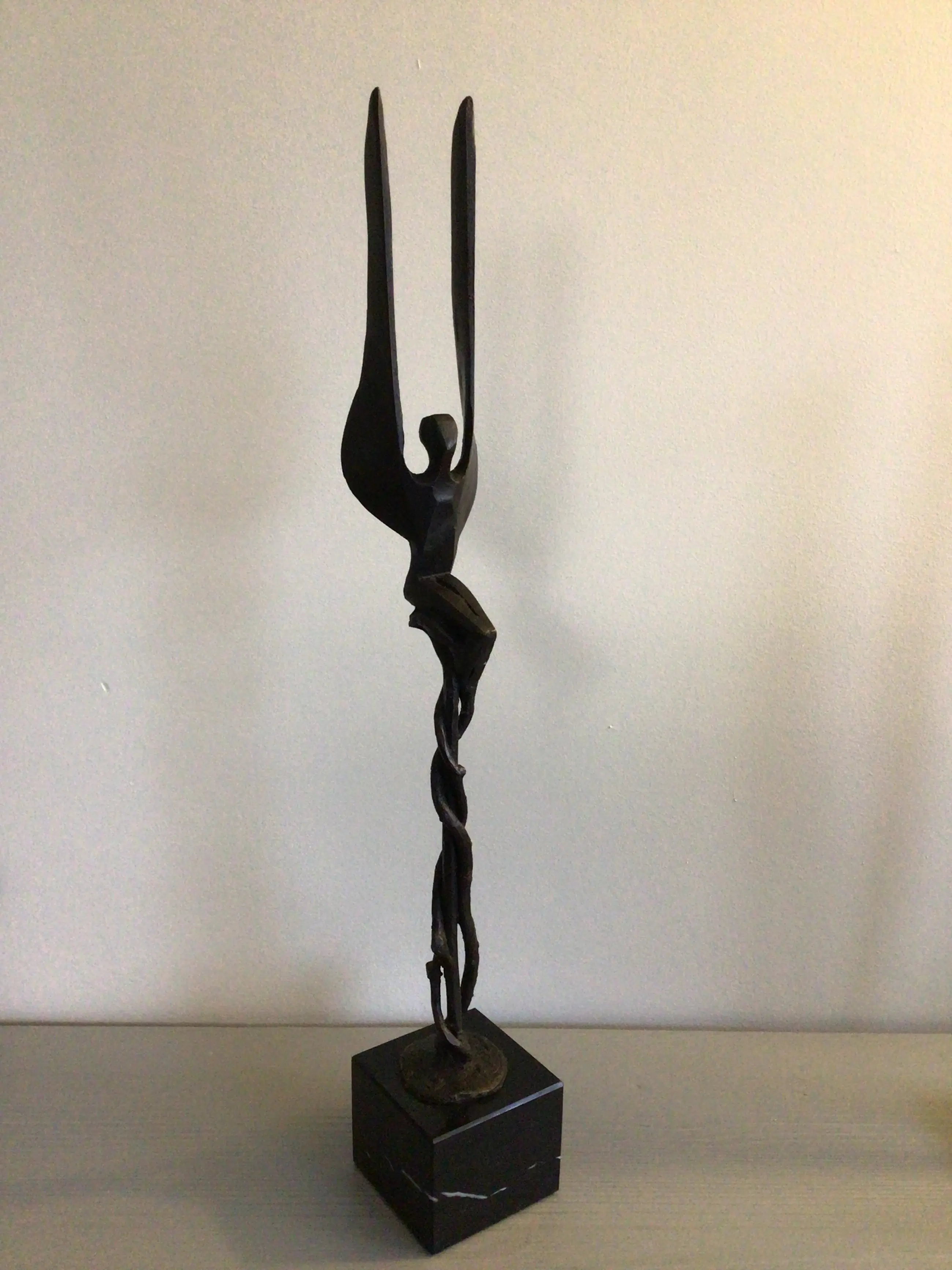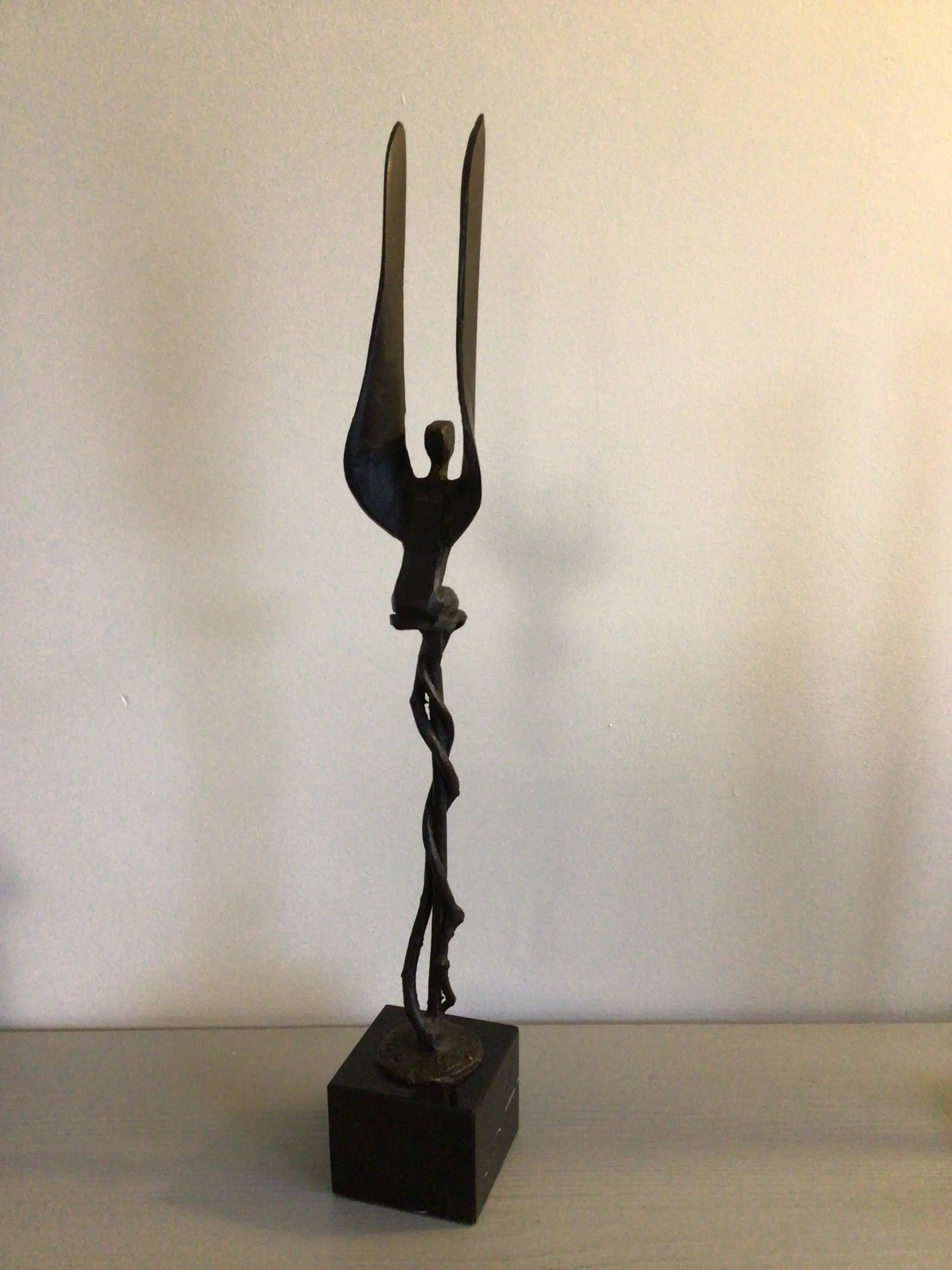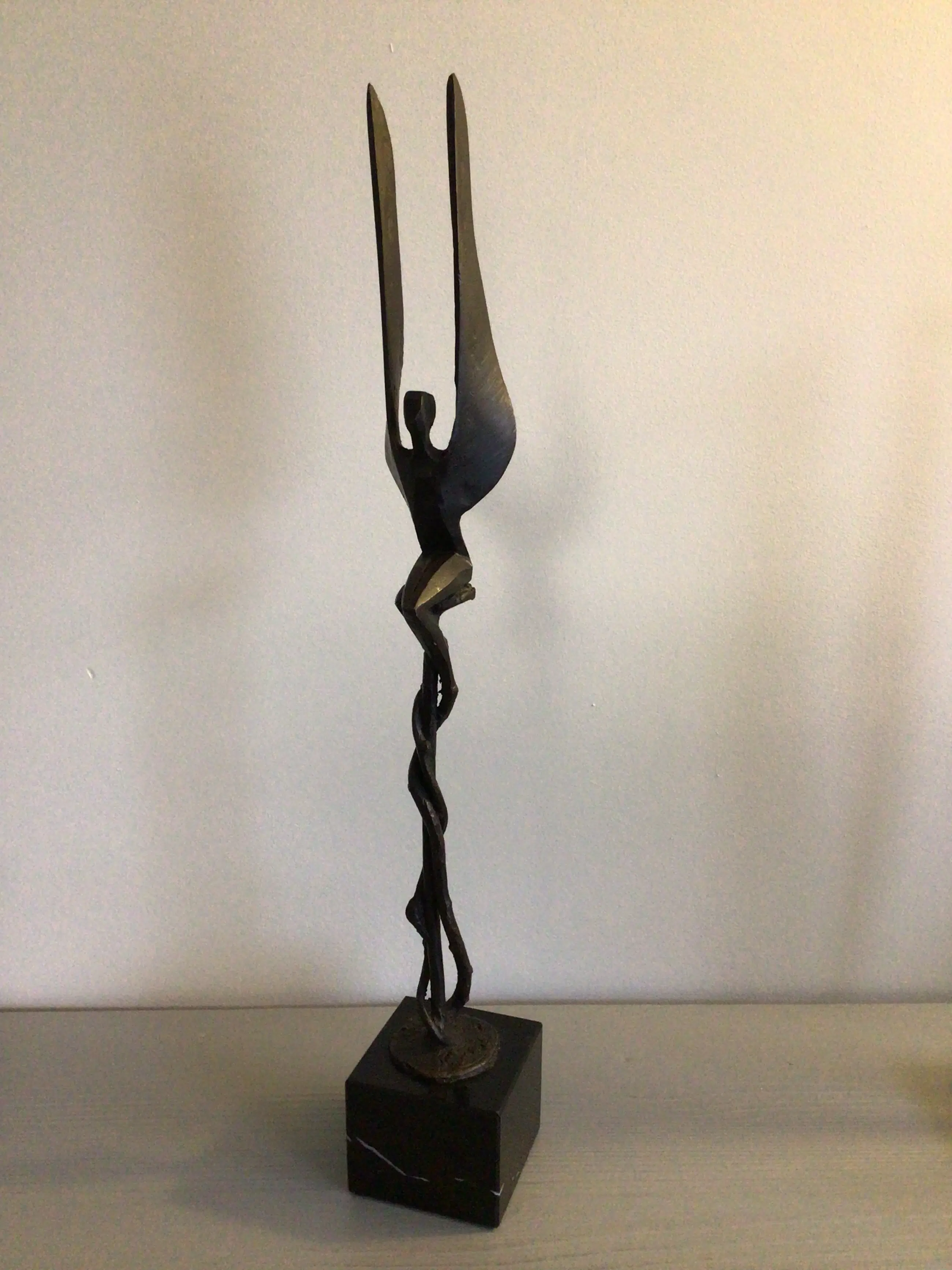Zeer fraai vormgegeven stilistisch sculptuur van de bekende Nederlandse kunstenaar/ architect Klaas van den Berg Titel “ Athena “ Betekenis “ Godin Athena beschermster van het kunstzinnige, het schone…..” Hoogte : 41 cm Materiaal: brons op zwart marmeren sokkel. Het beeld is gesigneerd: Kvb Het beeld verkeert in zeer goede staat en wordt zorgvuldig verpakt verzonden.