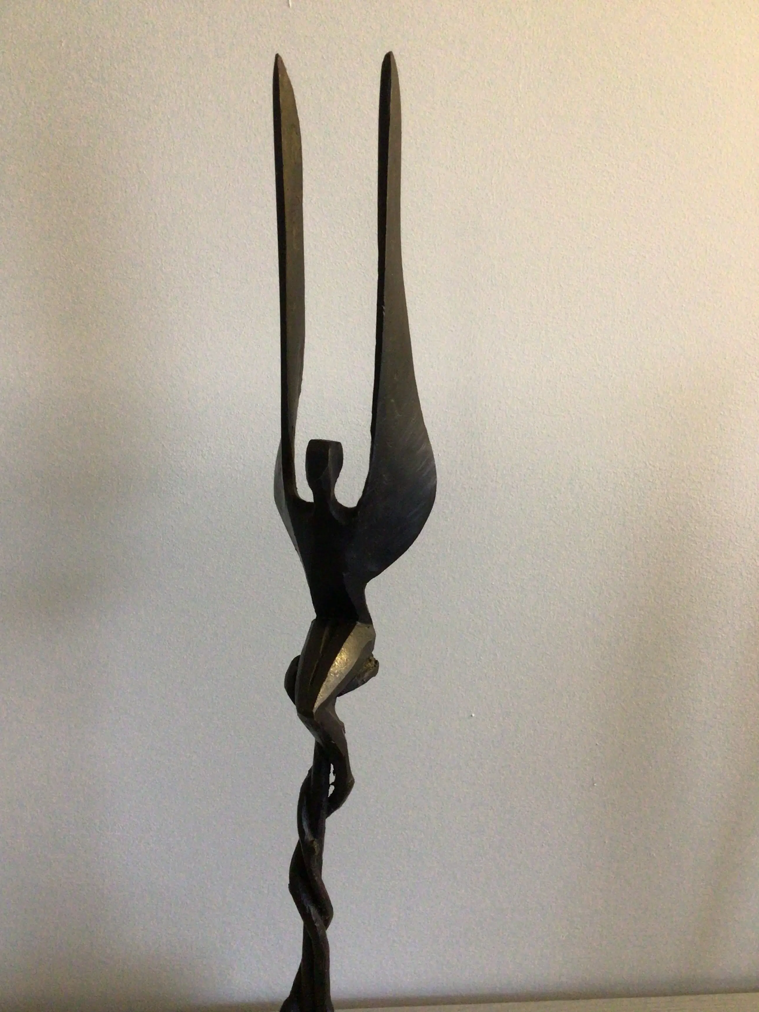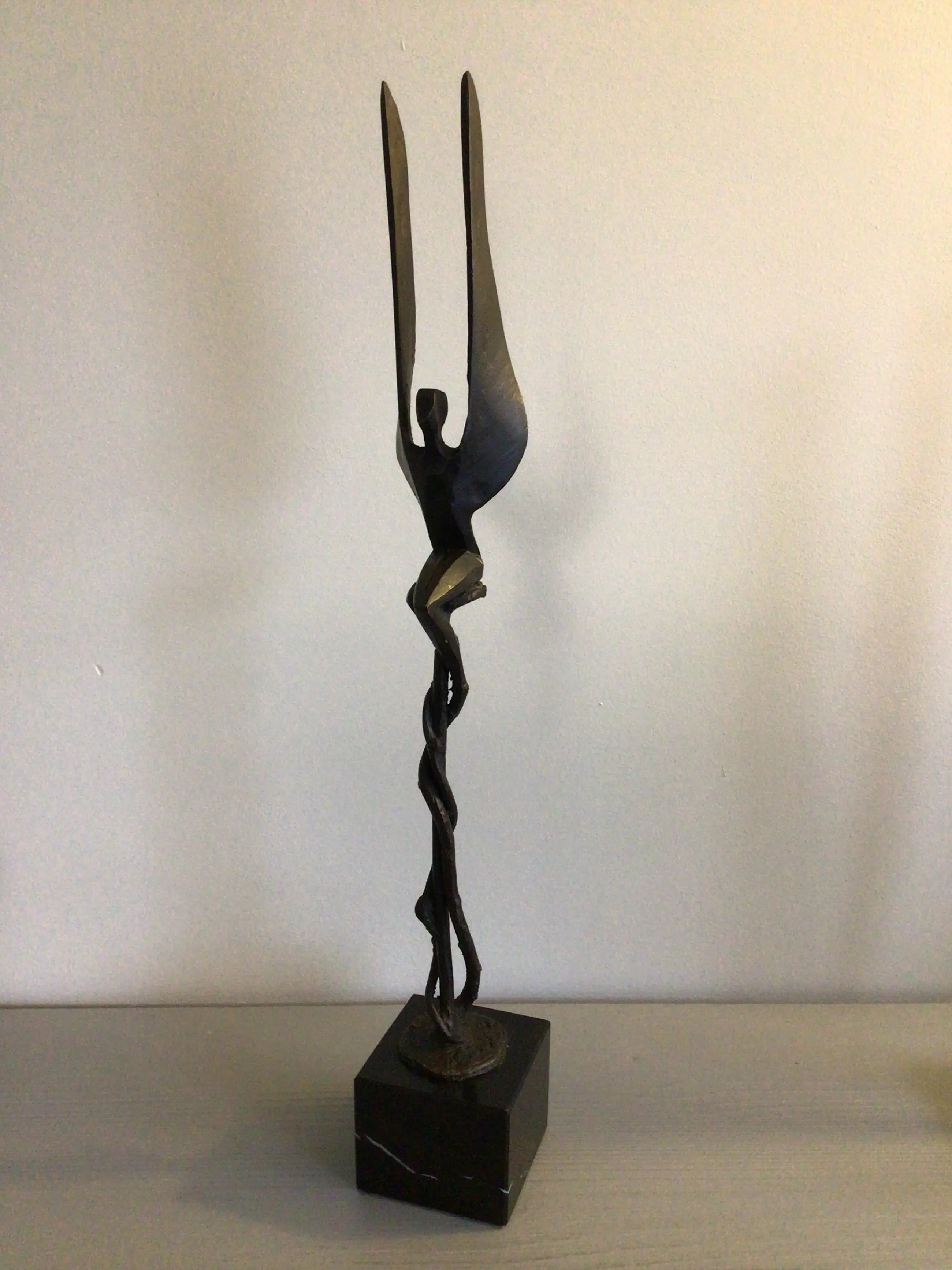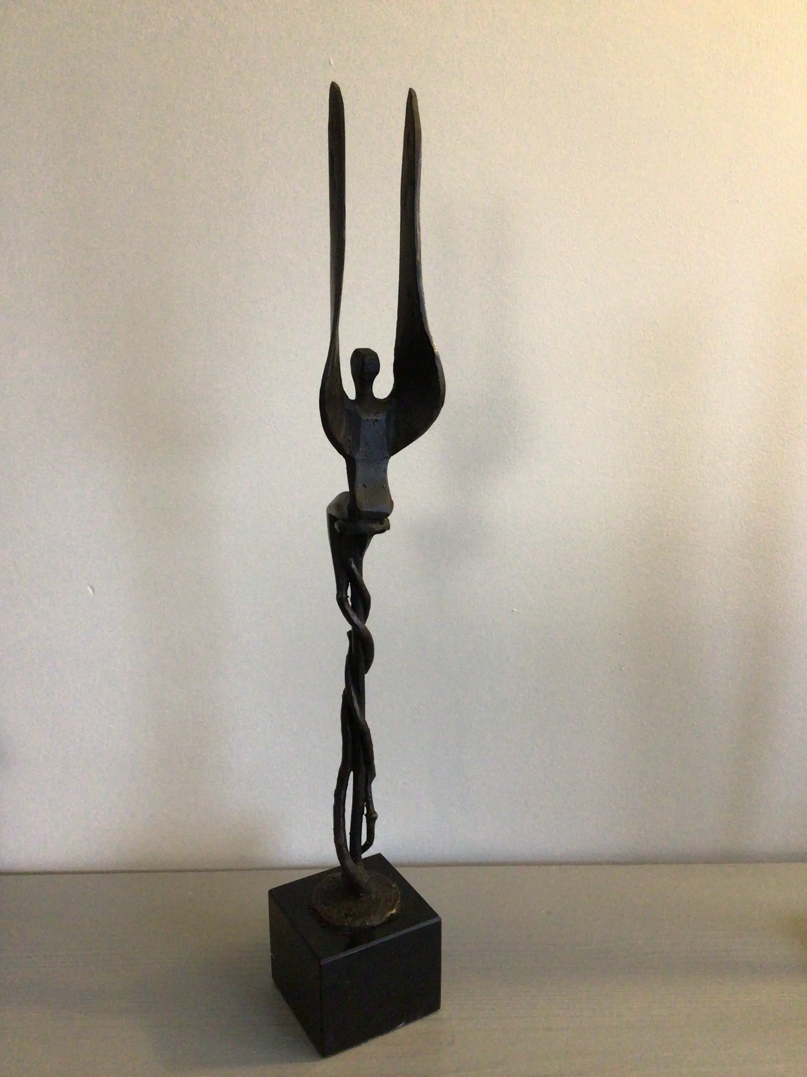 Zeer fraai vormgegeven stilistisch sculptuur van de bekende Nederlandse kunstenaar/ architect Klaas van den Berg Titel “ Athena “ Betekenis “ Godin Athena beschermster van het kunstzinnige, het schone…..” Hoogte : 41 cm Materiaal: brons op zwart marmeren sokkel. Het beeld is gesigneerd: Kvb Het beeld verkeert in zeer goede staat en wordt zorgvuldig verpakt verzonden.