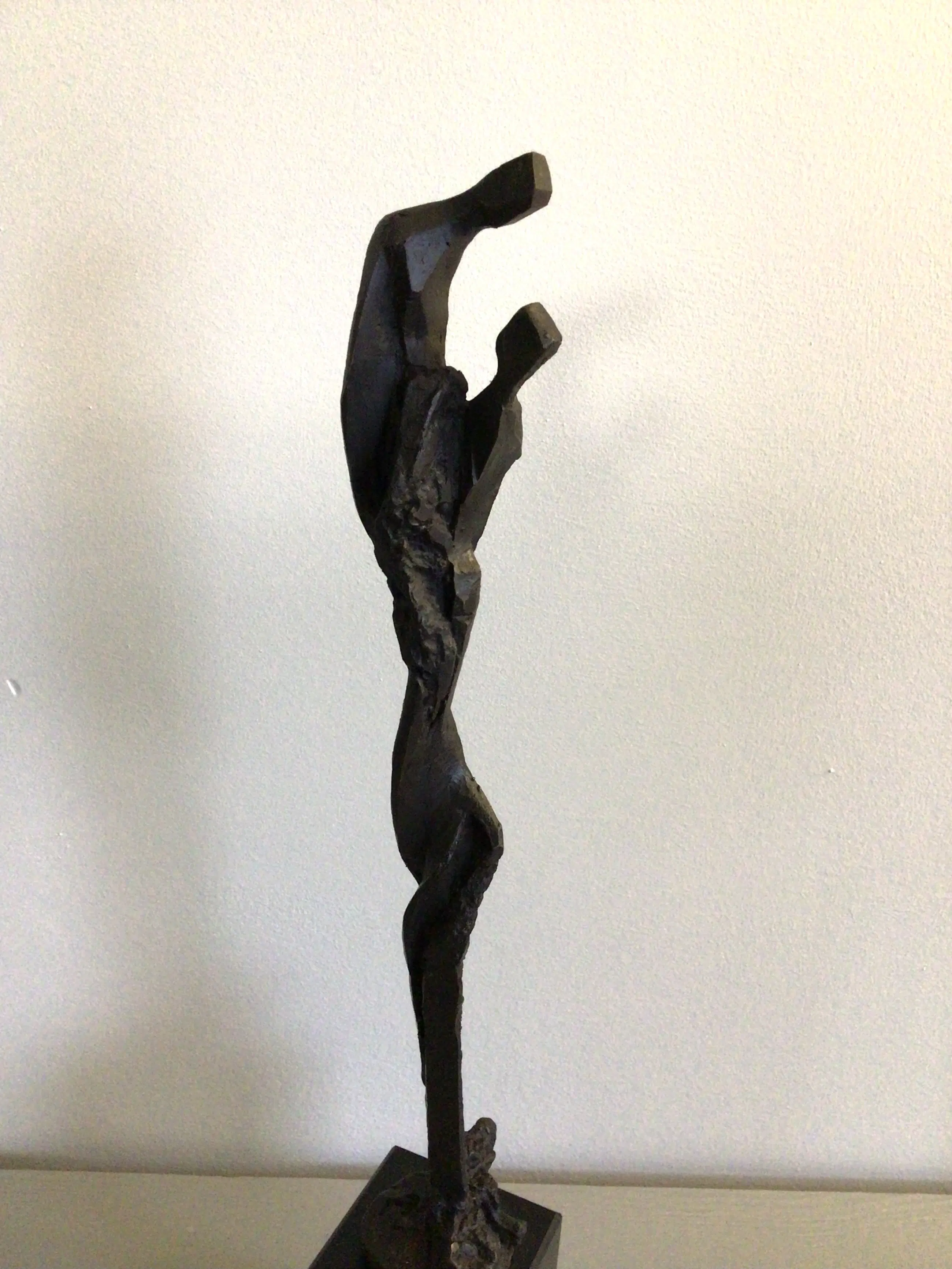 Zeer fraai vormgegeven stilistisch sculptuur van de bekende Nederlandse kunstenaar/ architect Klaas van den Berg. ( 1932 - 2018 ) Titel “ Communicatie “ Achtergrondgedachte “ Het eminente belang van optimale communicatie op alle denkbare niveaus Hoogte : 32 cm Materiaal: brons op zwart marmeren sokkel. Het beeld is gesigneerd: KvB Het beeld verkeert in zeer goede staat en wordt zorgvuldig verpakt verzonden.