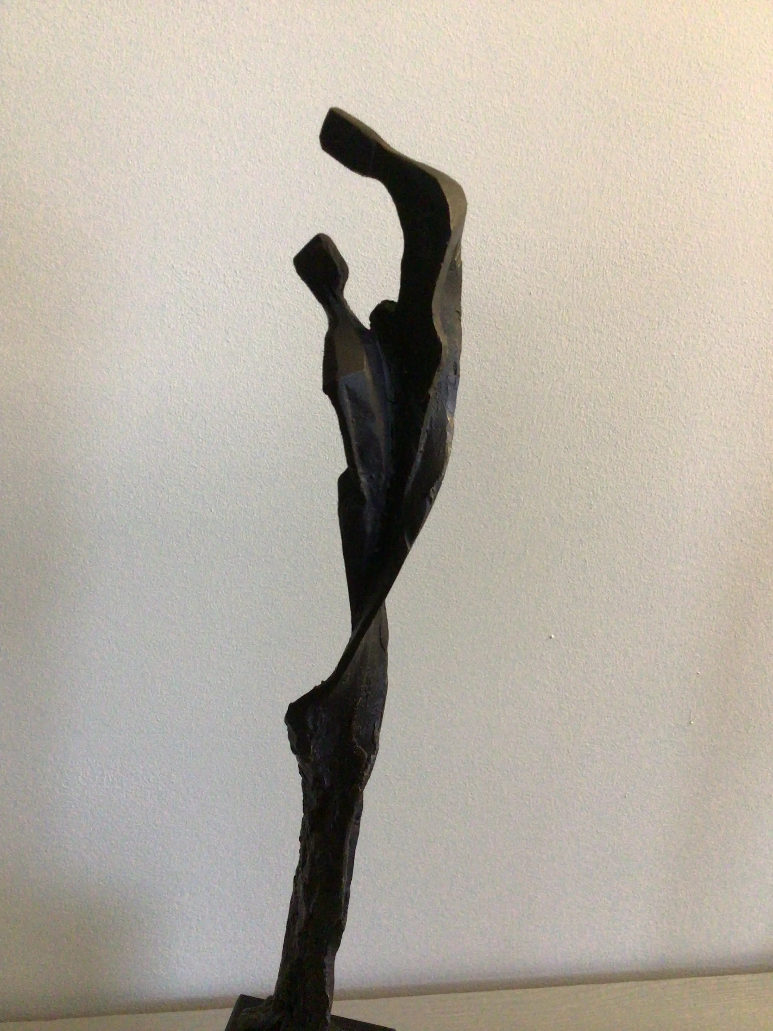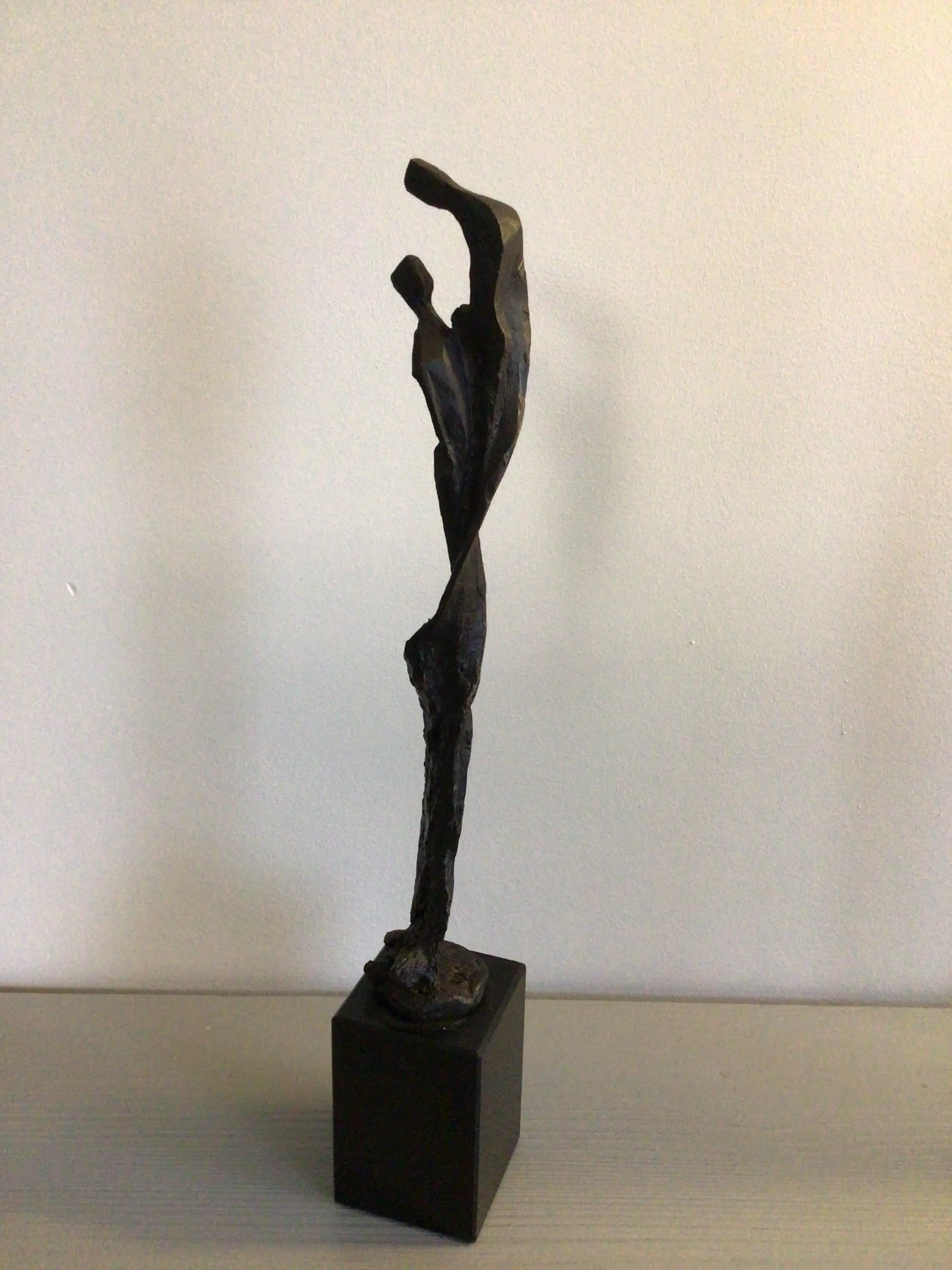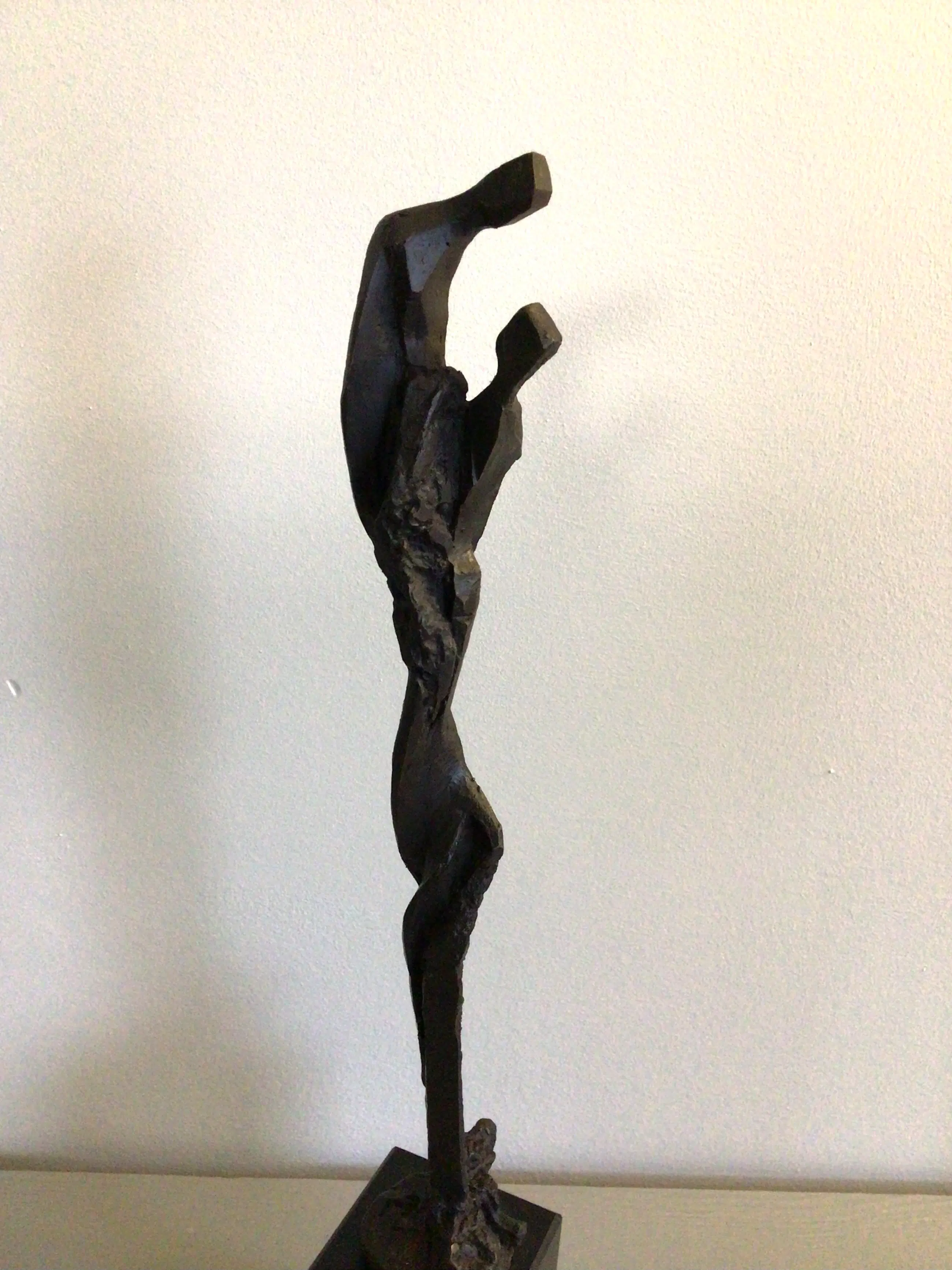 Zeer fraai vormgegeven stilistisch sculptuur van de bekende Nederlandse kunstenaar/ architect Klaas van den Berg. ( 1932 - 2018 ) Titel “ Communicatie “ Achtergrondgedachte “ Het eminente belang van optimale communicatie op alle denkbare niveaus Hoogte : 32 cm Materiaal: brons op zwart marmeren sokkel. Het beeld is gesigneerd: KvB Het beeld verkeert in zeer goede staat en wordt zorgvuldig verpakt verzonden.