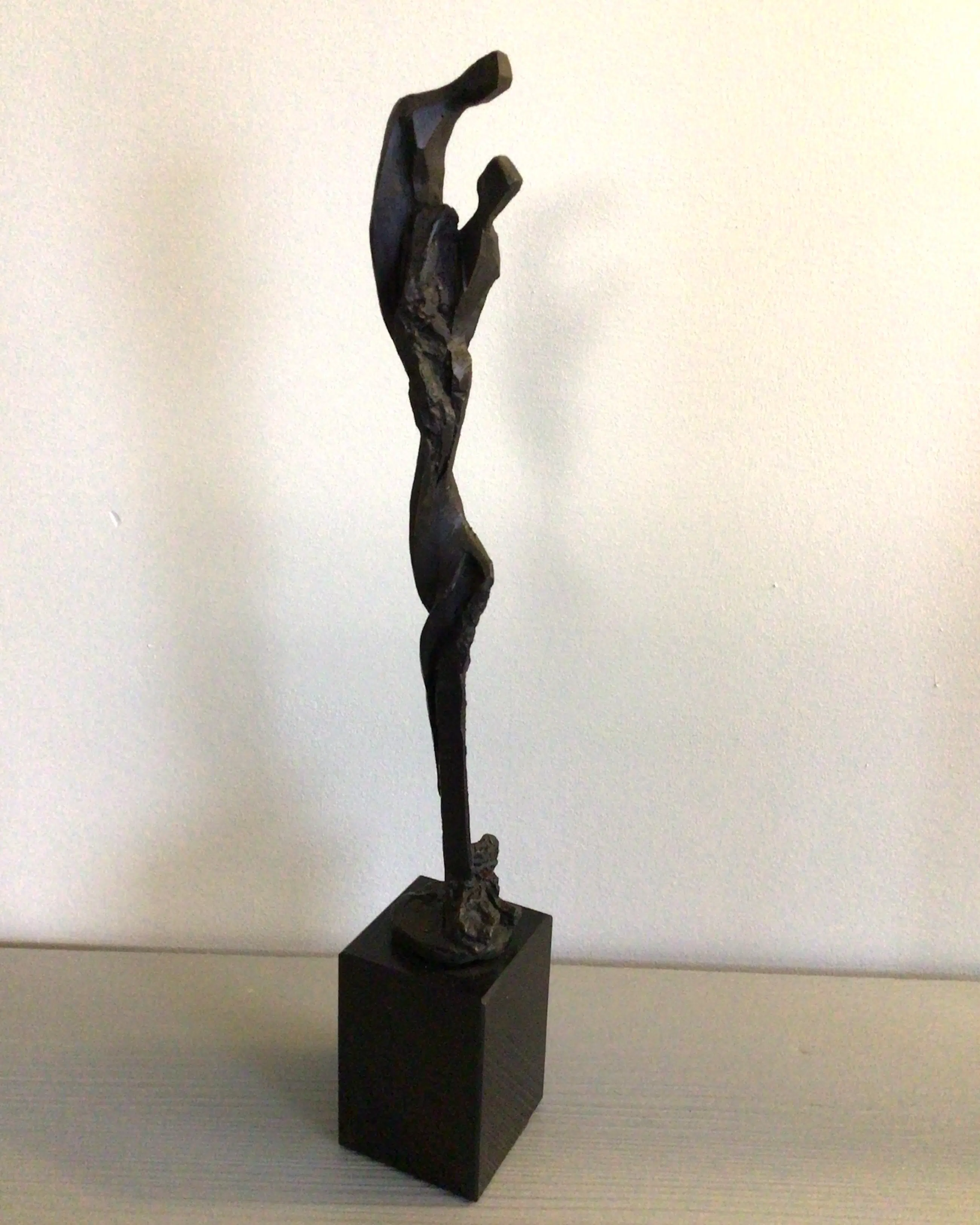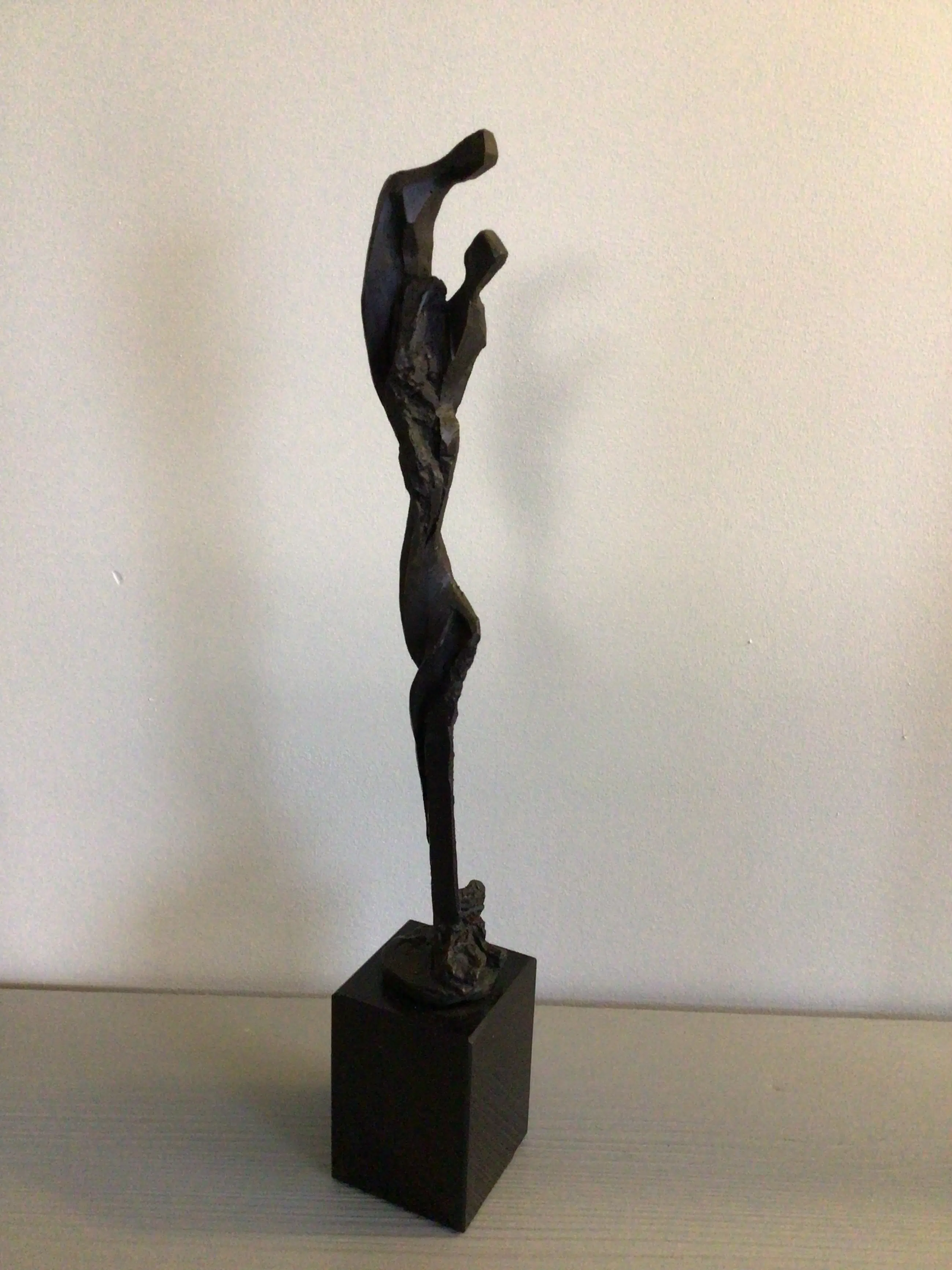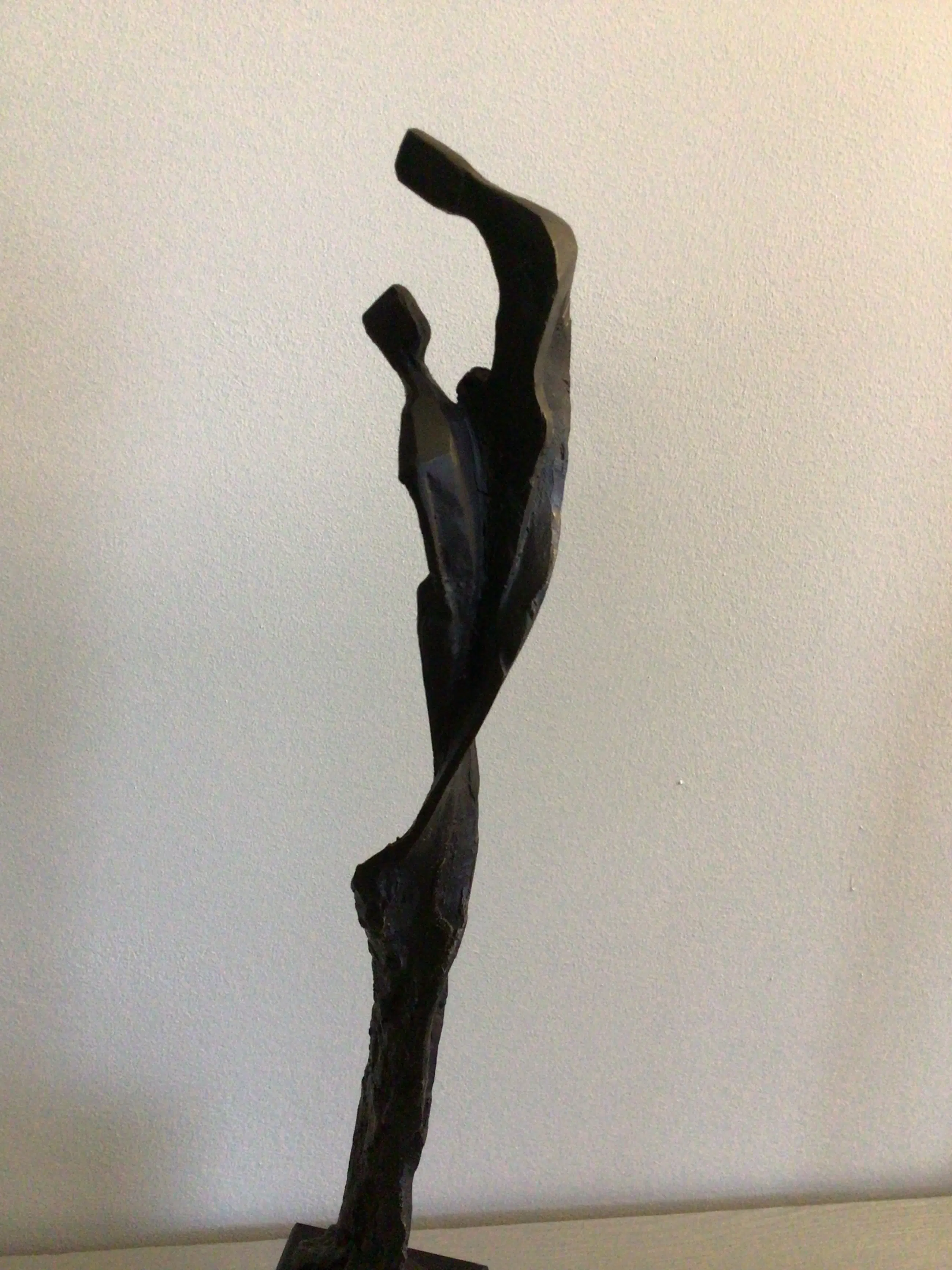 Zeer fraai vormgegeven stilistisch sculptuur van de bekende Nederlandse kunstenaar/ architect Klaas van den Berg. ( 1932 - 2018 ) Titel “ Communicatie “ Achtergrondgedachte “ Het eminente belang van optimale communicatie op alle denkbare niveaus Hoogte : 32 cm Materiaal: brons op zwart marmeren sokkel. Het beeld is gesigneerd: KvB Het beeld verkeert in zeer goede staat en wordt zorgvuldig verpakt verzonden.