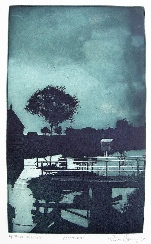 Nocturne, Radierung in zwei Farben von 1990,Blattgröße 53 x 39cm, Plattengröße 33 x 20cm, Künstlerexemplar, rechts unten handsigniert, guter Zustand, Versandkosten innerhalb von Deutschland als versichertes Postpaket (DHL) 7,- Euro.