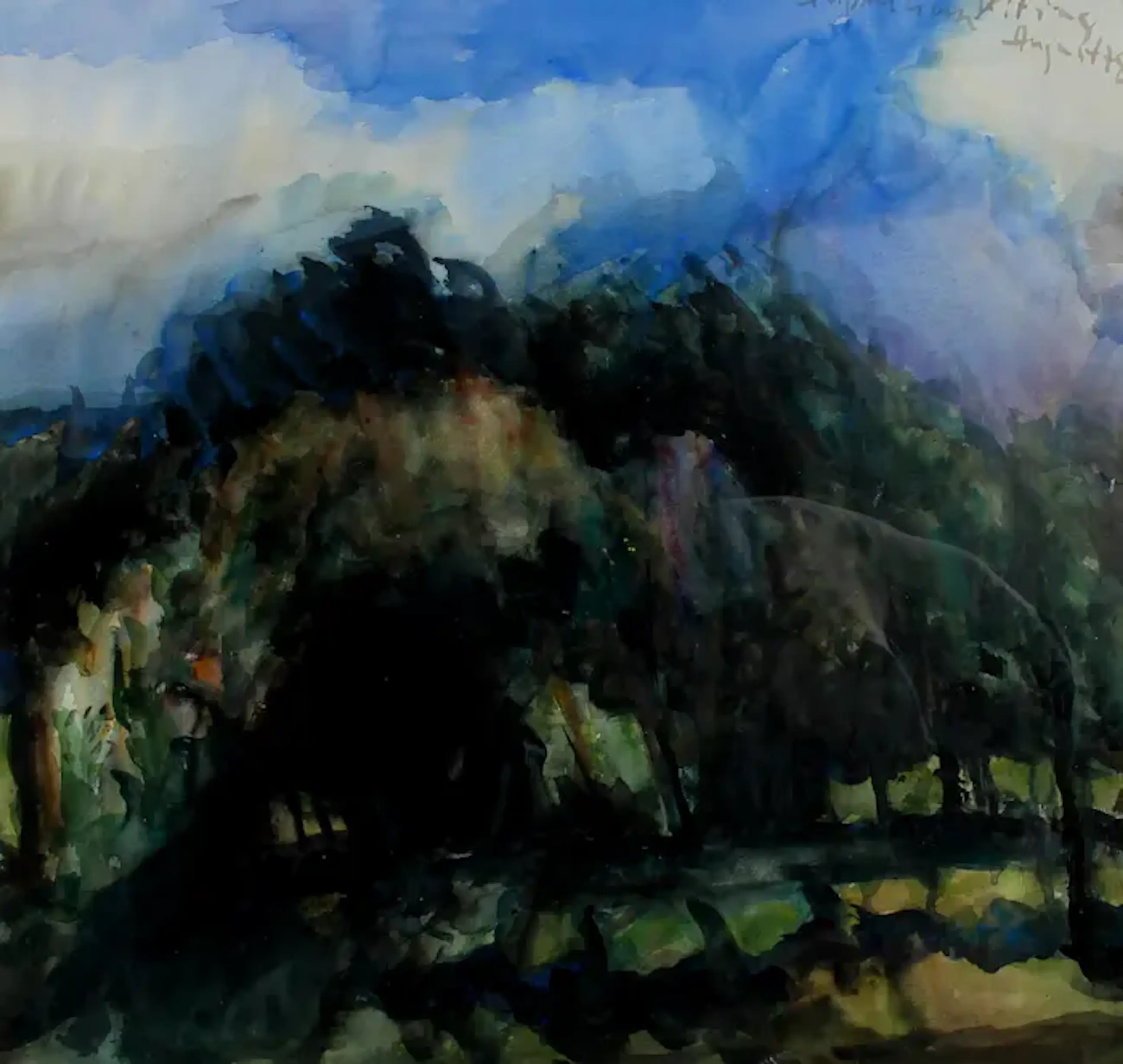 Klaus Fussmann - Ingelijste aquarel: Landschap - 1978