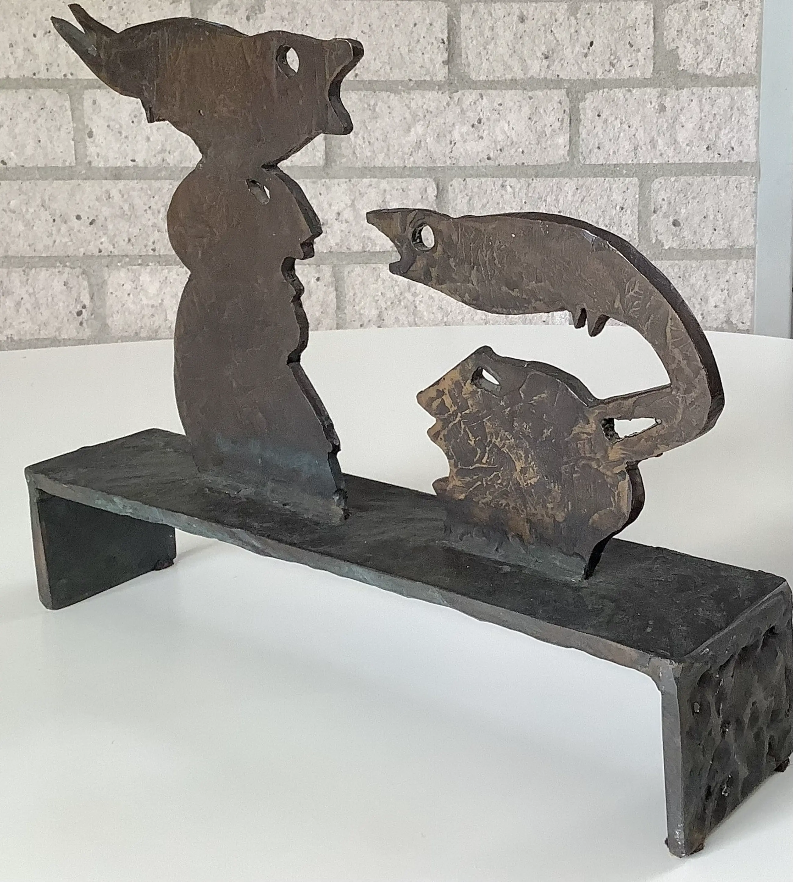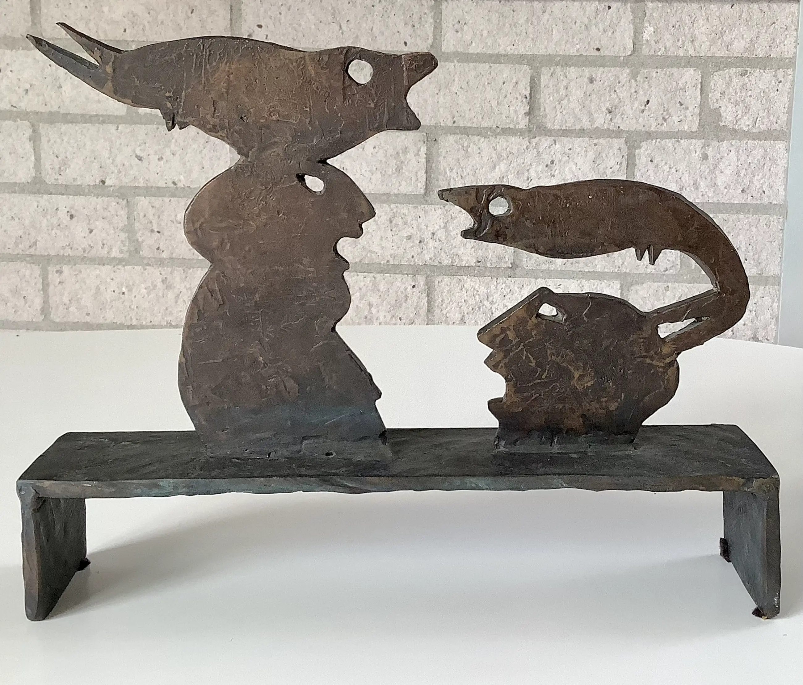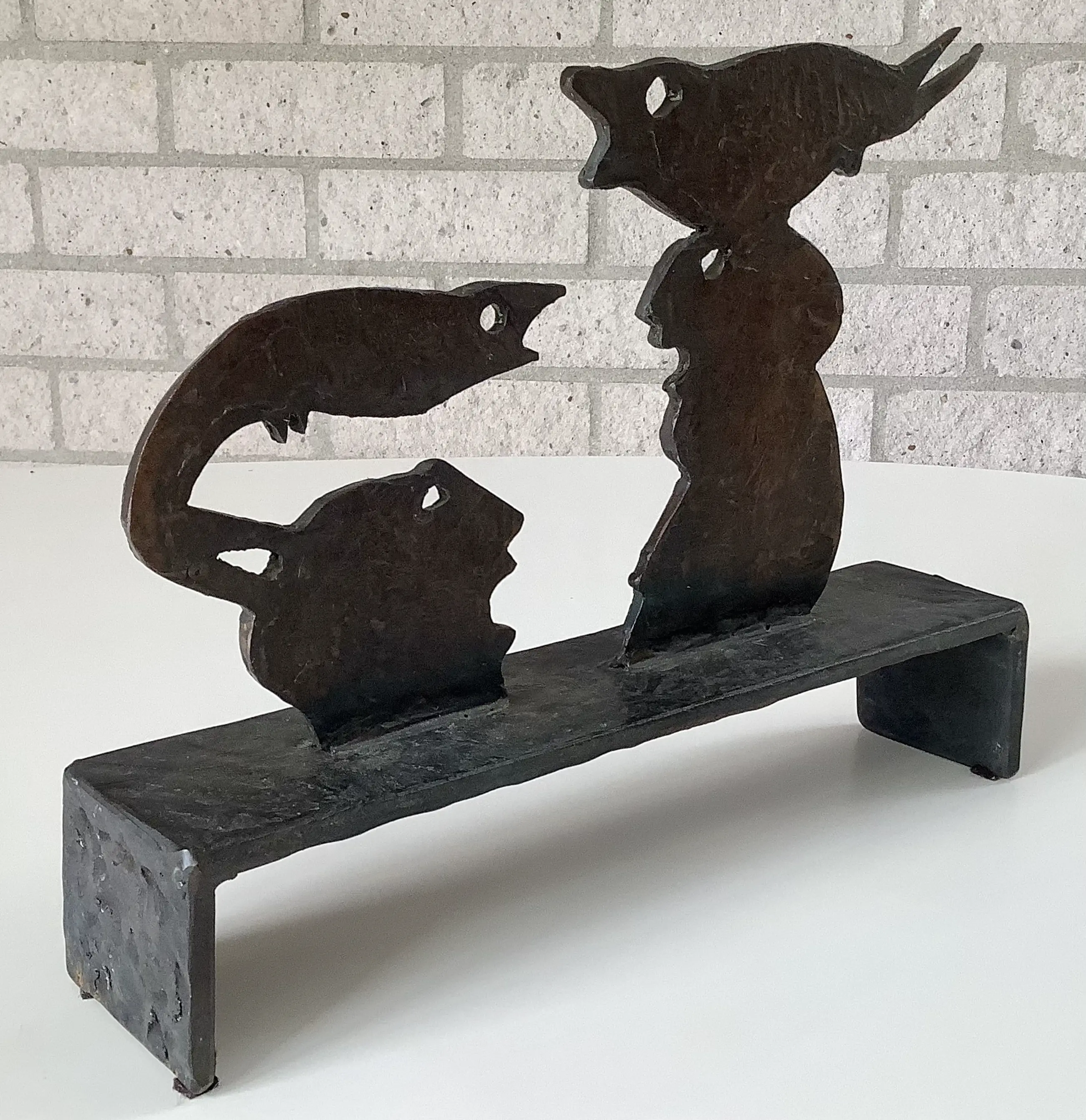 Typerende bronzen sculptuur van Klaus van de Locht. Decoratief zwaar beeld. Particuliere herkomst Nijmegen.