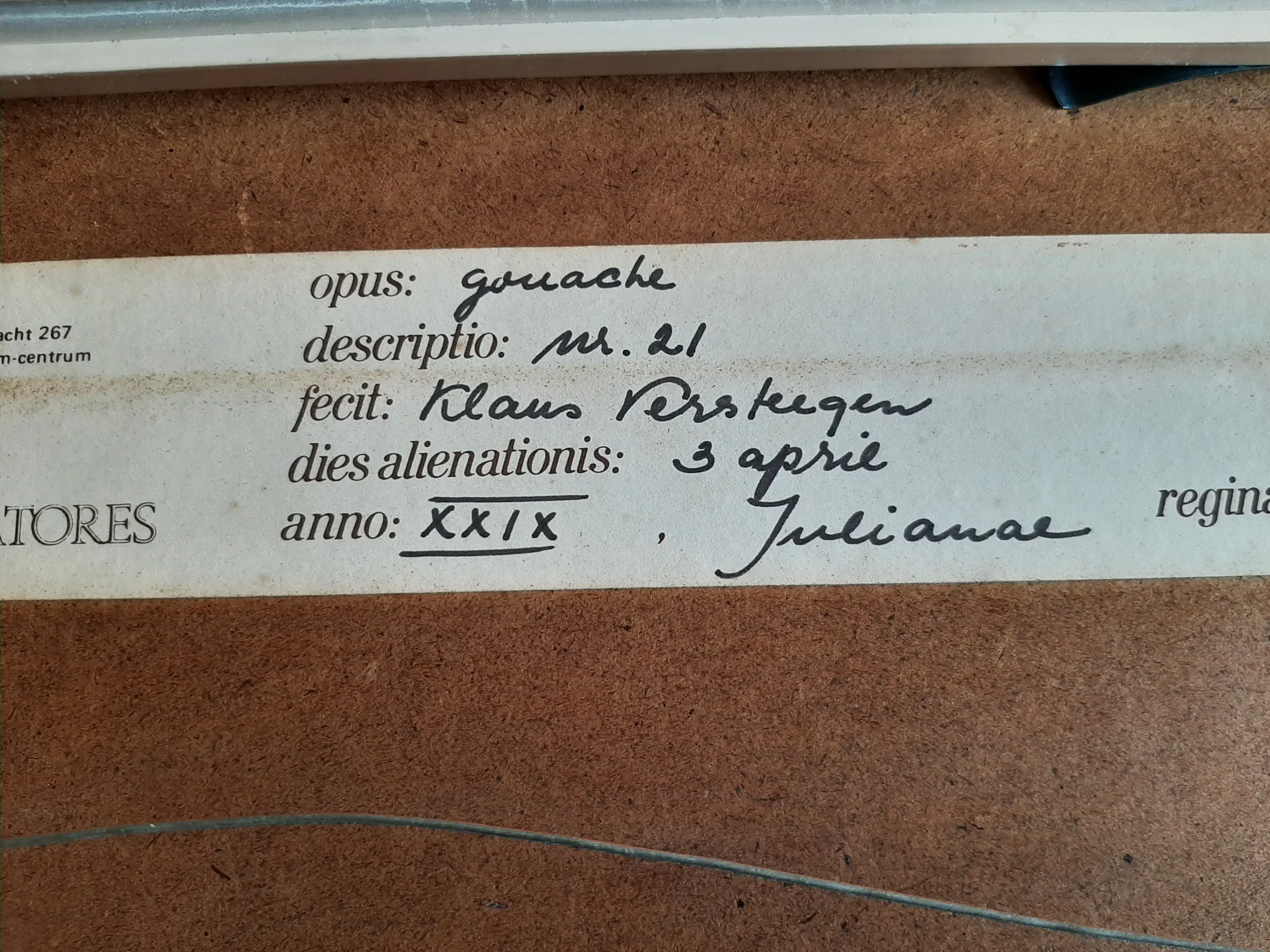 Het werk is af te halen op locatie. Als koper dient u zelf verpakkingsmateriaal mee te nemen. De locatie is: Alkmaar, Nederland