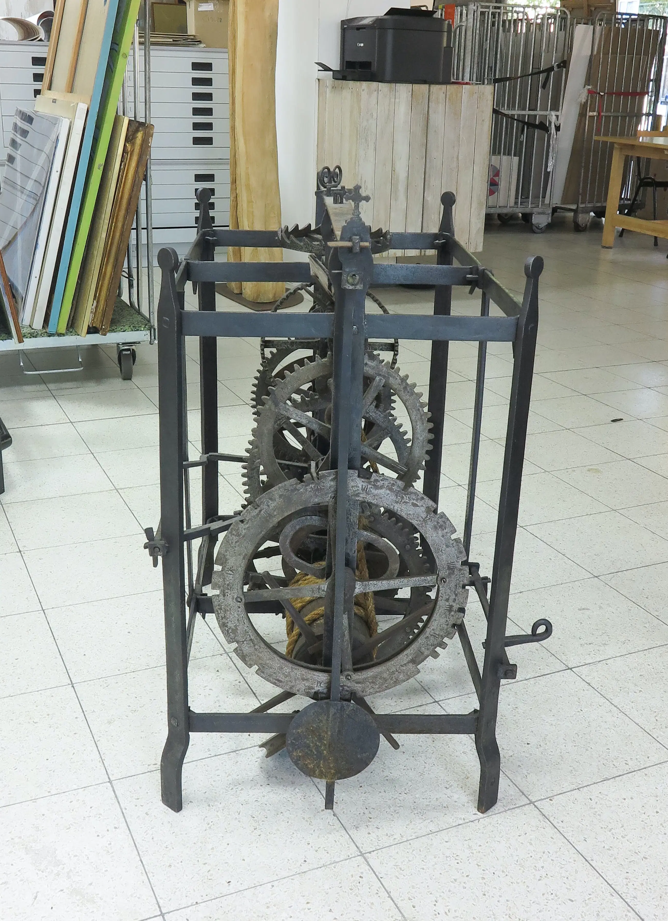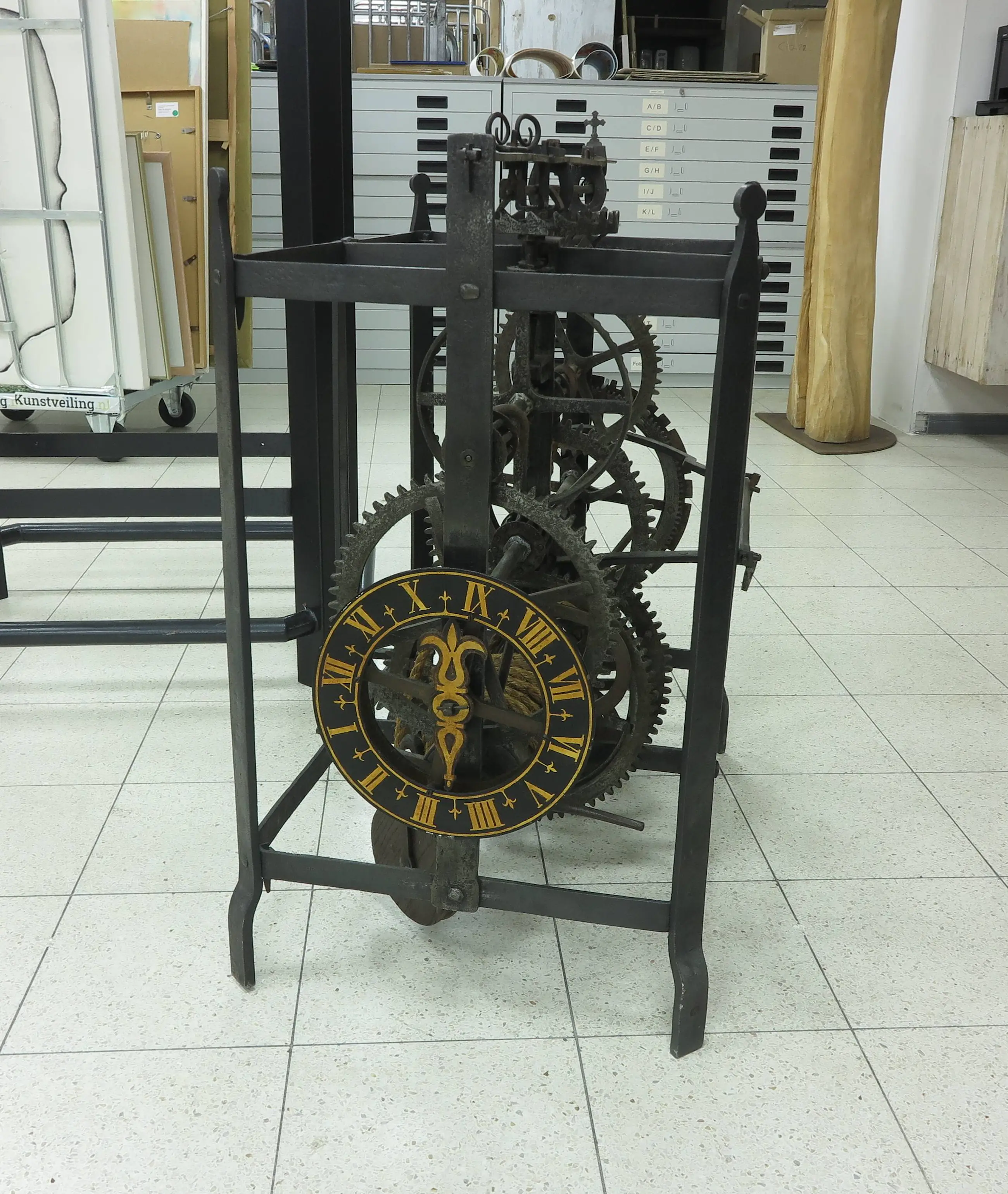 Let op: Zowel het klokwerk, het frame en de gewichten zijn erg zwaar. Hier dient rekening mee te worden gehouden met het eventueel ophalen op locatie.