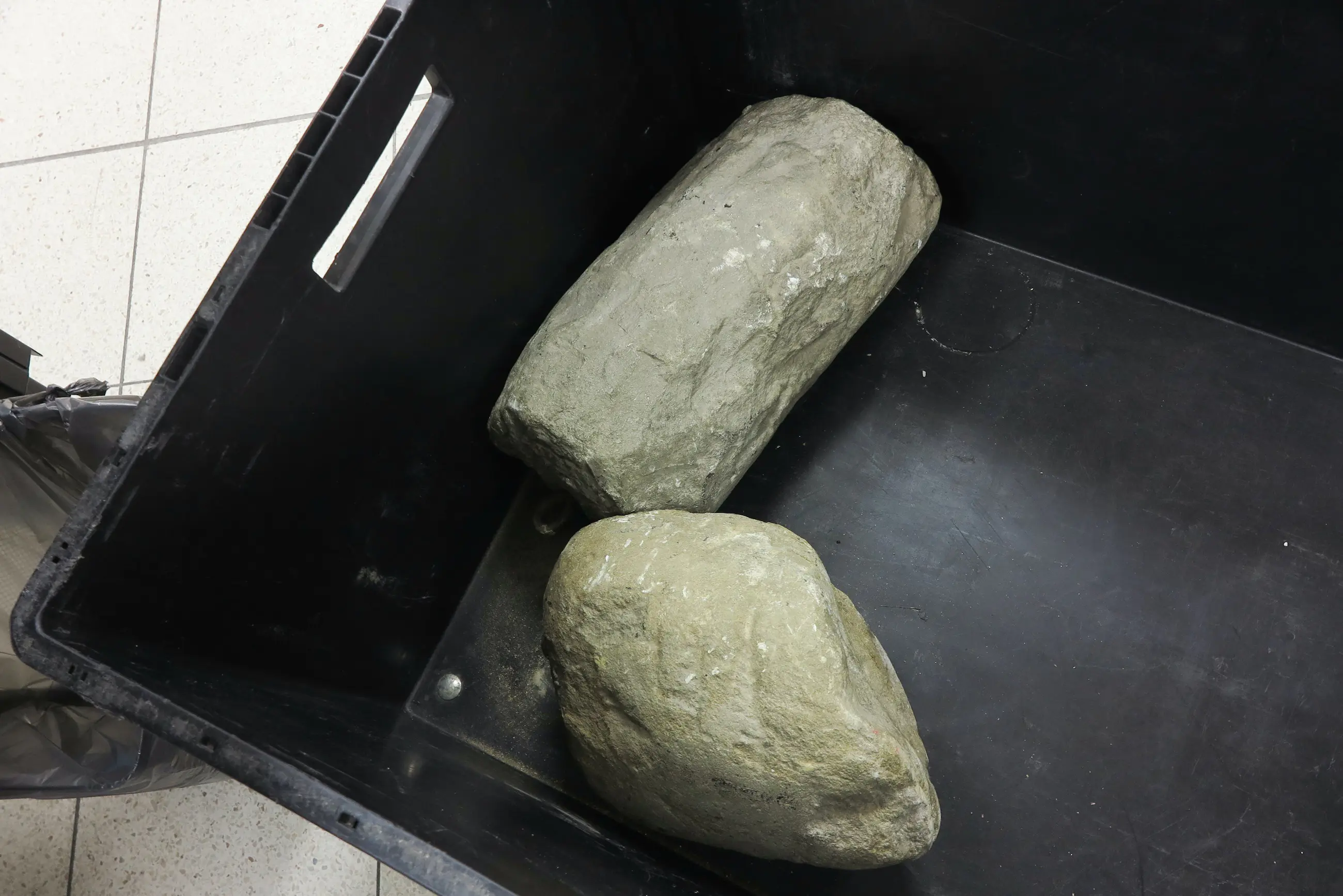 Het betreft een bijzondere klok vervaardigd van smeedijzer door een onbekende maker. De klok kan worden getild op een stalen buisframe (200 cm x 66 cm x 86 cm) waardoor de grote zwerfkeien, die dienen als gewichten, eronder gehangen kunnen worden. Zie foto 3 en 4. Het contrast met de klok en de robuuste zwerfkeien resulteert in een bijzonder samenspel tussen nieuw en oud. Een unieke eyecatcher!