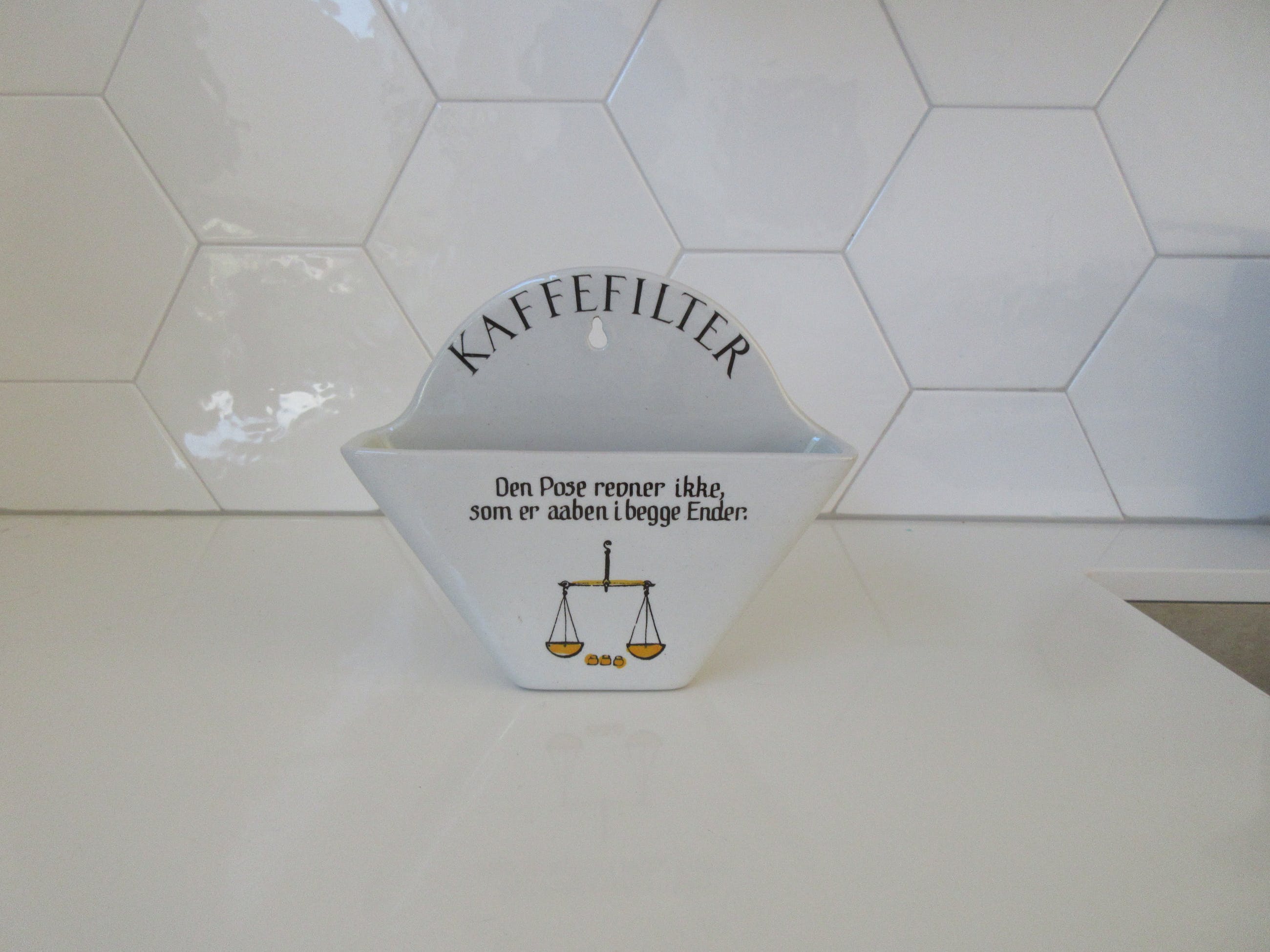 Aardewerken Koffiefilterhouder ontwerp Johannes Hansen uitgevoerd bij Knabstrup Keramik uit Denemarken. Gemerkt aan de achterzijde.
