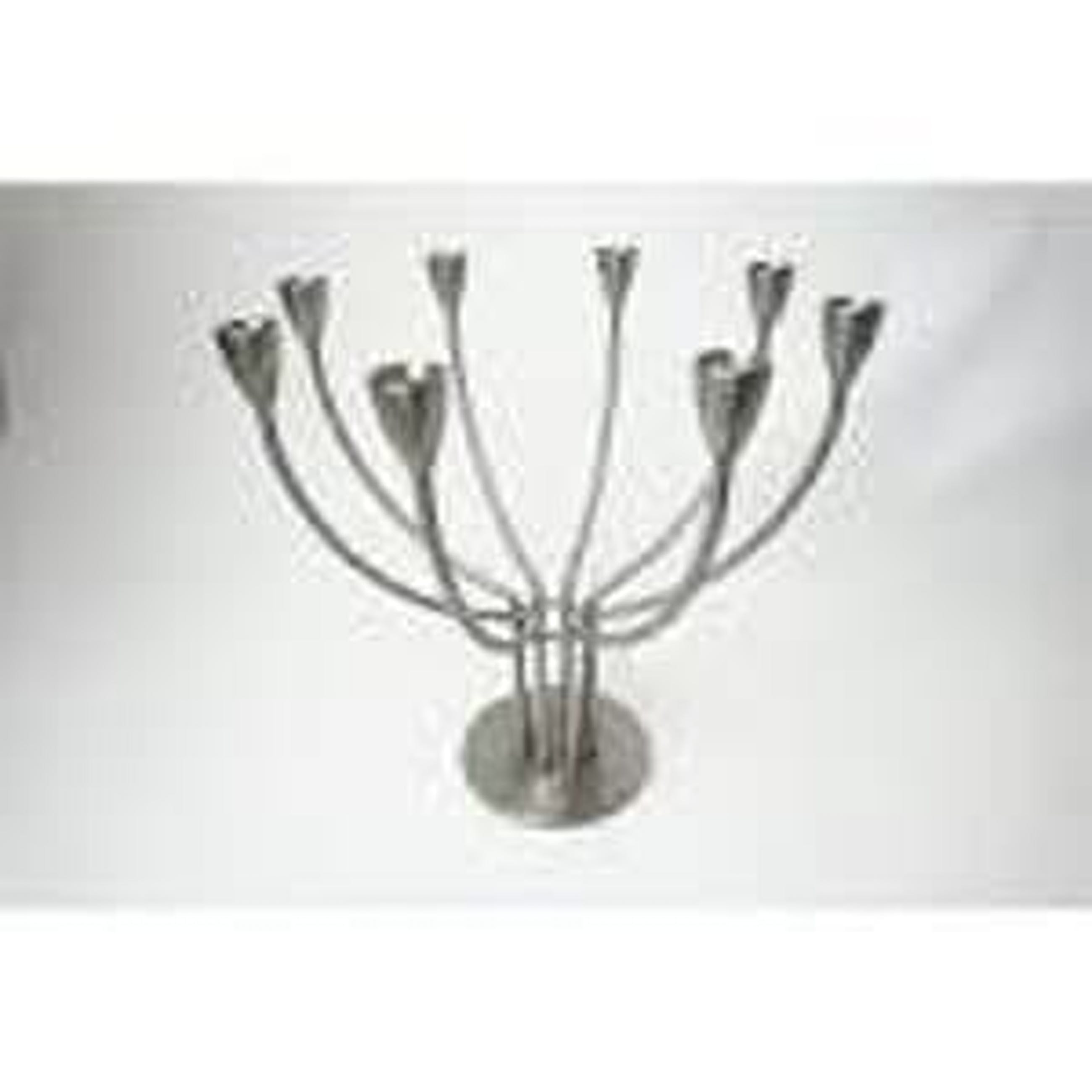 Mooie designkandelaar van roestvrij staal, waardoor de kandelaar gewicht en daardoor extra stabiliteit heeft. De kandelaar heeft plaats voor 8 kaarsen. De zachte antisliplaag aan de onderkant zorgt dat de kandelaar stevig staat en beschermt de ondergrond