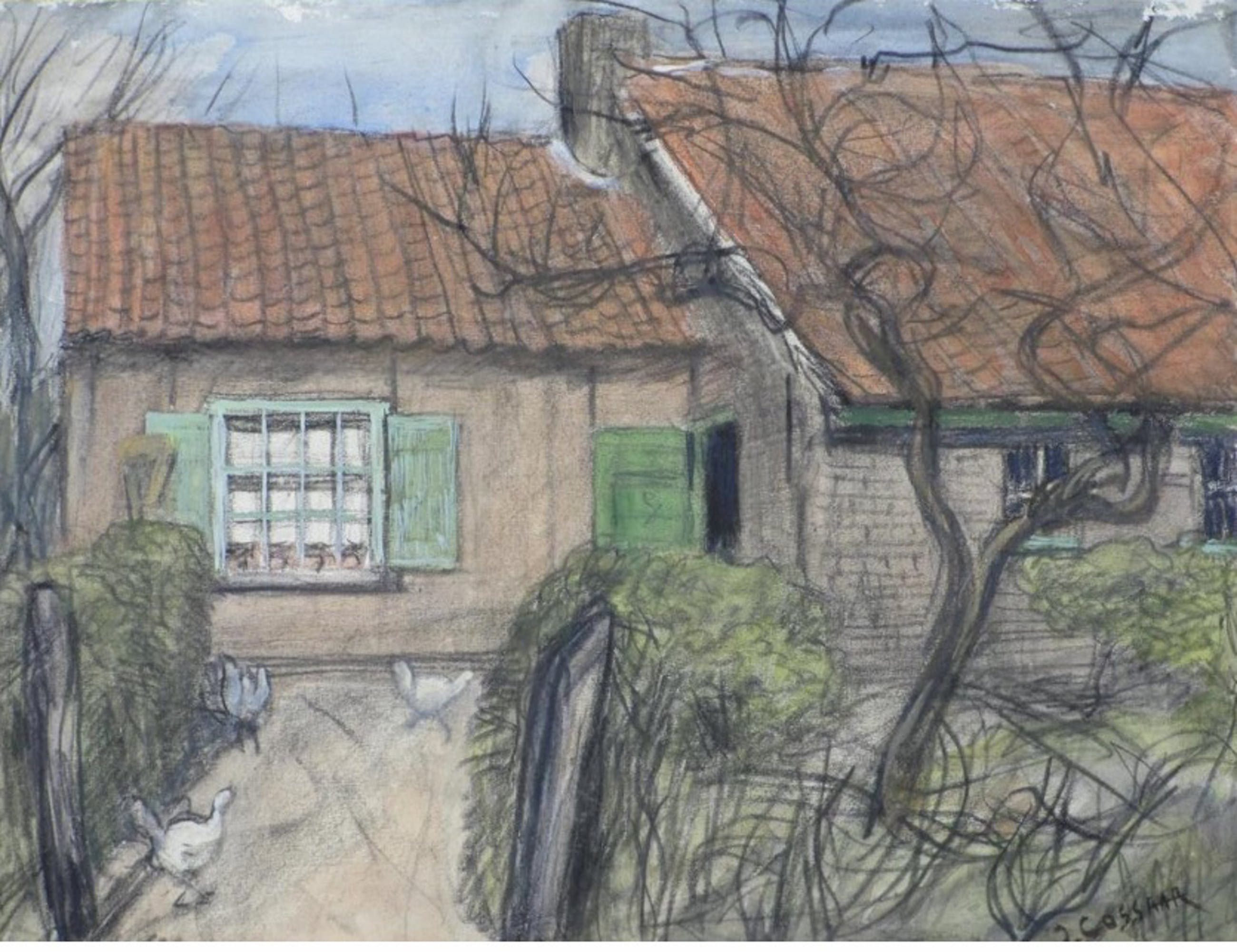 Gesigneerd r.o. in aquarel 'J.Cossaar'