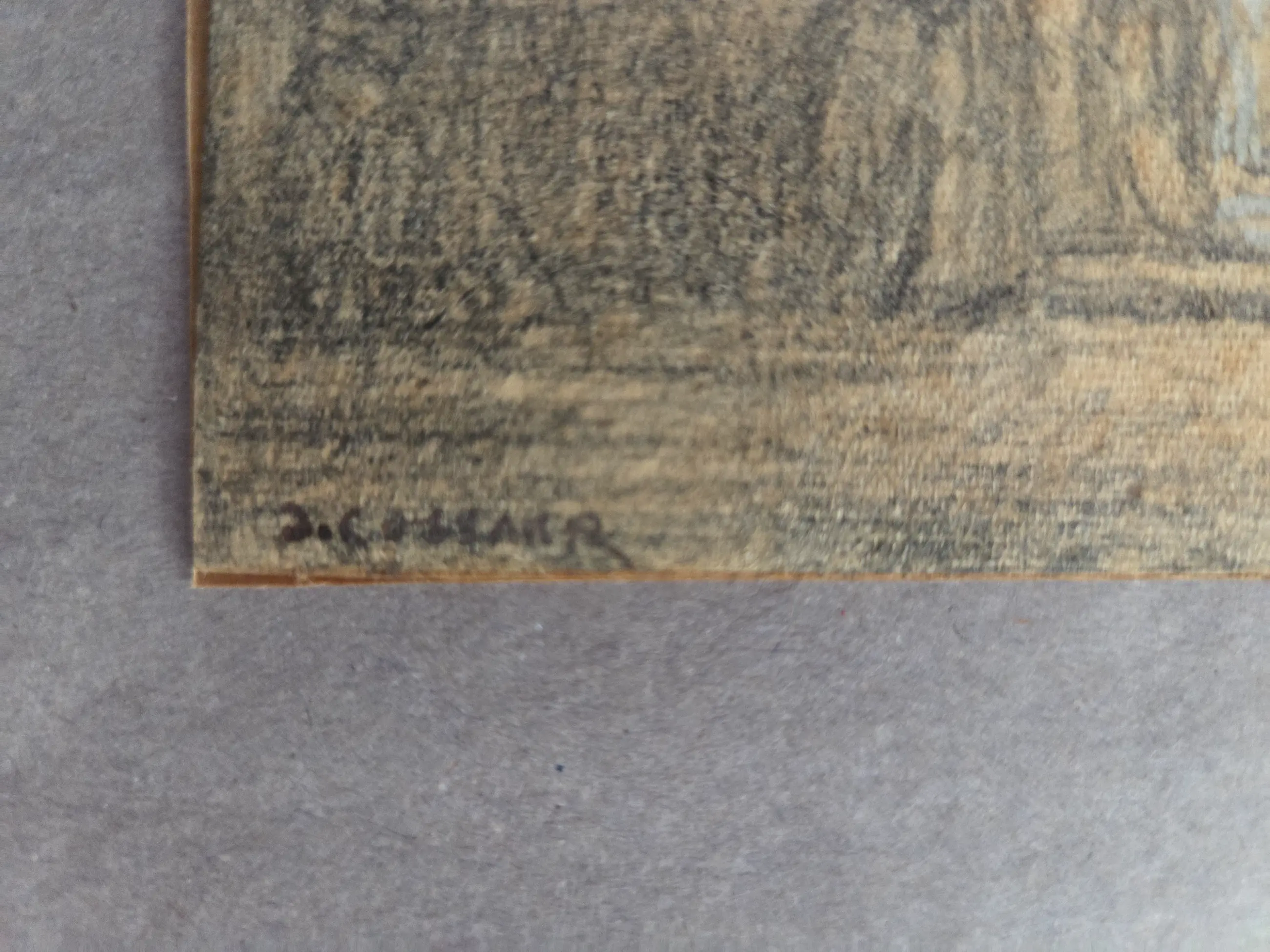 Mooie fijne tekening. Knap gedaan met lichtval. Papier op karton geplakt. Typisch voor deze kunstenaar. Algemeen goede staat gezien ouderdom. Gesigneerd linksonder. Zie foto's voor eigen oordeel kwaliteit.