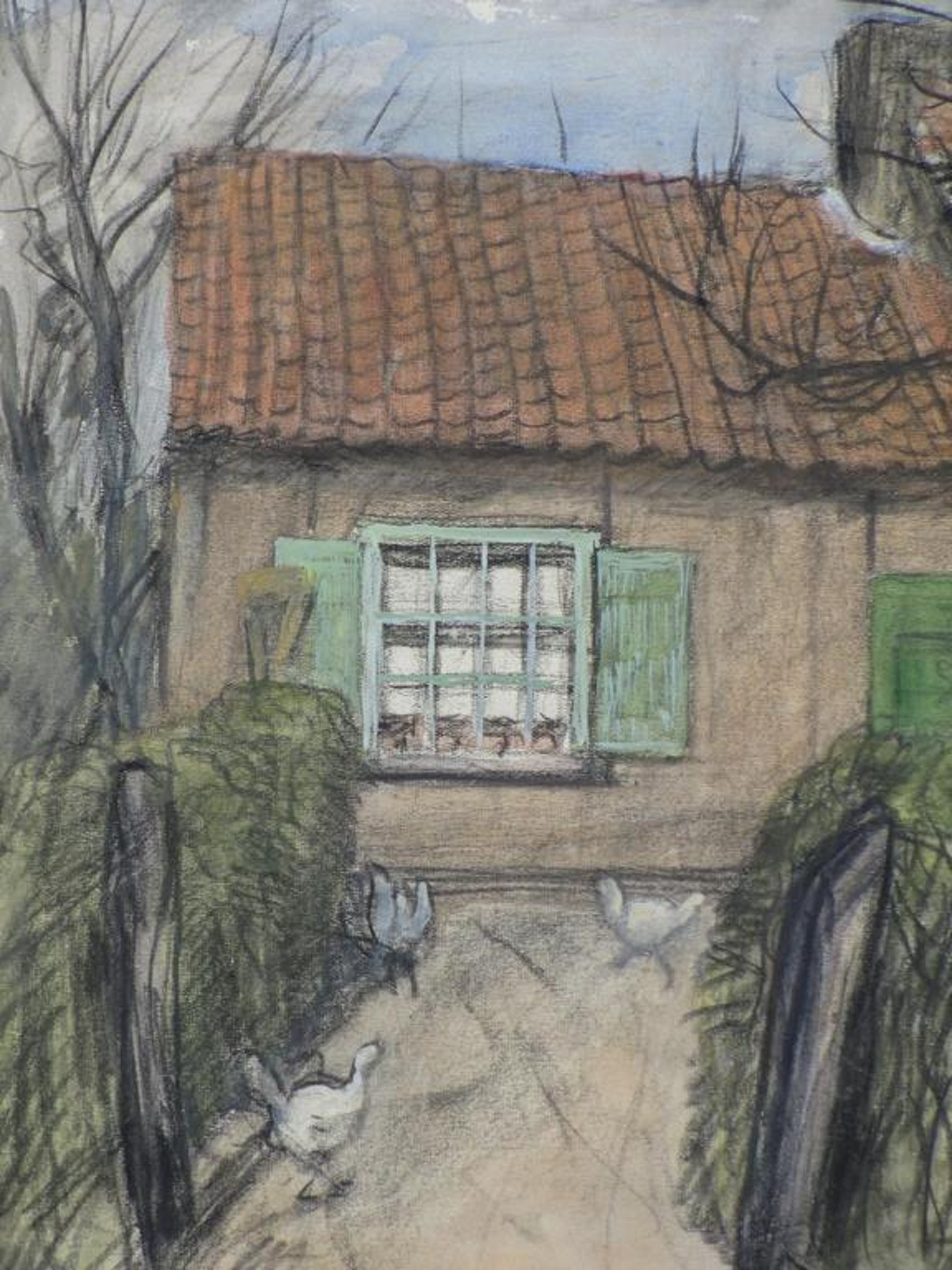 Tekening op karton, zichtmaat 23x32, kartonmaat 35x48