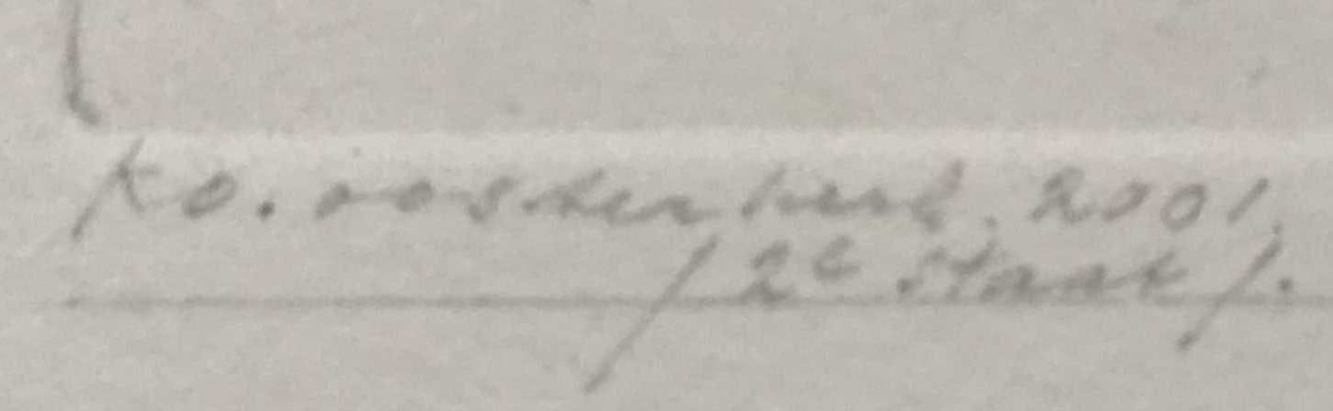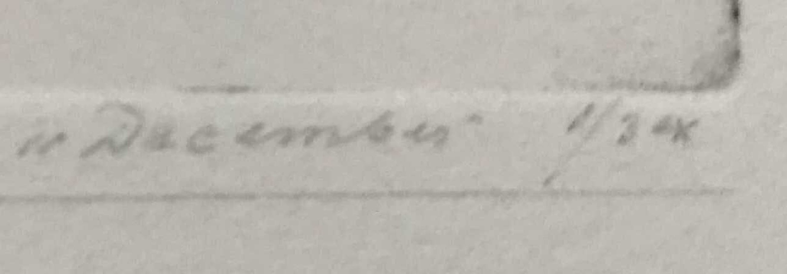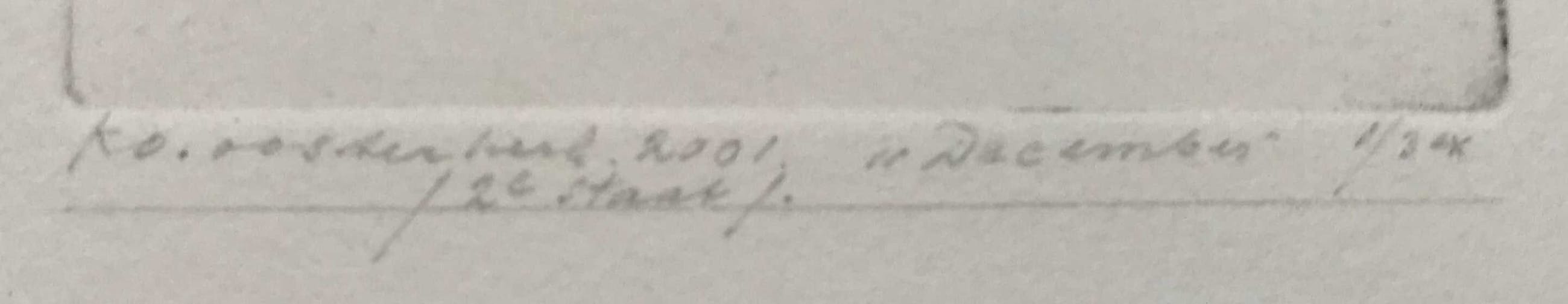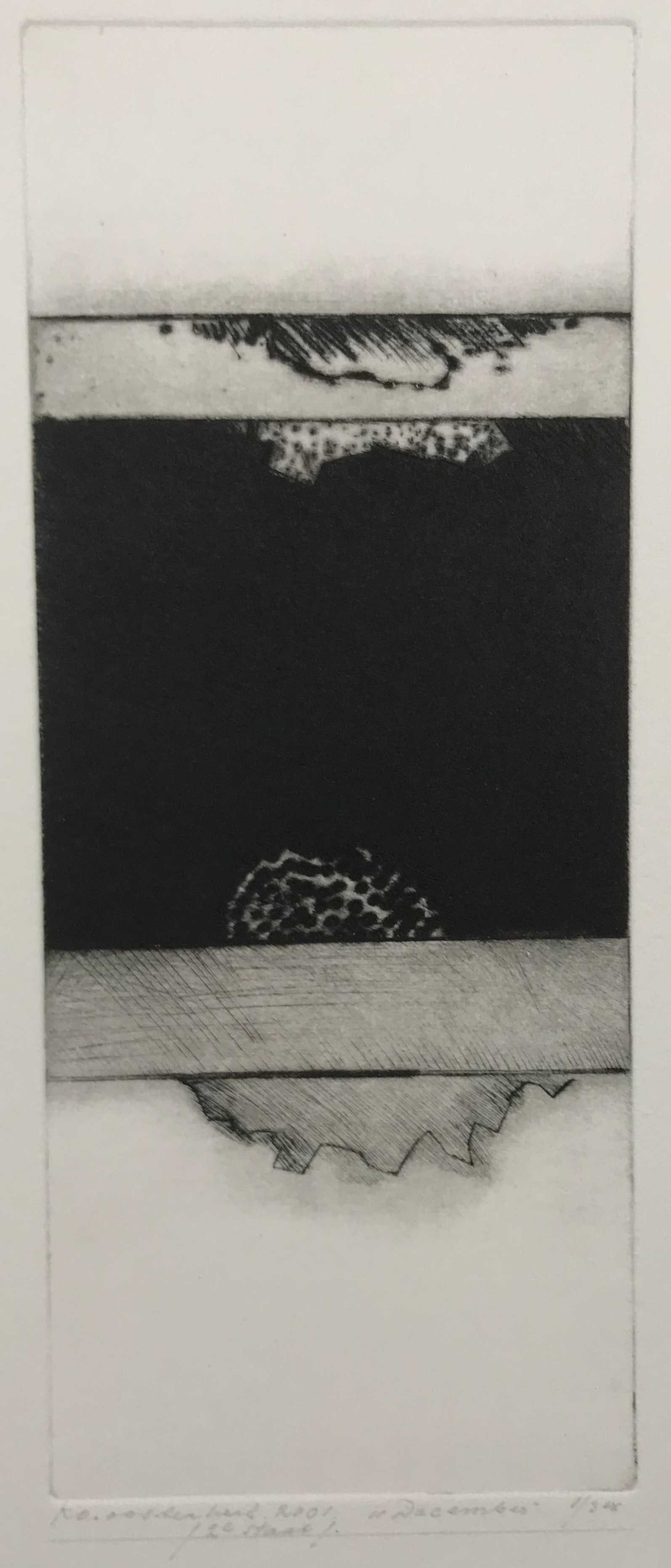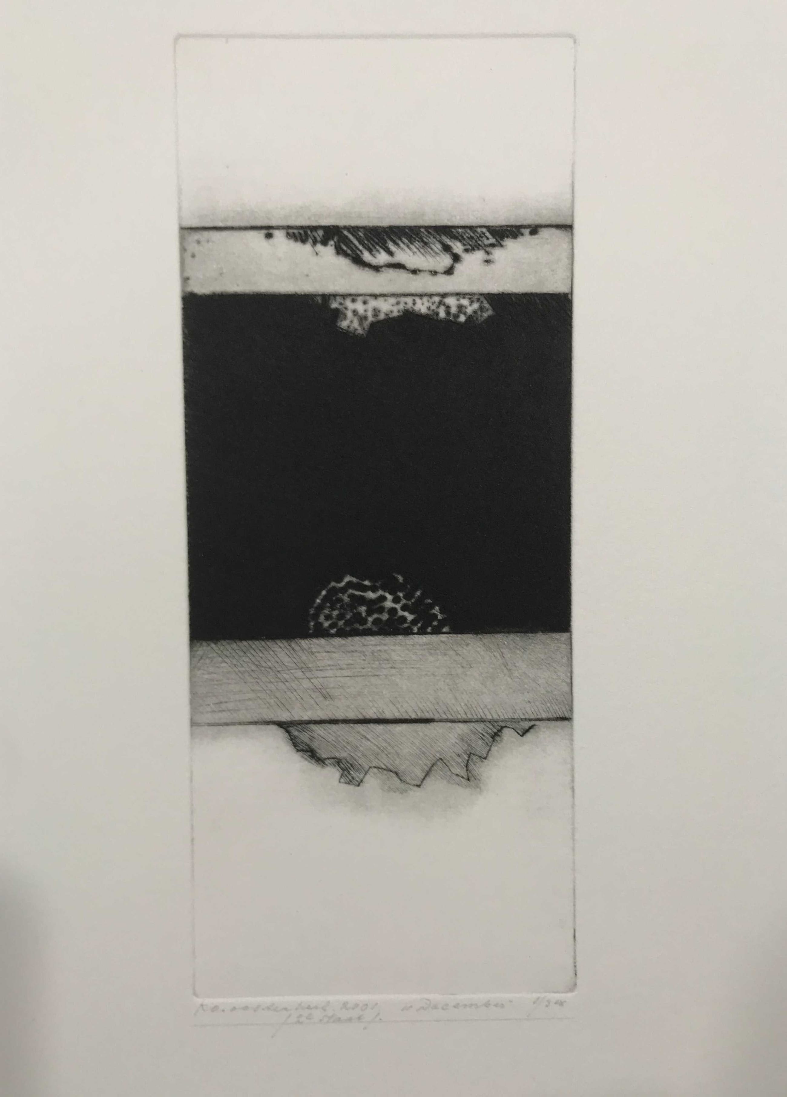 Ko Oosterkerk droge naald ets, titel "December" linksonder gesigneerd en gedateerd, 2001 oplage 1/3 ex, 2de staat beeldmaat: 25 x 10 cm