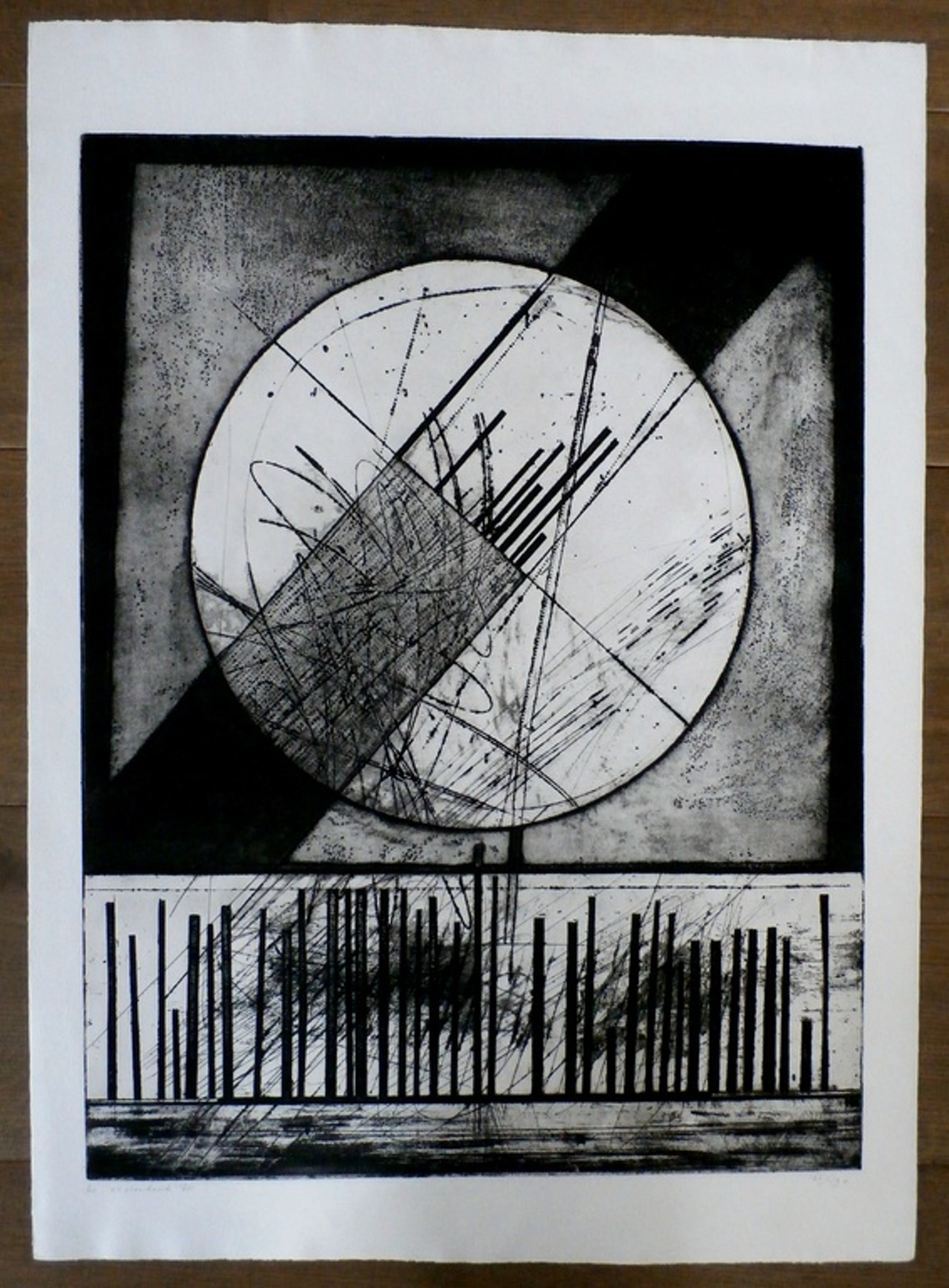 Abstracte ets van Ko Oosterkerk . Nummer: 166/190. Jaar: 1968. Afmetingen: H76 x b56 cm. Het werk is linksonder, met potlood, gesigneerd door de kunstenaar. Conditie: in goede staat. Uitgegeven door Prent 190. Deze valt bij inlijsting onder de passe-partout. De authenciteit van dit werk wordt volledig gegarandeerd. Een certificaat van echtheid kan, op aanvraag, worden meegestuurd.
