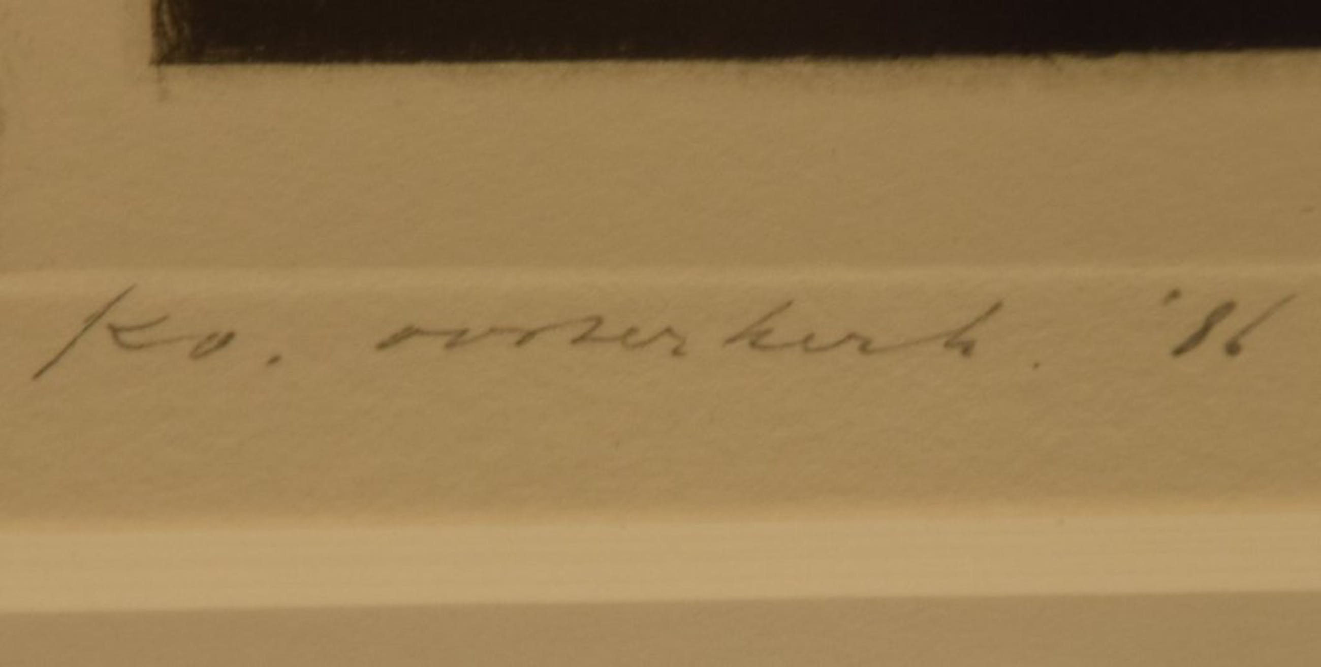 Een nette ets van Ko Oosterkerk in zeer goede staat. Er zijn enkele krasjes op de achterzijde van de lijst en een enkele, nauwelijks zichtbare deuk rechts bovenin op de voorzijde van de lijst.