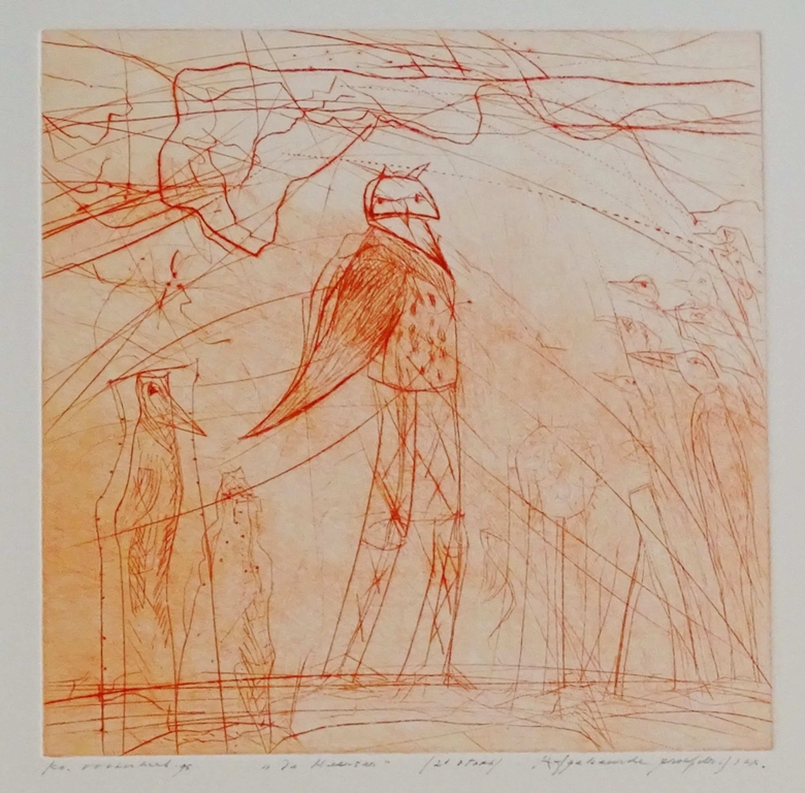Oplaag 1 ex,; gesigneerd. Afm. ets 25 x 25 cm; papier 50 x 34,5 cm.