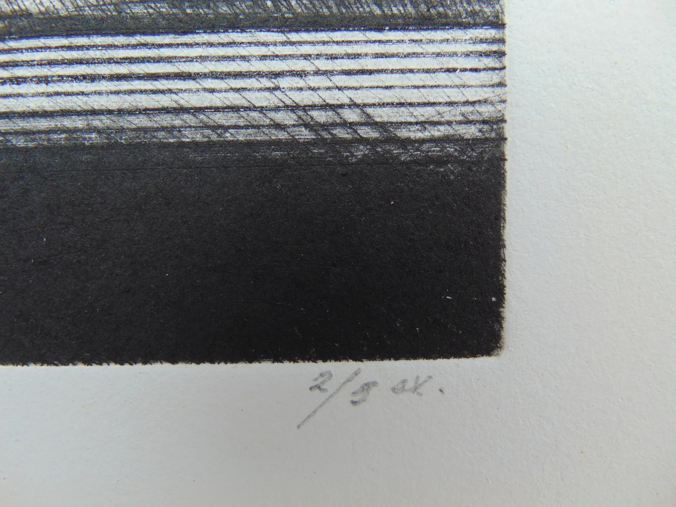 Deze ets van Ko Oosterkerk is linksonder gesigneerd. Het werk is niet ingelijst. De afmeting van het blad is 59x43 cm., de afbeelding is 37x25 cm.